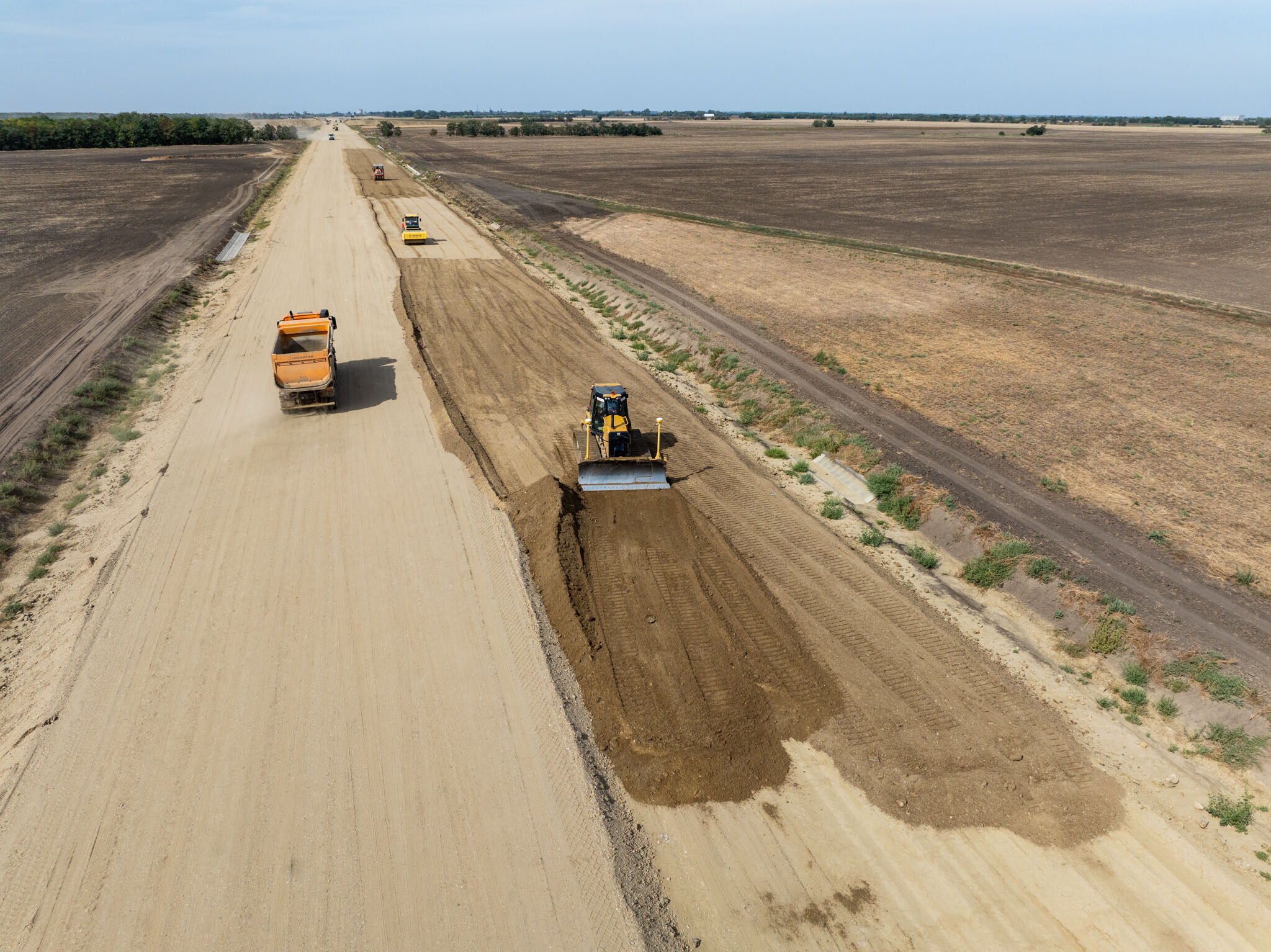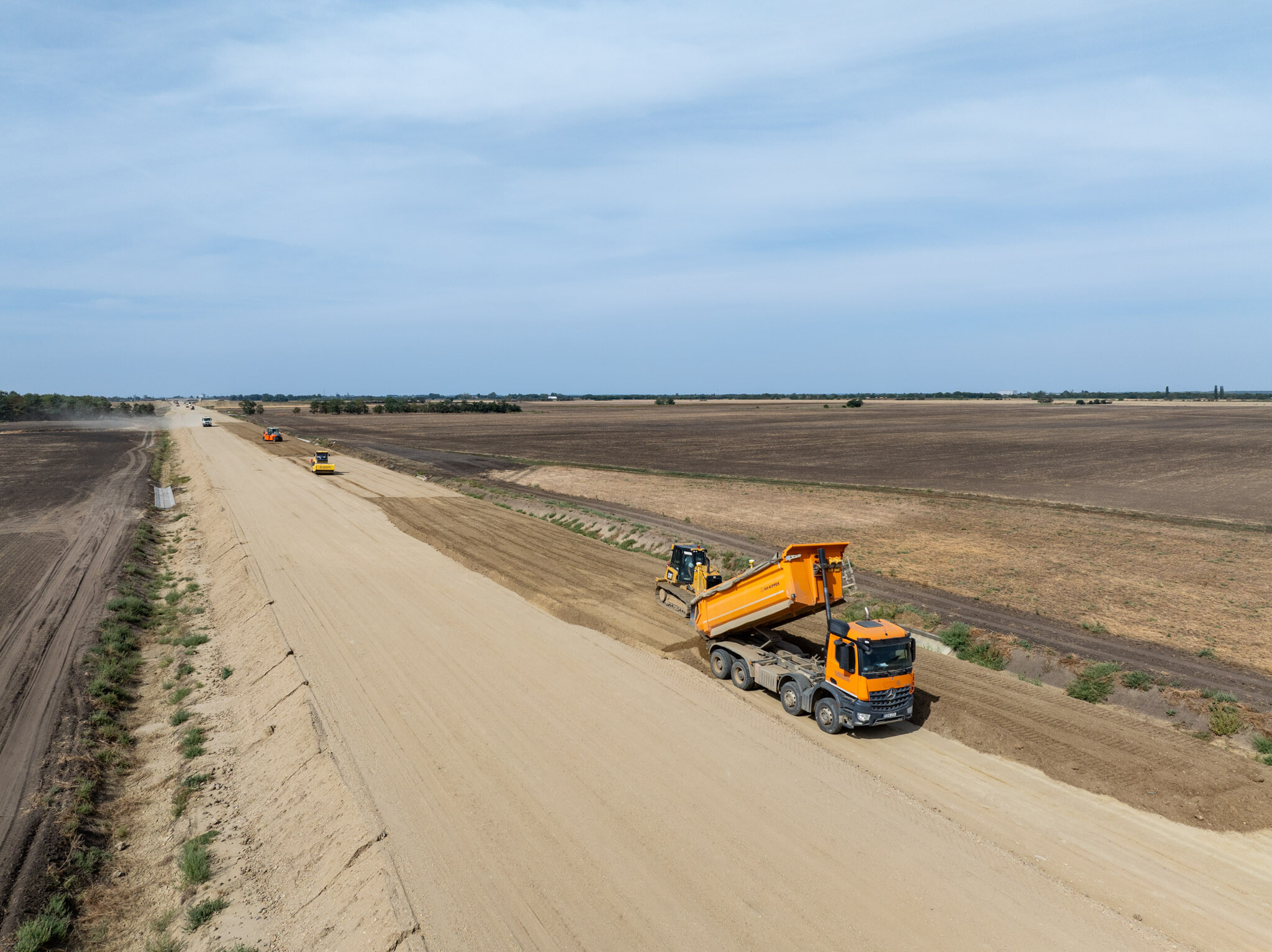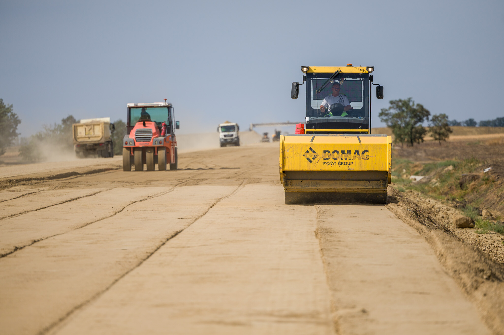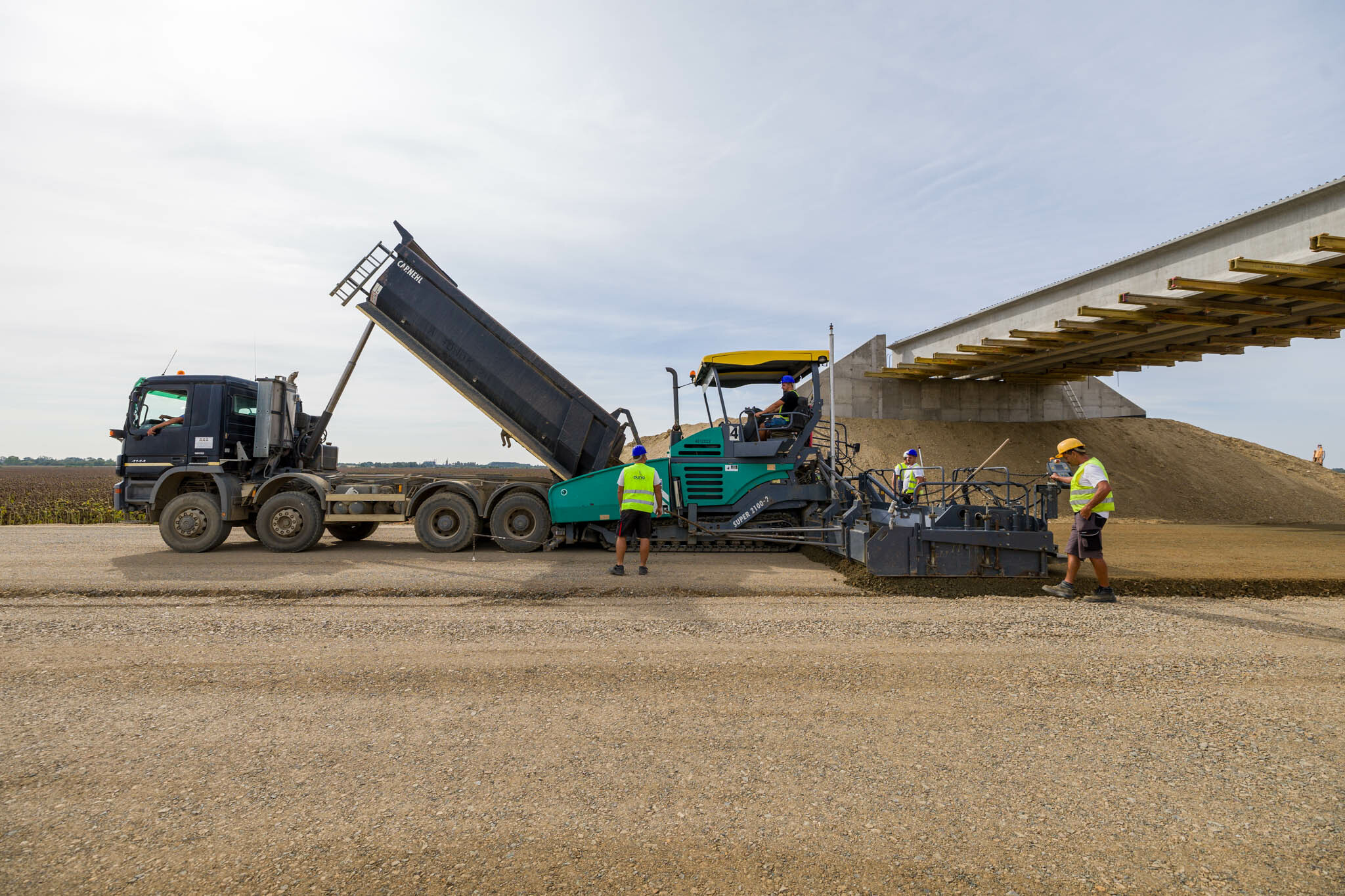 Ugyanitt megkezdődött az FZKA-útalap építése, és augusztus végéig 11 kilométeren mindkét oldalon elkészült. „Ugyanakkor zajlanak az aszfaltozási munkák: a 9-9 cm vastagságú AC-16 kötő mI és AC-22 mI kötőrétegből 10 km megépült.”