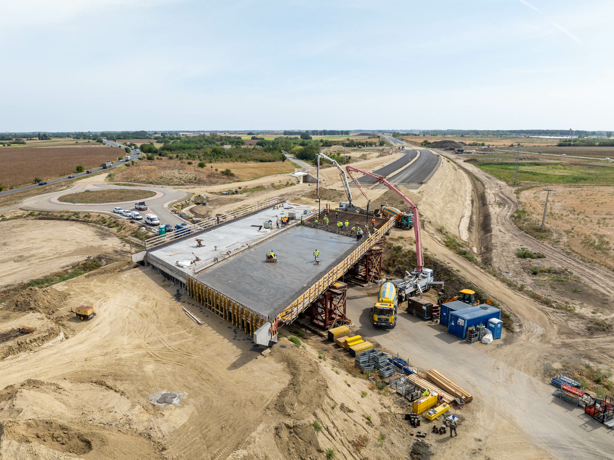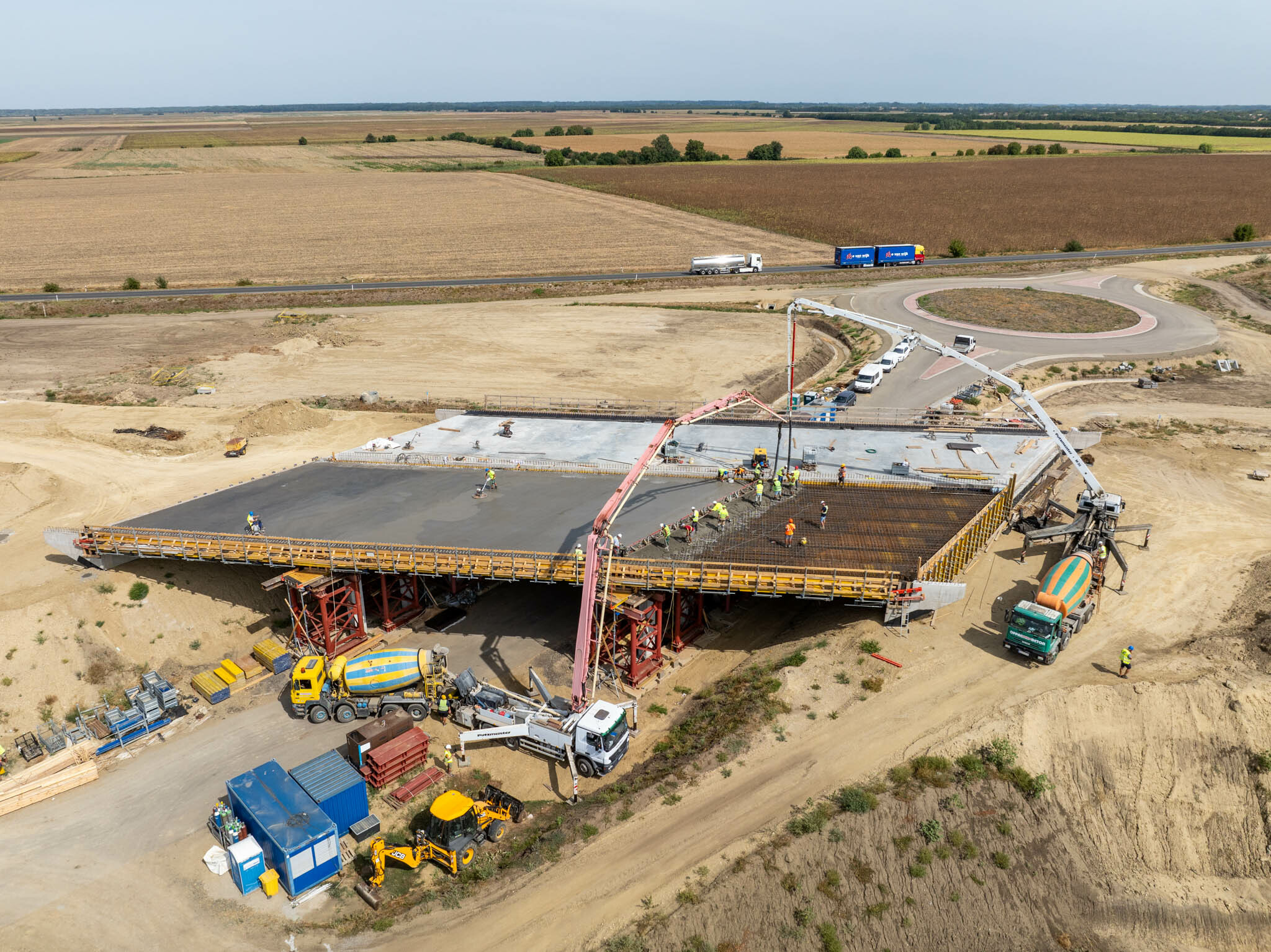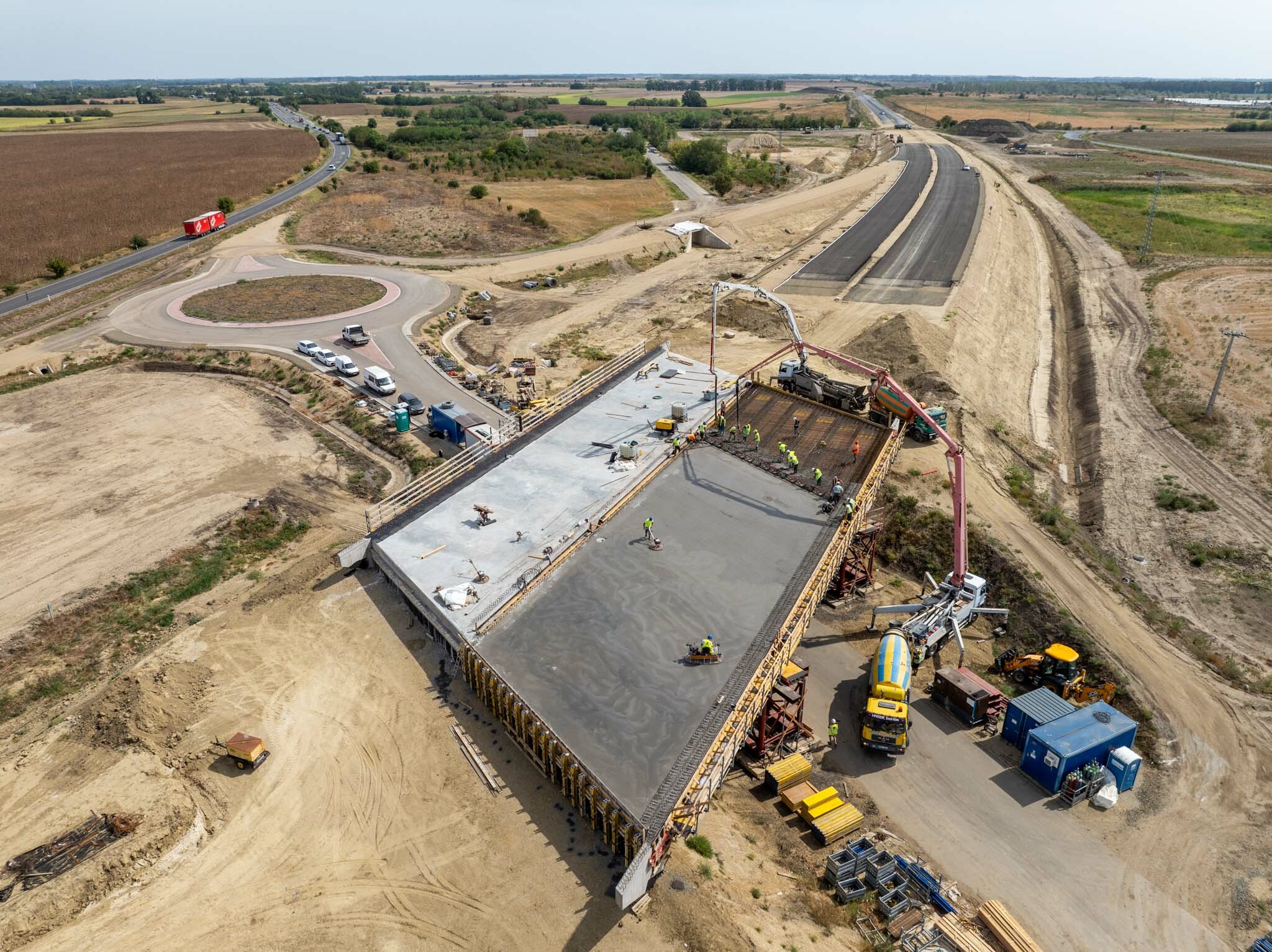 Szintén fontos előrehaladás, hogy a kisújszállási elkerülő szakaszon a 102-es (Kisújszállás – Kál-Kápolna) vasútvonal, illetve 100-as (Szolnok-Debrecen) vasútvonal felett épülő vasúti hidak pályalemeze egyaránt elkészült. Az összes műtárgy tekintetében zárásként arra is felhívta a figyelmet, hogy szeptember végére elkészül az utolsó szerkezeti cölöp is az M4-es Törökszentmiklós-Kisújszállás szakaszán, ezzel a hidak készültsége eléri a 60%-ot a projektben.