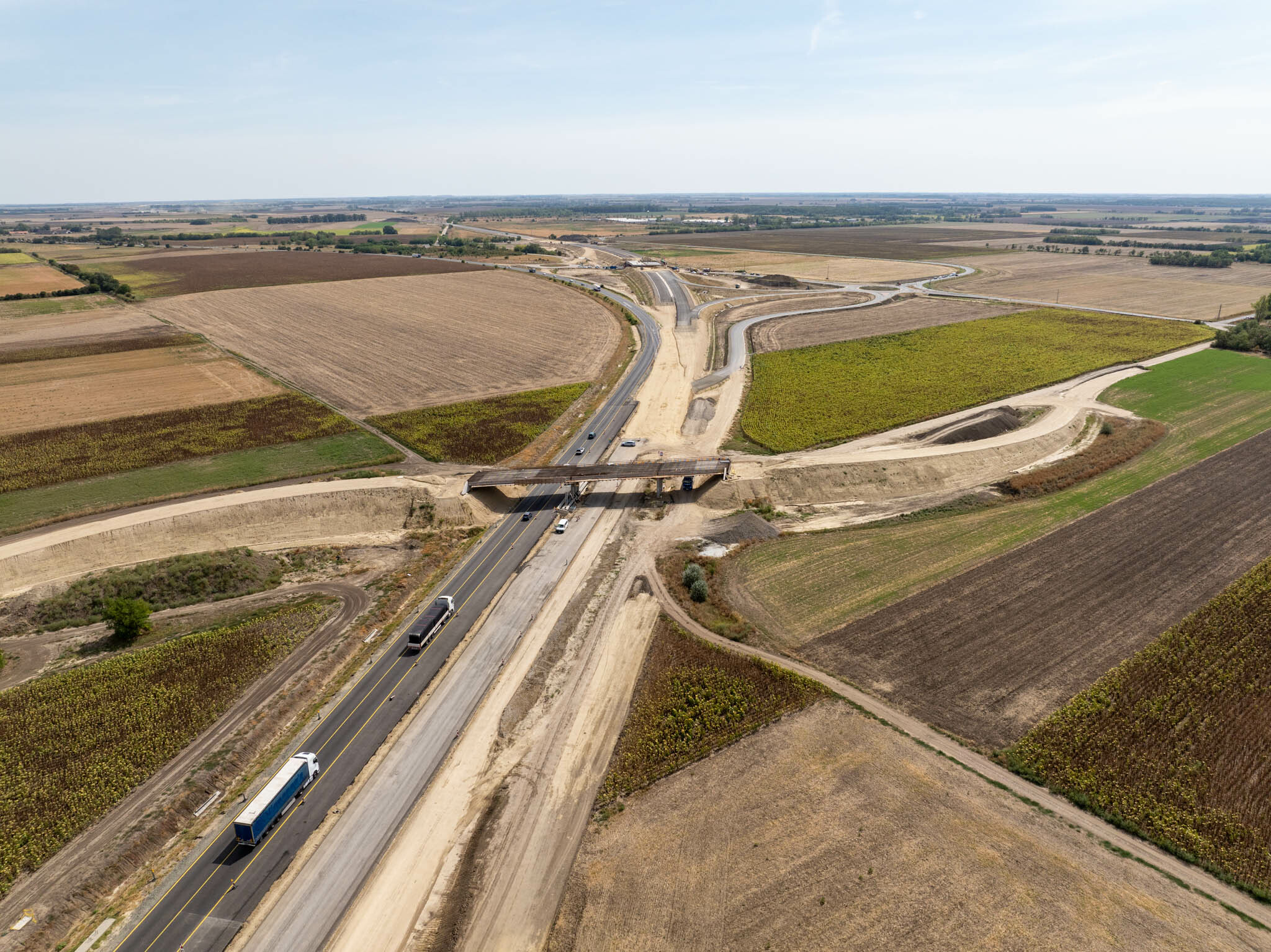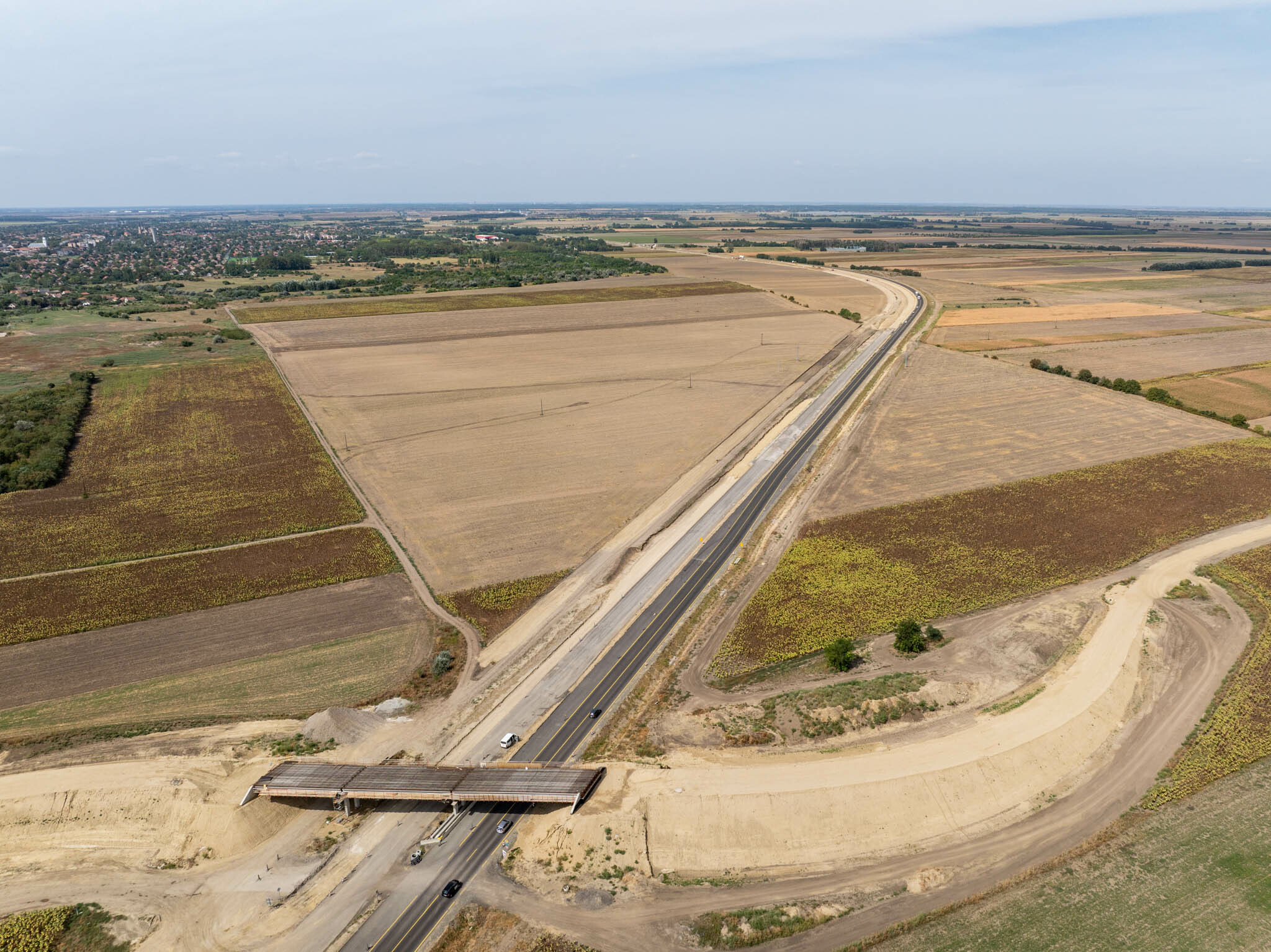 A munkák a kisújszállási elkerülőn is előre haladtak: itt a bal pálya a vasúti magastöltések között 4,5 km hosszban - az aszfalt kopóréteget és forgalomtechnikát leszámítva - már elkészült, a hiányzó munkák ősszel következnek. „A kisújszállási csomópontban, illetve a komplex pihenő bal oldalán a földmű elkészült, itt zajlik a Ckt-útalap és aszfalt kötőréteg építés” – mutatott rá.