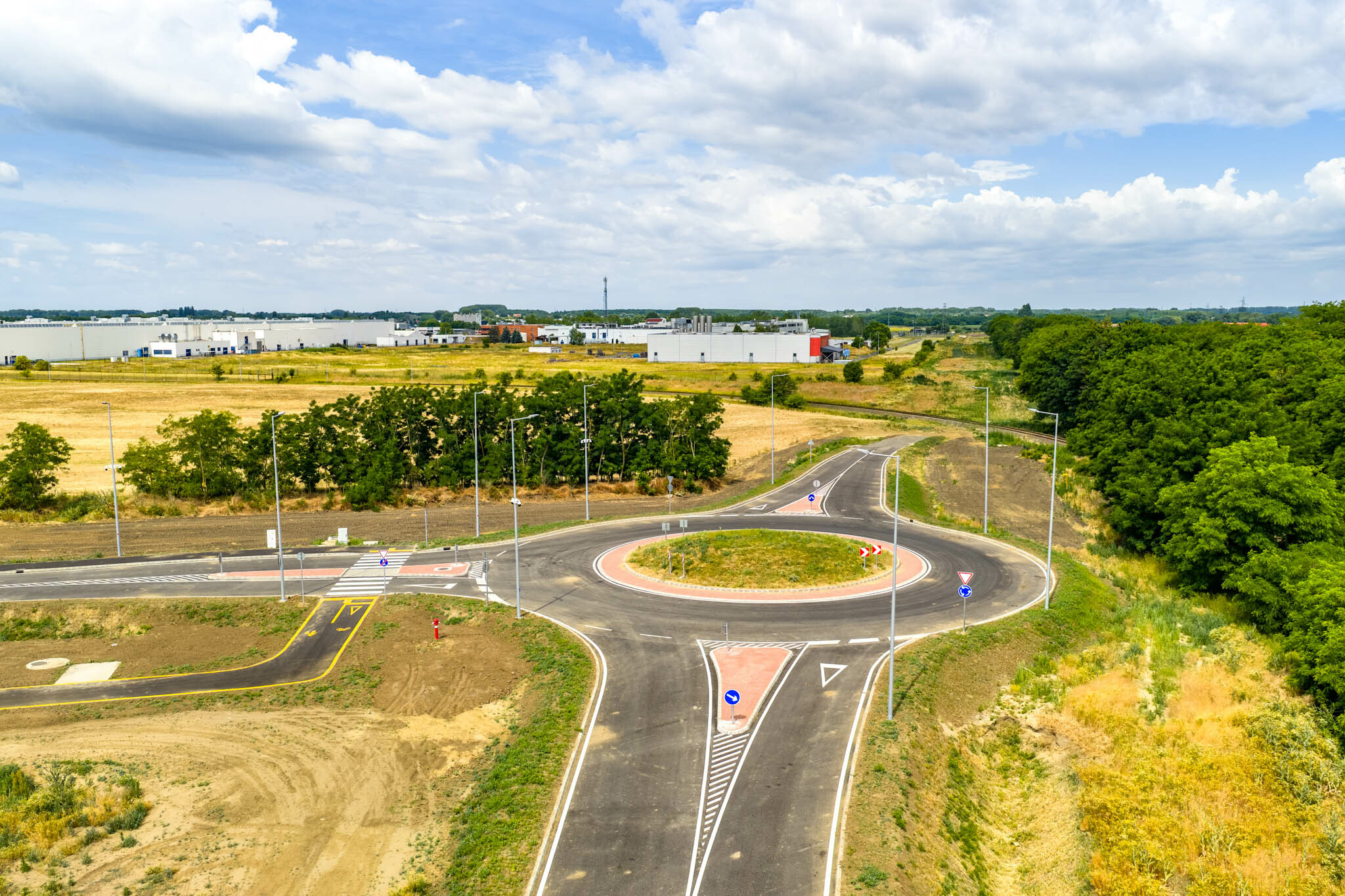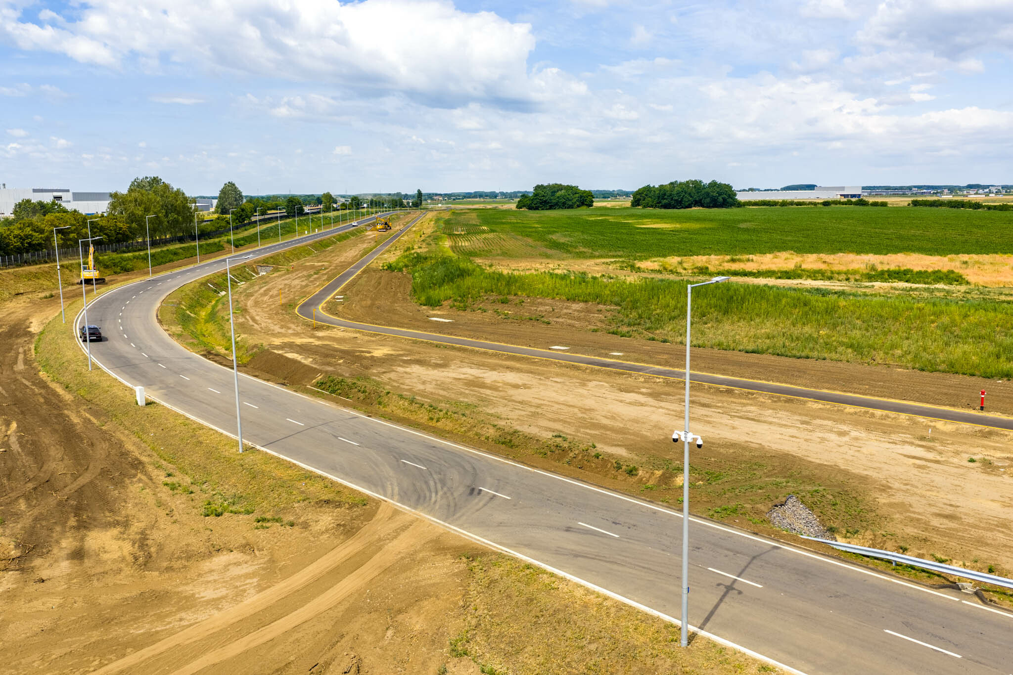 Gaál László a kihívásokra kitérve elmondta, hogy külön nehézséget jelentett az útépítéshez szükséges nagy mennyiségű anyag területre történő szállítása, ami az épülő gyárakhoz szükséges anyagok szállításával párhuzamosan történt, a meglévő közútcsatlakozásokat azonban nem ilyen mértékű forgalomra méretezték.