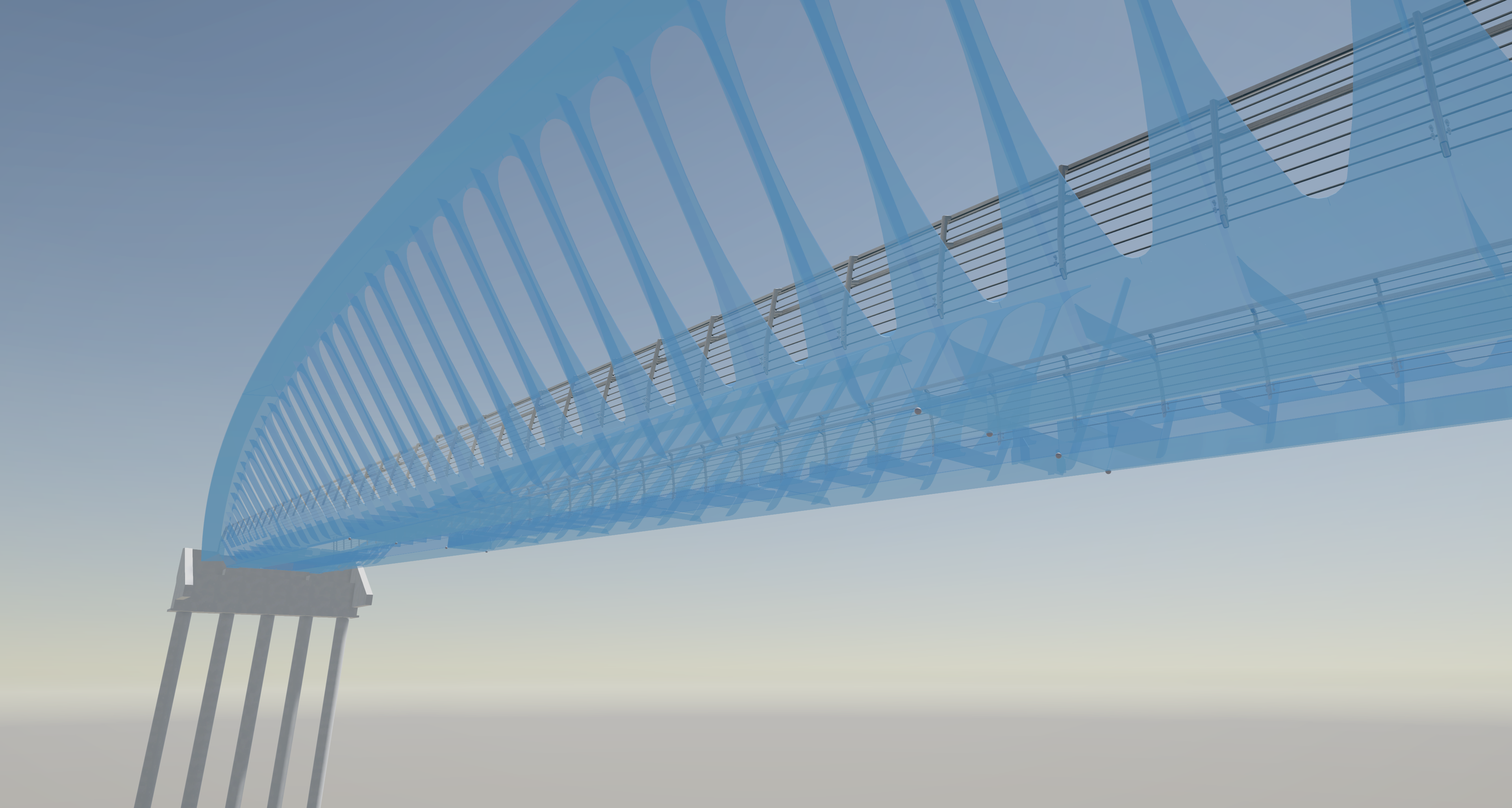 Az 1966-ban épült vasbeton átkelő felett eljárt az idő, helyét egy tisztán acél szerkezetű, feszített híd veszi át. A velencei gyalogos-kerékpáros híd főtartóinak alacsony hajlásszöge és az útpálya szintjén átfutó geometriája nemcsak nagy szerkezeti szilárdságot biztosít, de látványával is demonstrálja majd a megújuló autópálya technikai fejlődését.