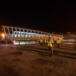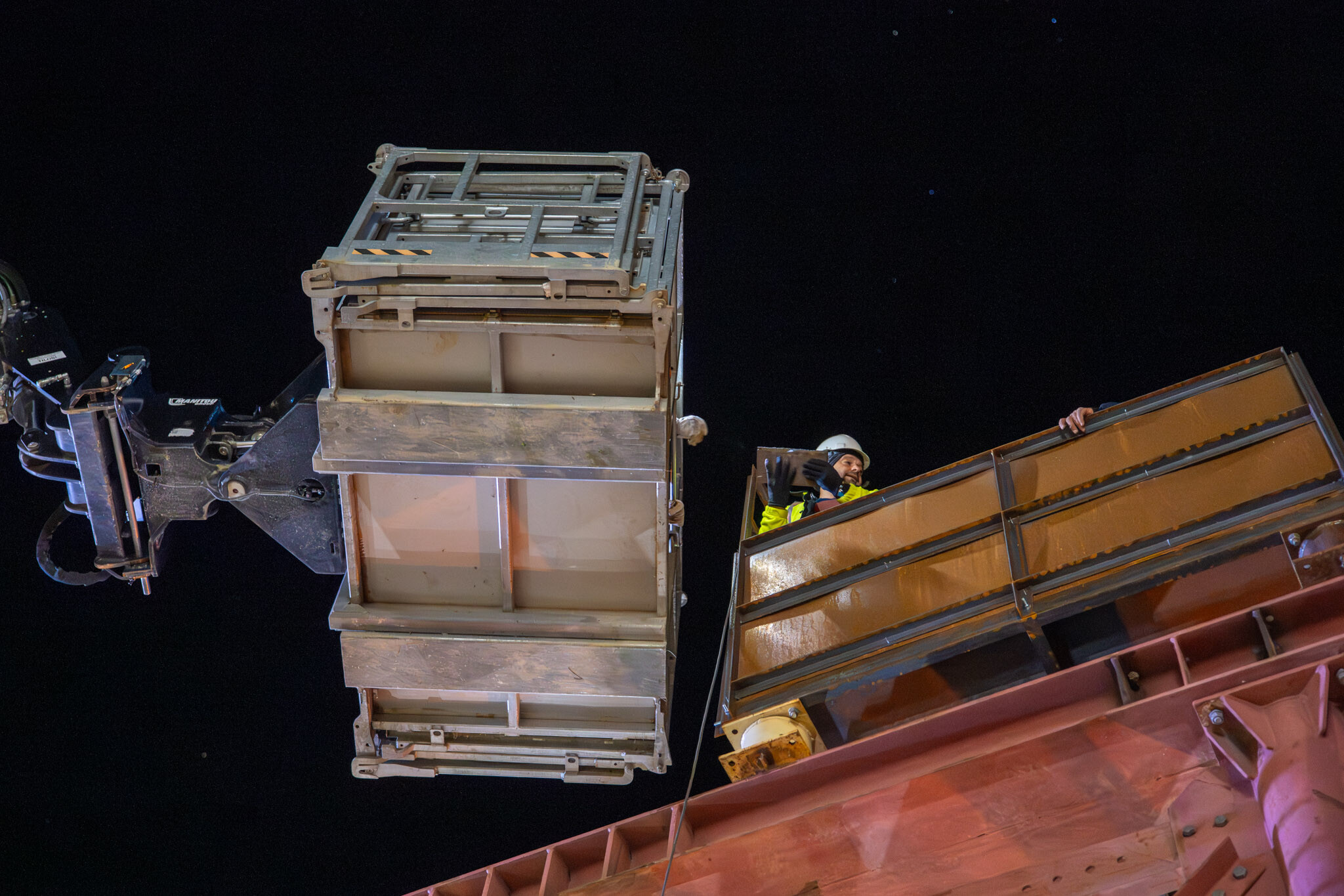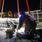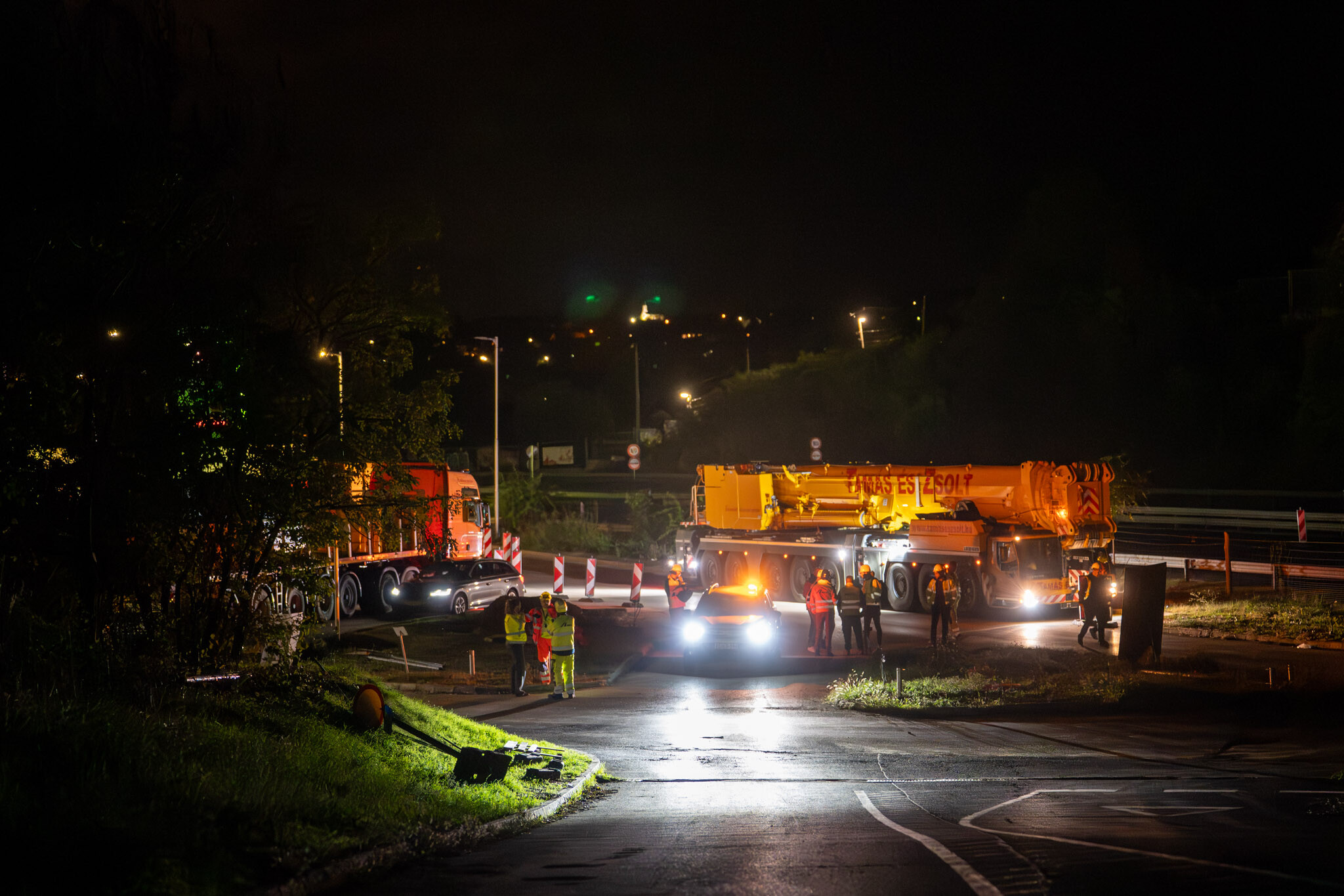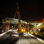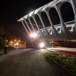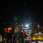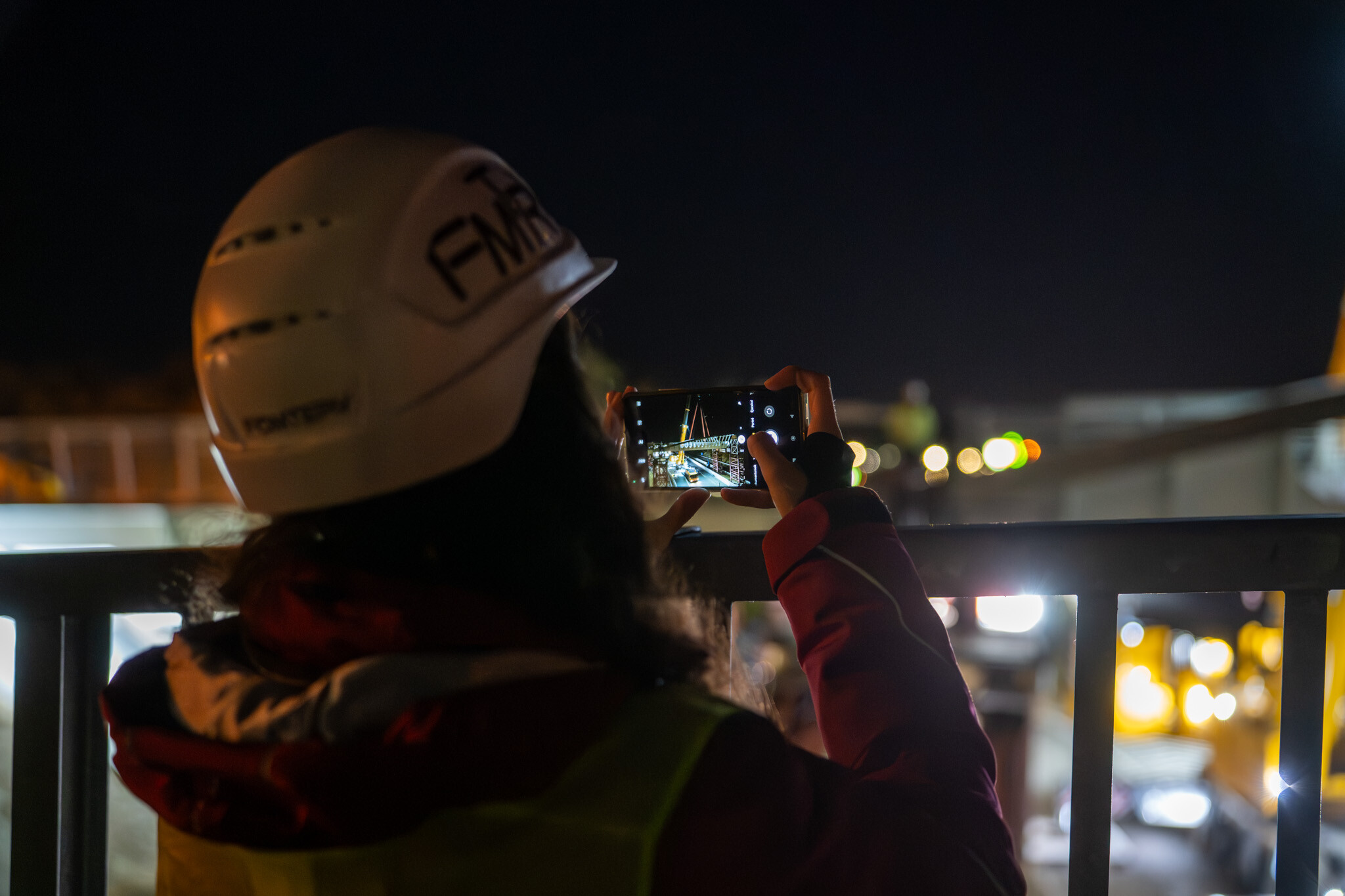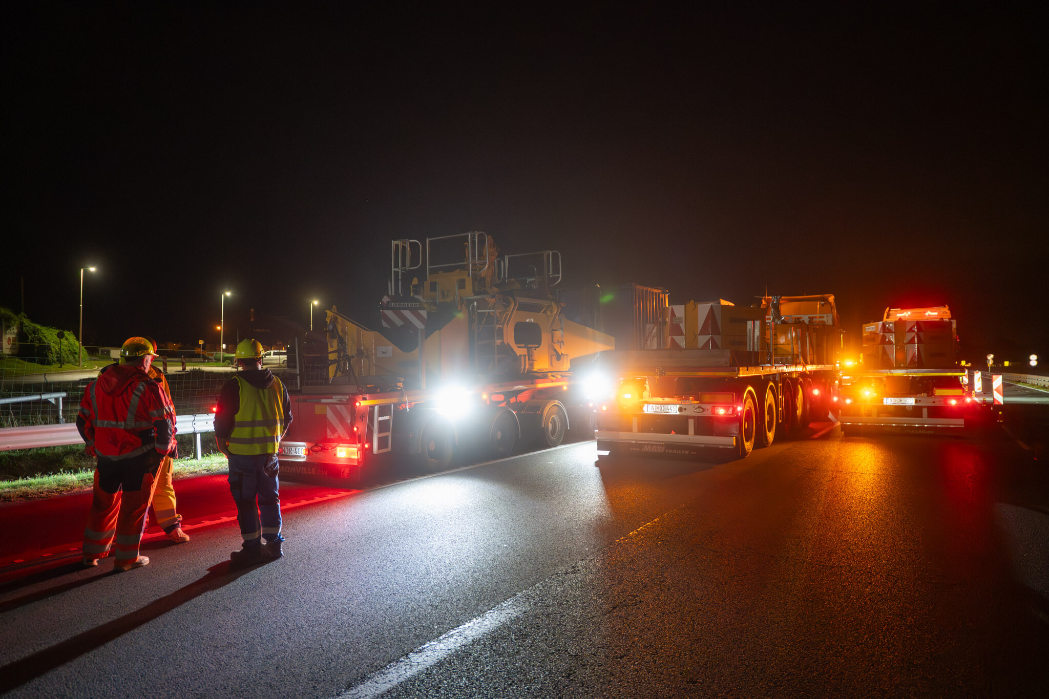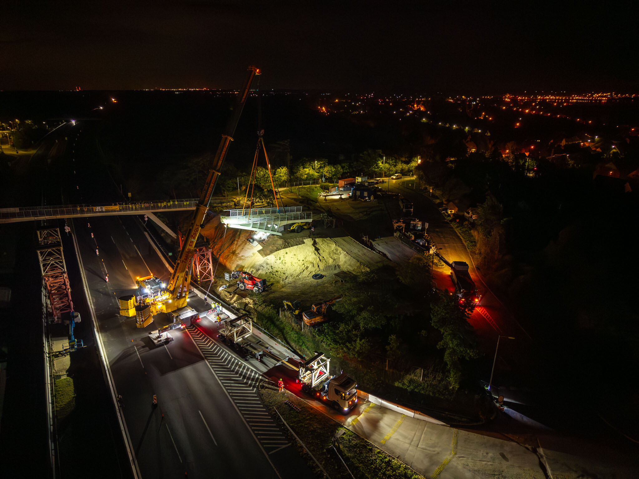 Mint arról korábban beszámoltunk, a 193 tonnás, 80 méter hosszú híd szerkezetét nyolc elemben szállították a helyszínre. Ezeket kettesével összeillesztették, így a beemelések alkalmával két-két, azaz összesen négy elemet kellett daruval a helyére tenni.