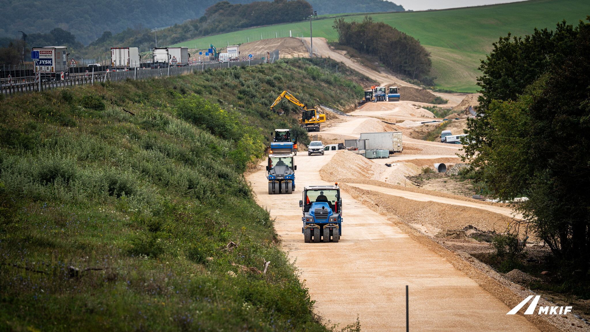Minderről és a szeptember elseje óta egy nagyságrenddel nagyobb ütemben zajló, legújabb munkákról is hírt adtunk és adunk a cég Facebookon közzétett tájékoztatói alapján. Nemrég az ideiglenes forgalmi rend kialakításához szükséges töltésszélesítési feladatokról számolt be az MKIF.