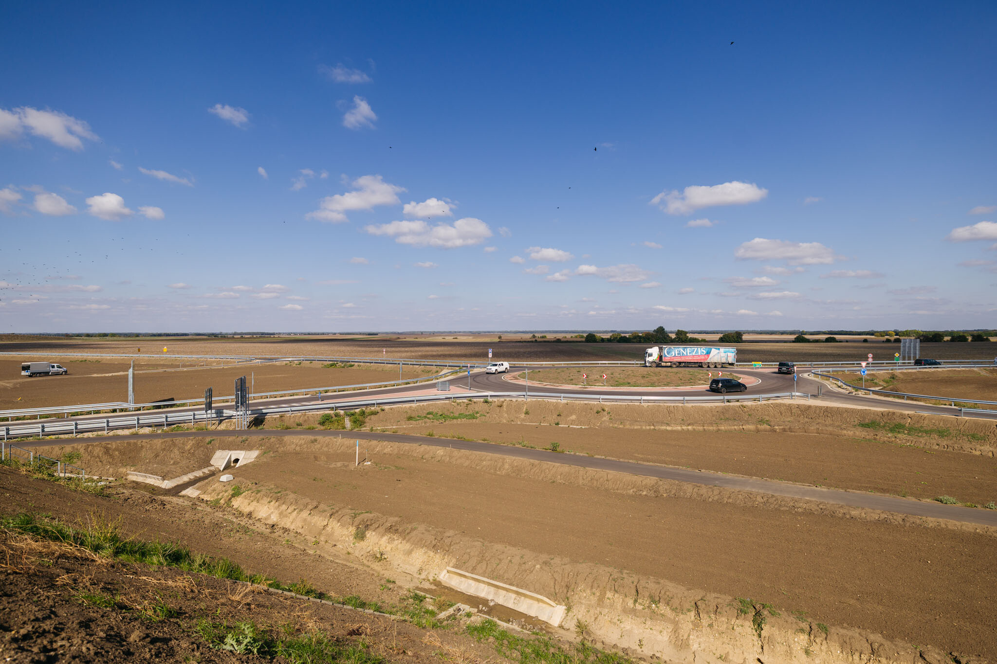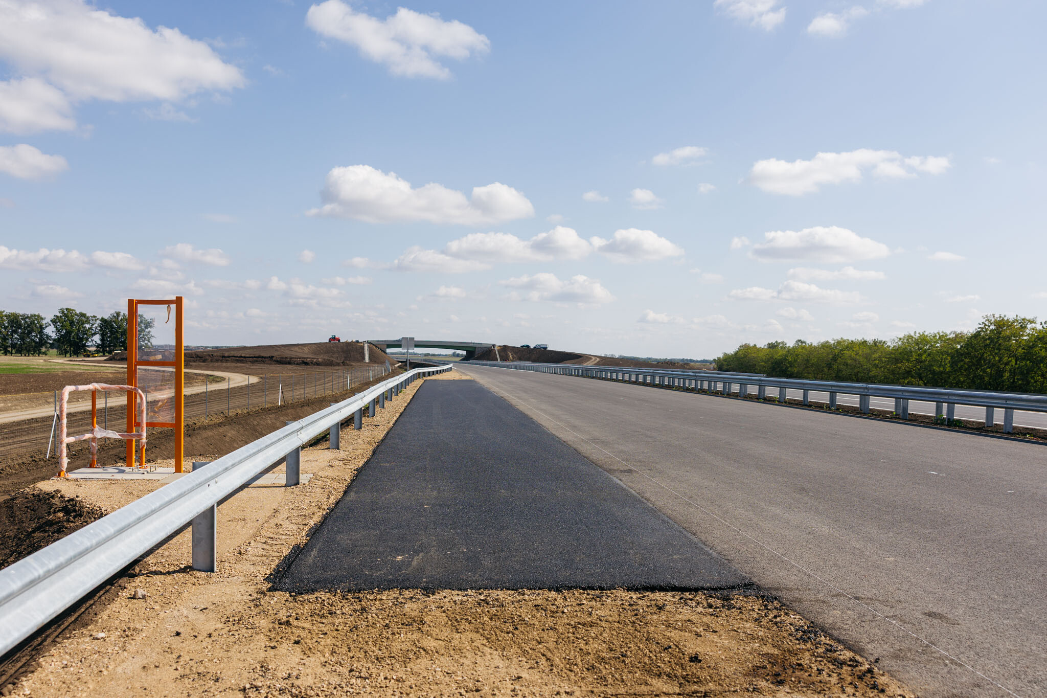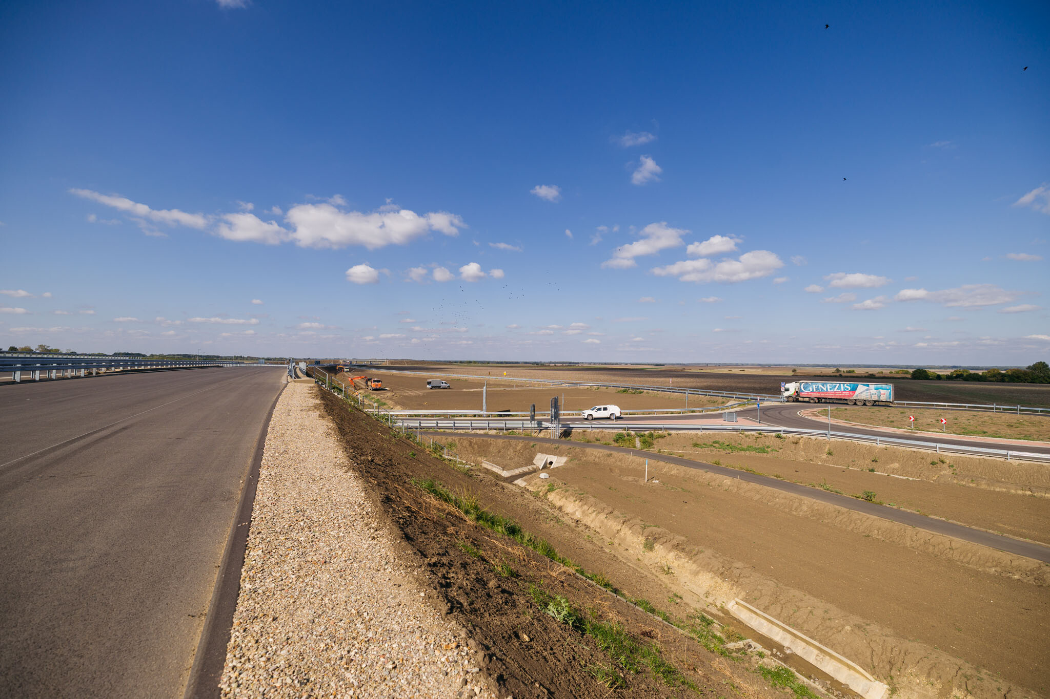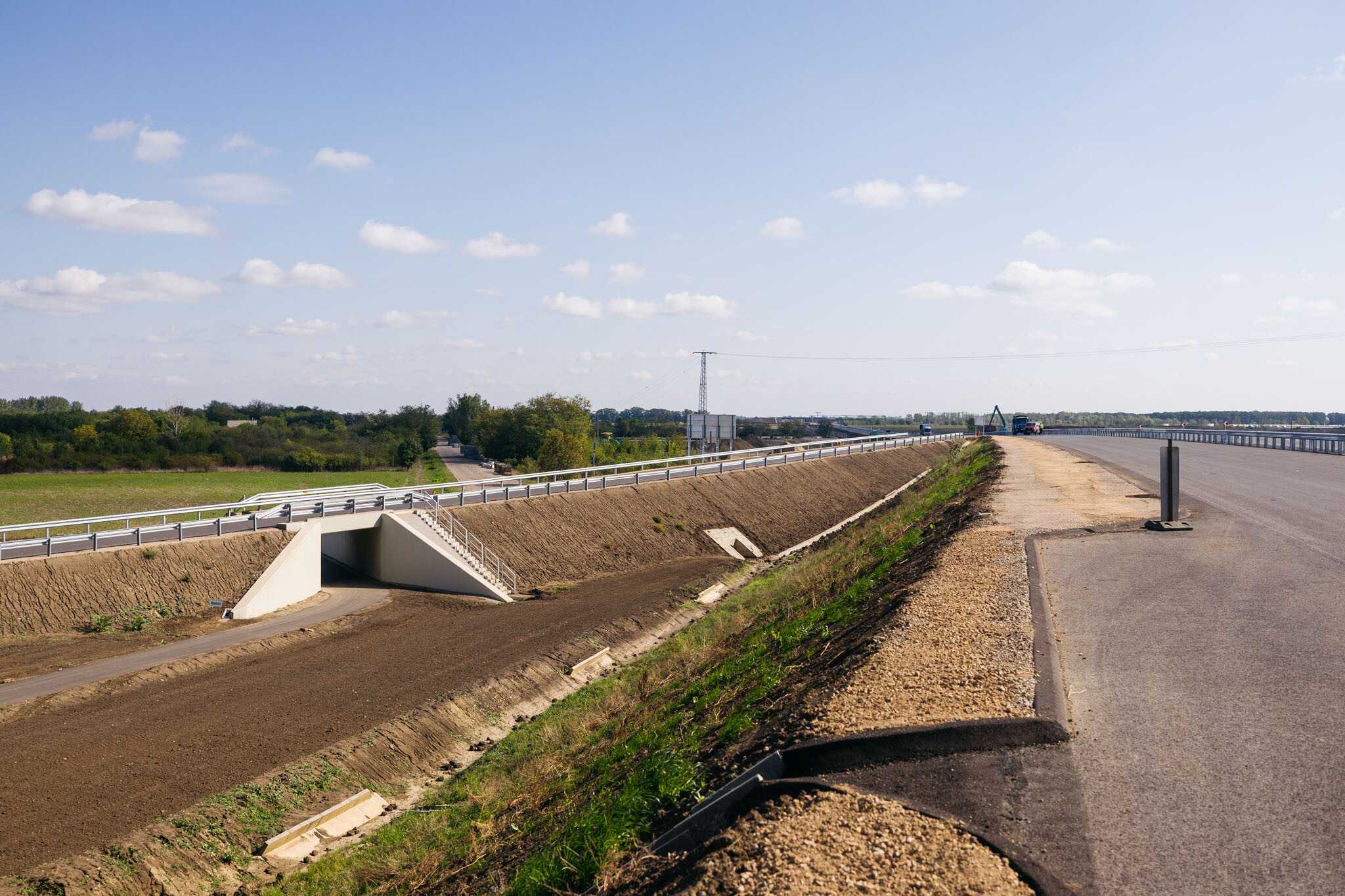 A négy keresztező állami közút elkészült, a forgalmat átterelték az új felüljárókra. A hat földútból öt teljesen készen van, a hatodik kivitelezése zajlik.