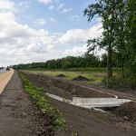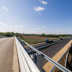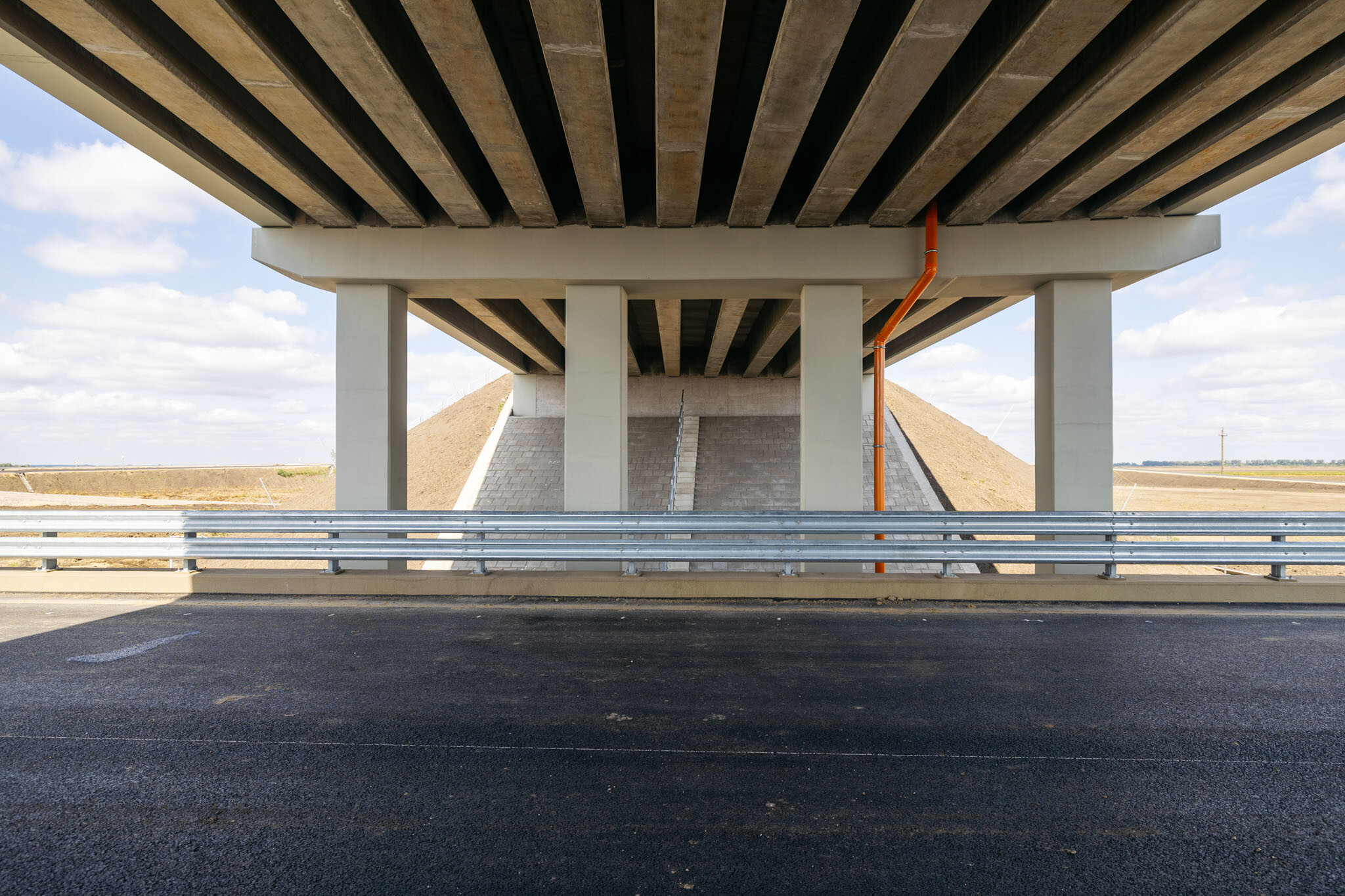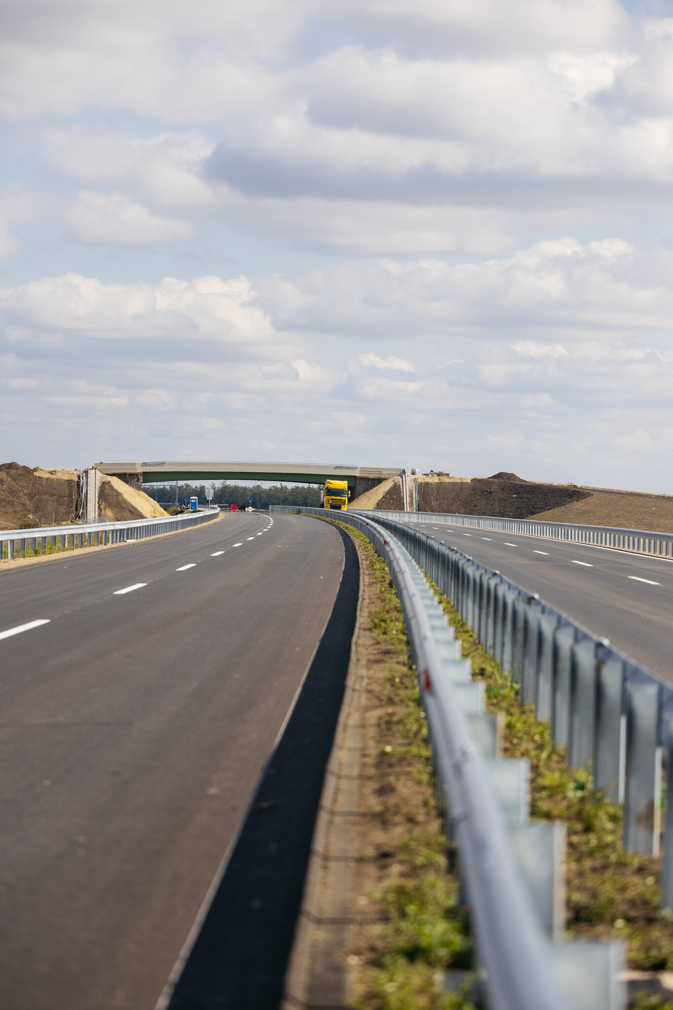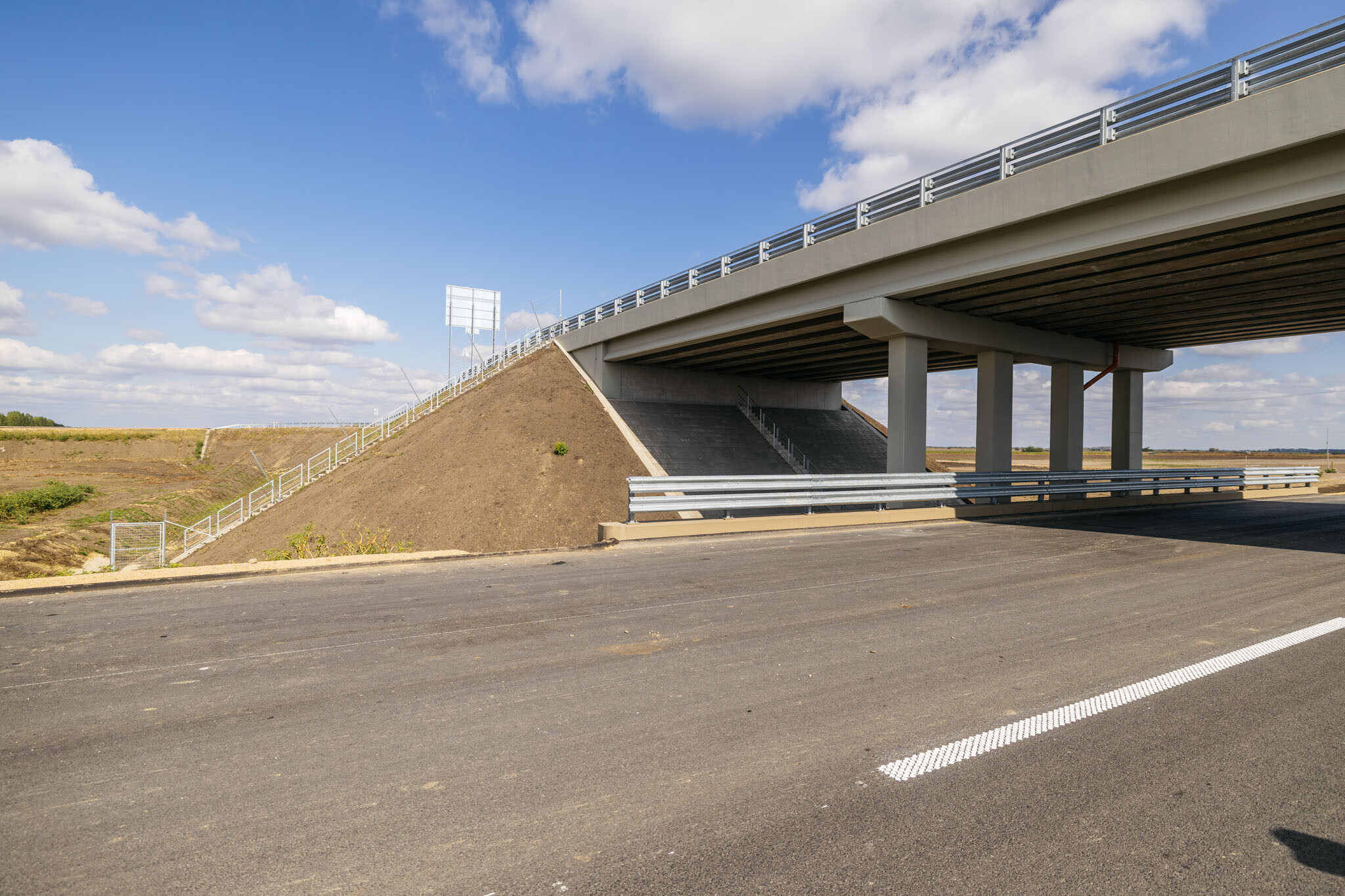 A négy keresztező állami közút elkészült, a forgalmat átterelték az új felüljárókra. A hat földútból öt teljesen készen van, a hatodik kivitelezése zajlik.