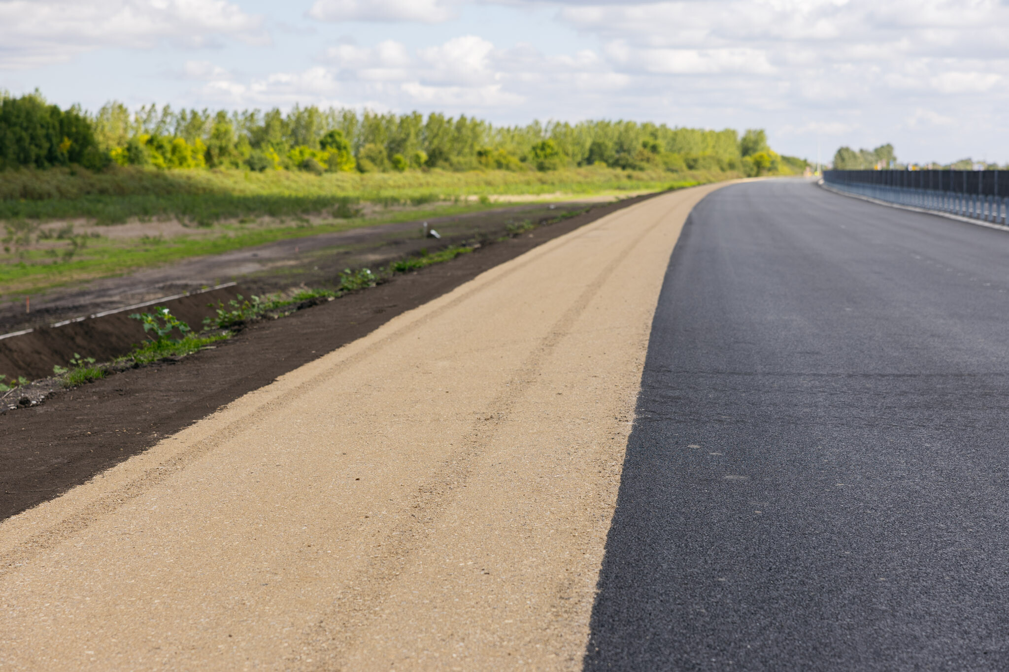 A kisújszállási elkerülő bal pályáján a kopóréteg már elkészült, jelenleg forgalomtechnikai és padkaépítési munkák zajlanak.