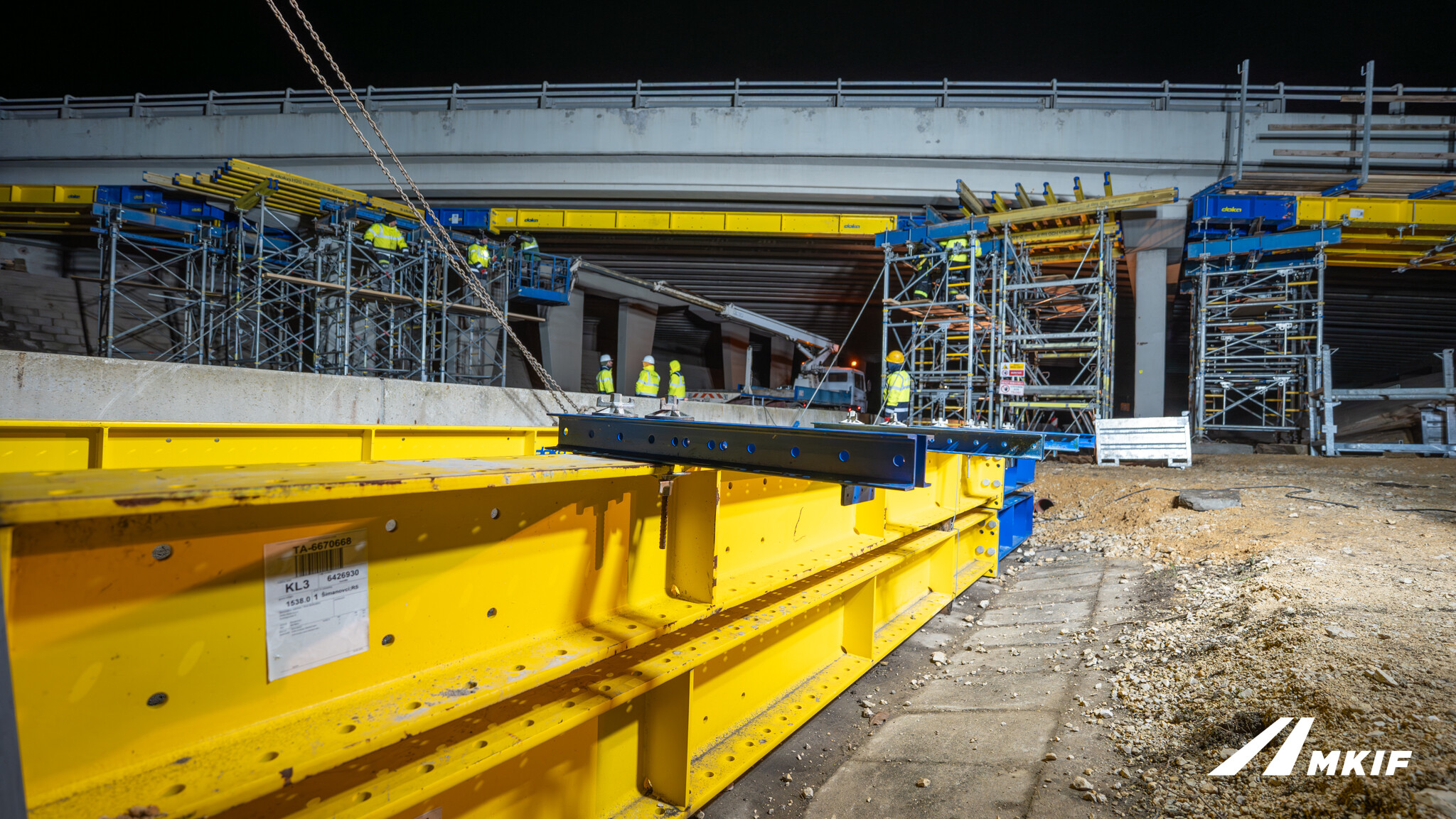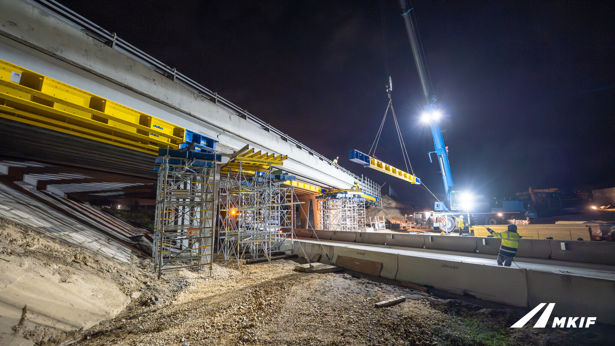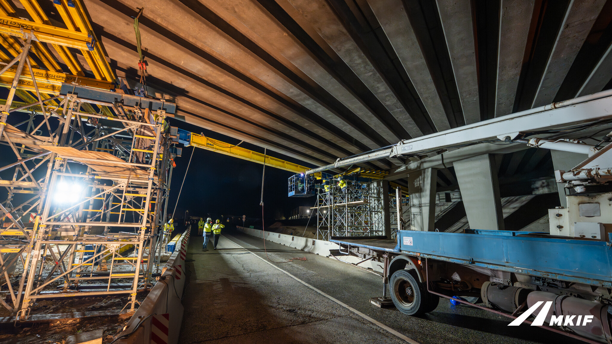 Forgalomkorlátozás mellett építették fel az ún. nehézállványt az M1-es autópálya Biatorbágyi csomópontjánál az 1-es főút fölé a mai napra virradó éjszaka – számol be a Facebookon fotóalbummal együtt megosztott munkanaplójában az MKIF Magyar Koncessziós Infrastruktúra Fejlesztő Zrt.