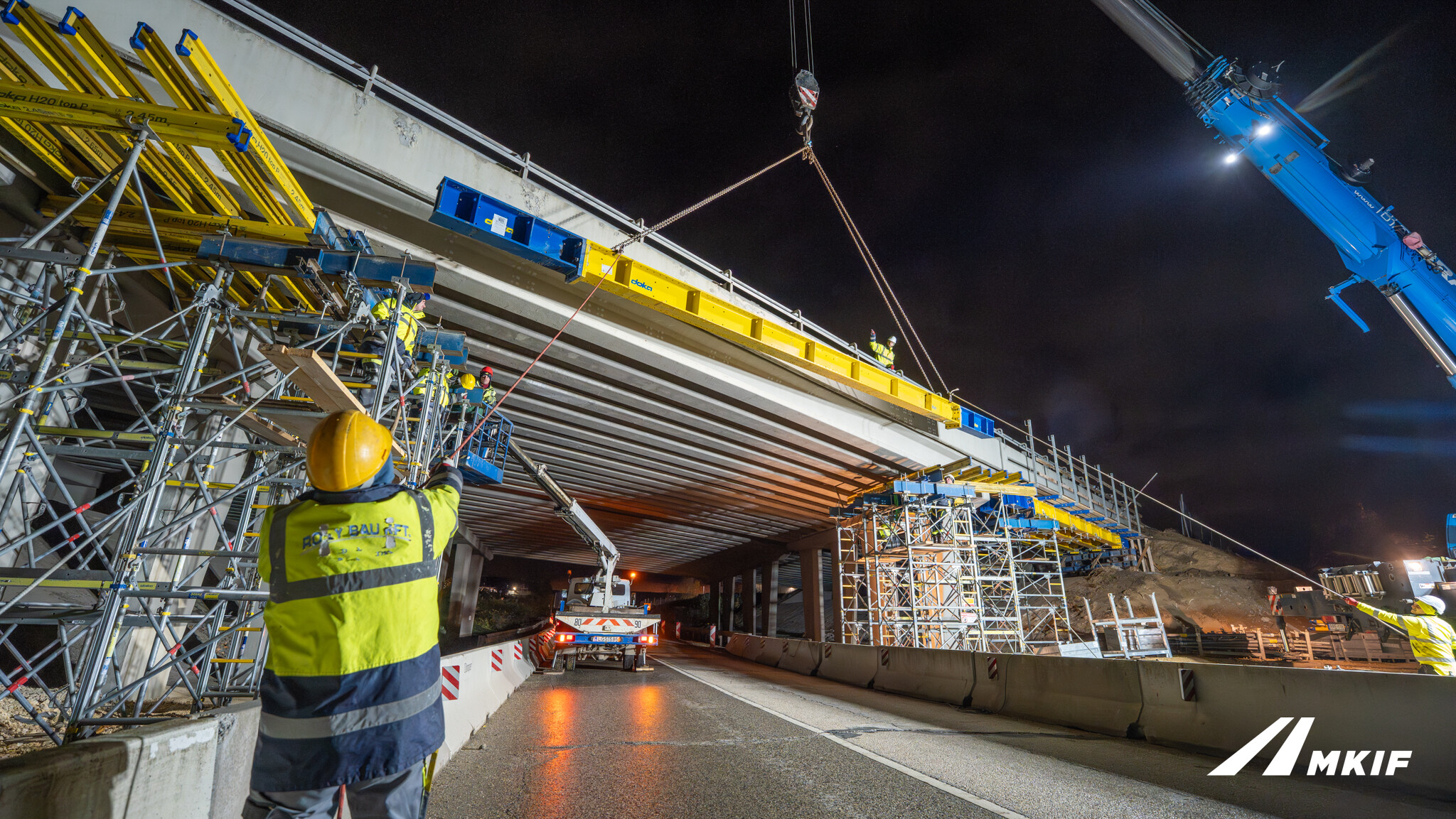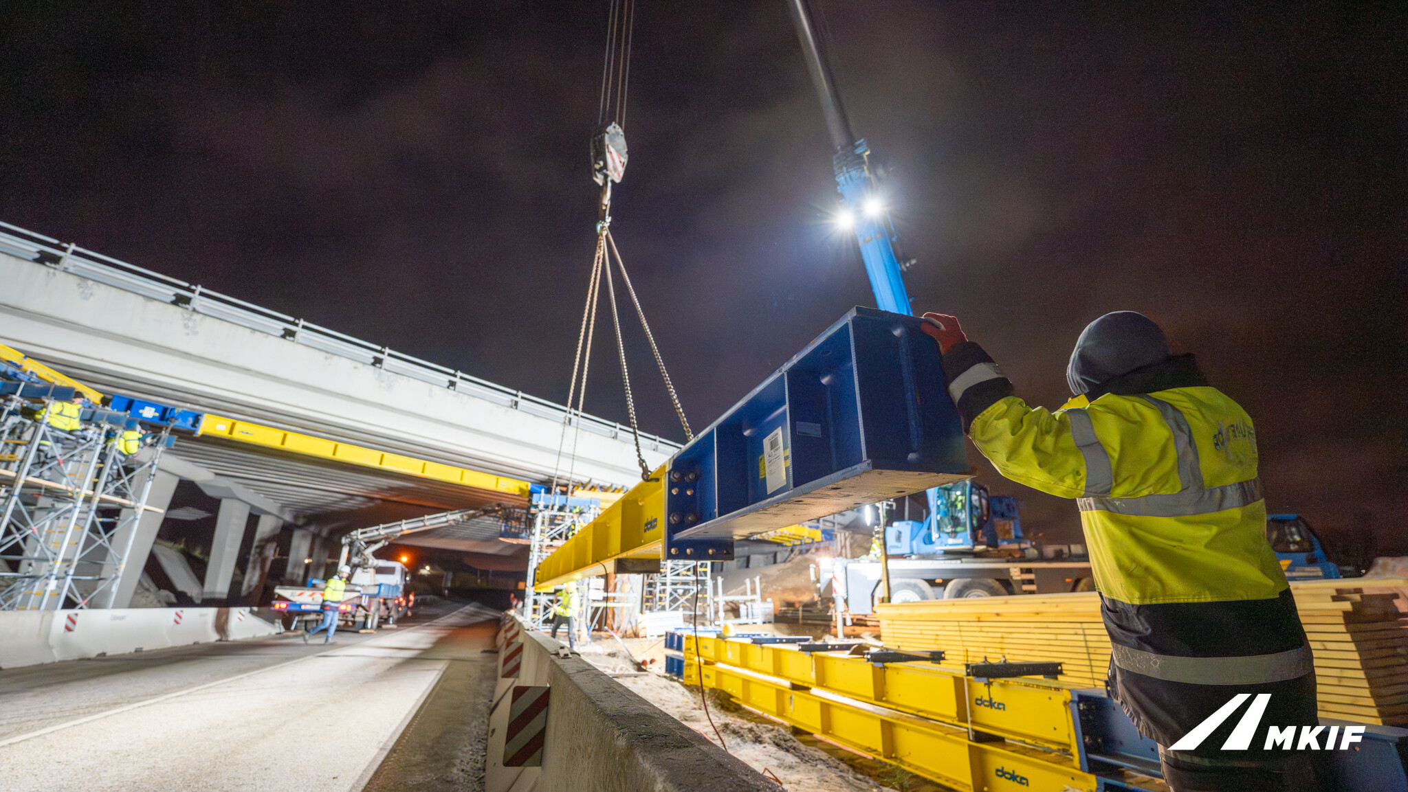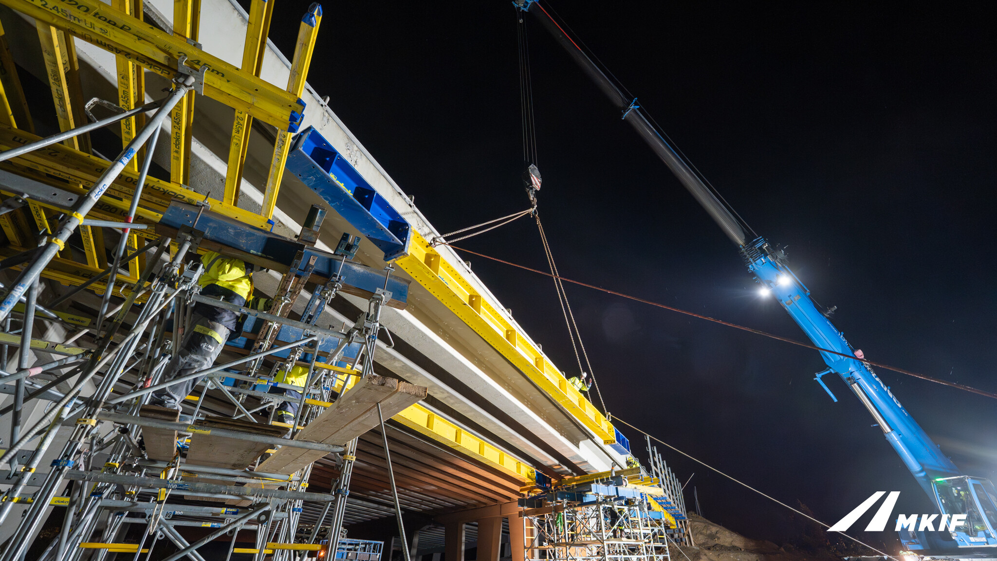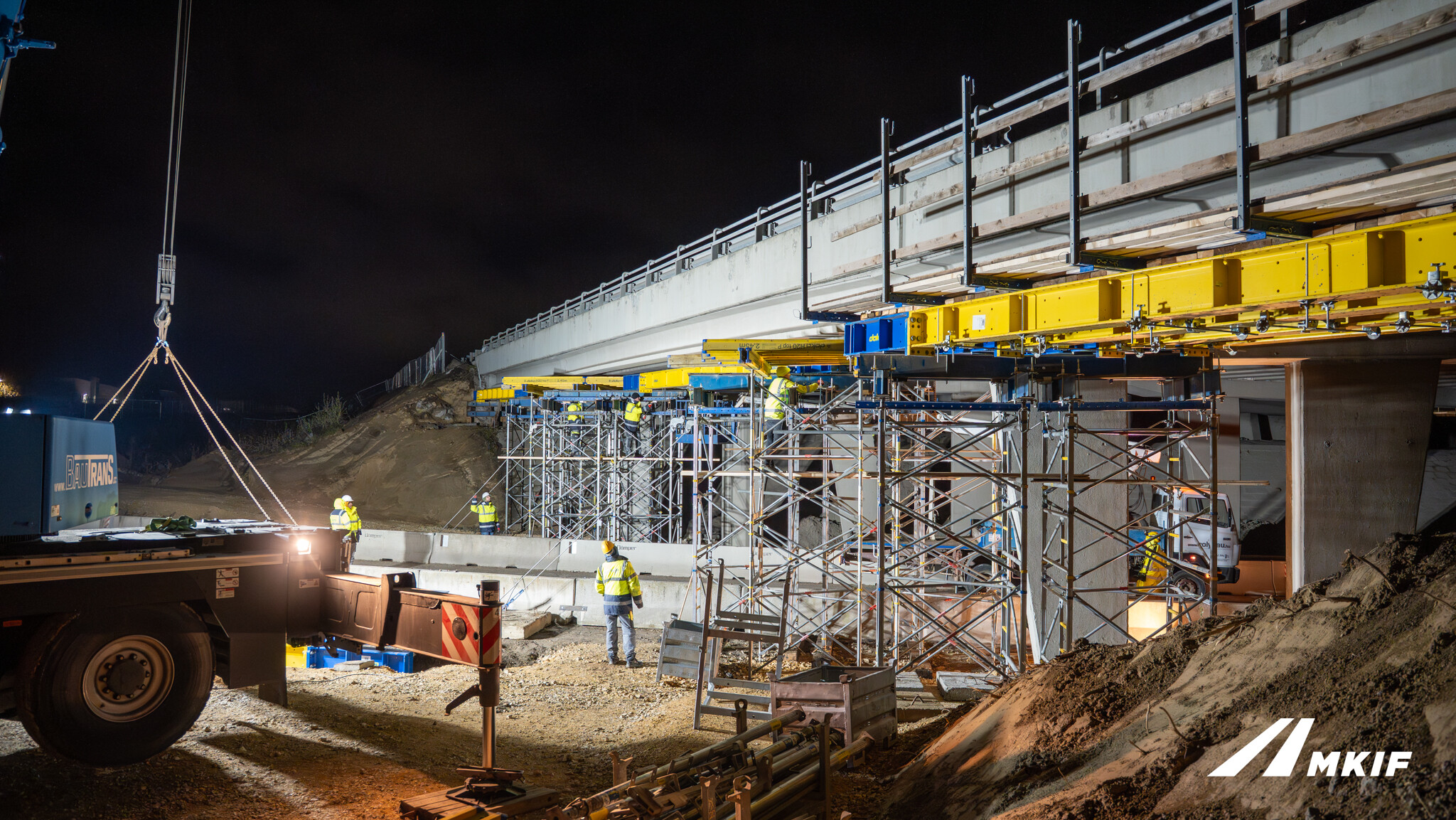 Forgalomkorlátozás mellett építették fel az ún. nehézállványt az M1-es autópálya Biatorbágyi csomópontjánál az 1-es főút fölé a mai napra virradó éjszaka – számol be a Facebookon fotóalbummal együtt megosztott munkanaplójában az MKIF Magyar Koncessziós Infrastruktúra Fejlesztő Zrt.