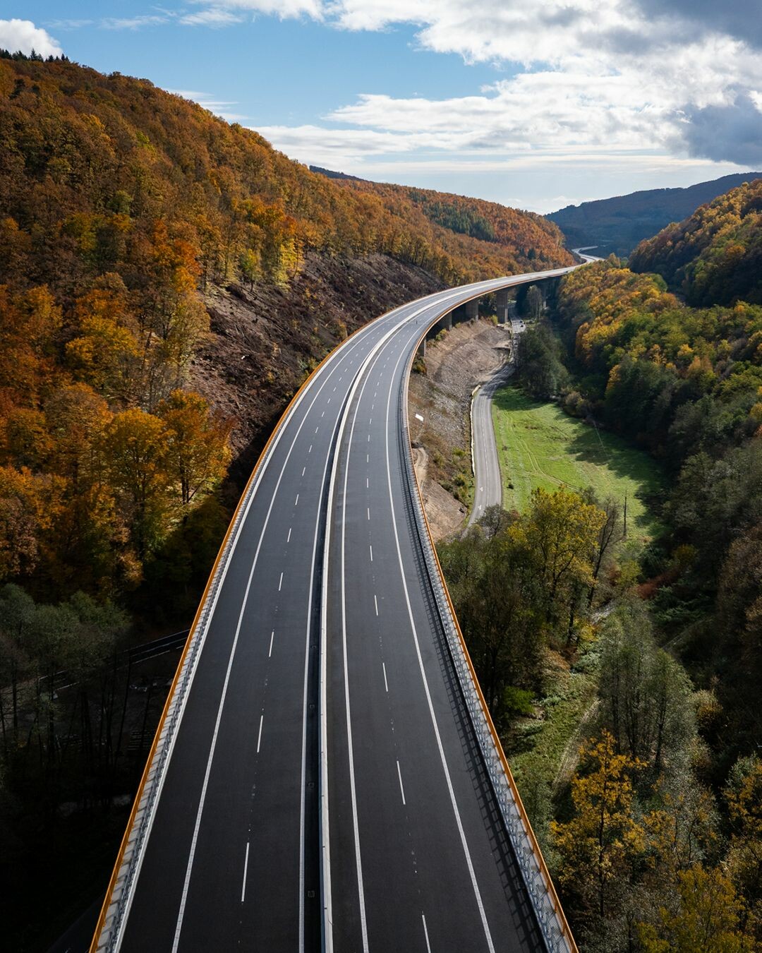 A Strabag bejegyzése hangsúlyozza, nem csupán a terep jelentett különleges kihívást, miután a munkák egy jelentős részét a koronavírus idején kellett elvégezni. Az autópálya-kezelő elemzései szerint az új szakasz az érintett településekről naponta mintegy 7 ezer személygépkocsit és 2 ezer tehergépkocsit vezet el.