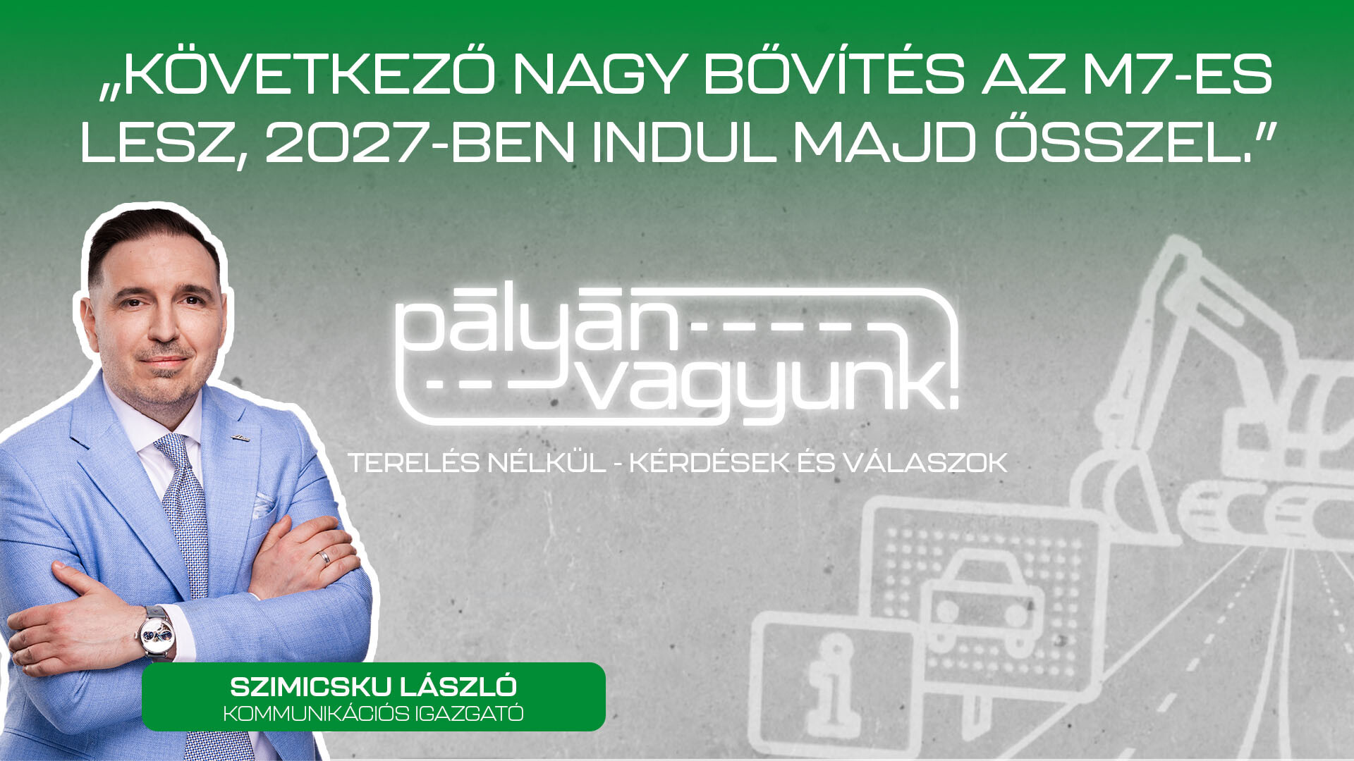 Újabb adással jelentkezett az MKIF Magyar Koncessziós Infrastruktúra Fejlesztő Zrt. podcast csatornája. A Terelések nélkül – kérdések és válaszok című rovatban Szimicsku László kommunikációs igazgató a gyorsforgalmi úthálózat üzemeltetésével, felújításával és fejlesztésével kapcsolatban felmerülő leggyakoribb kérdésekre reagál.