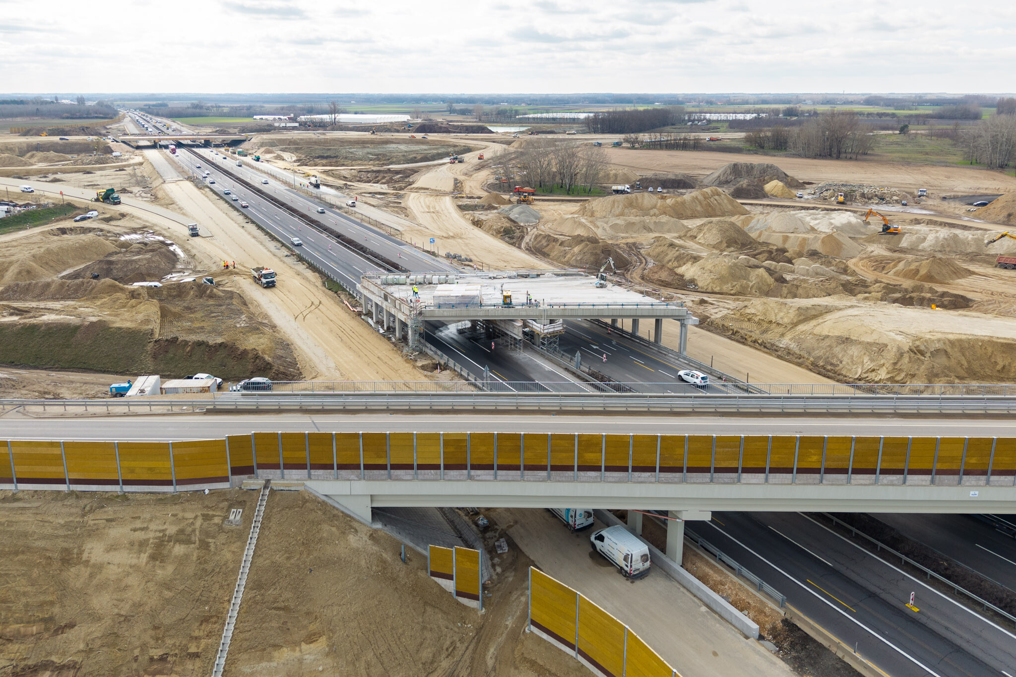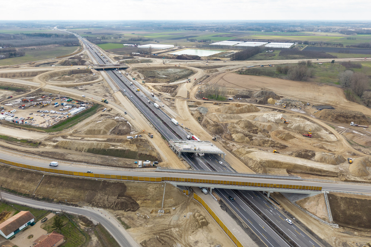 Látványos földmunkák zajlanak az M1-en, épül az új pálya alapja.