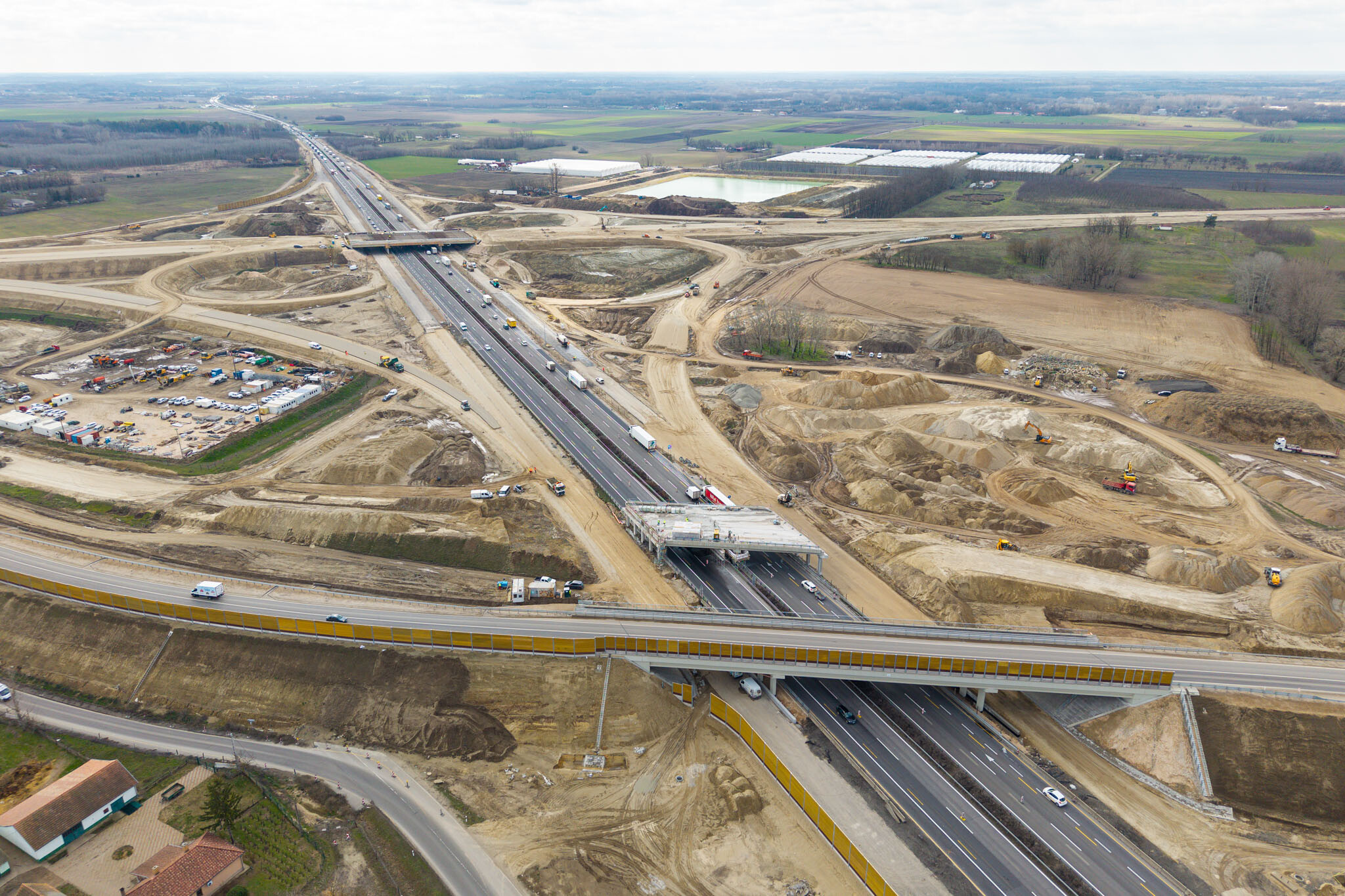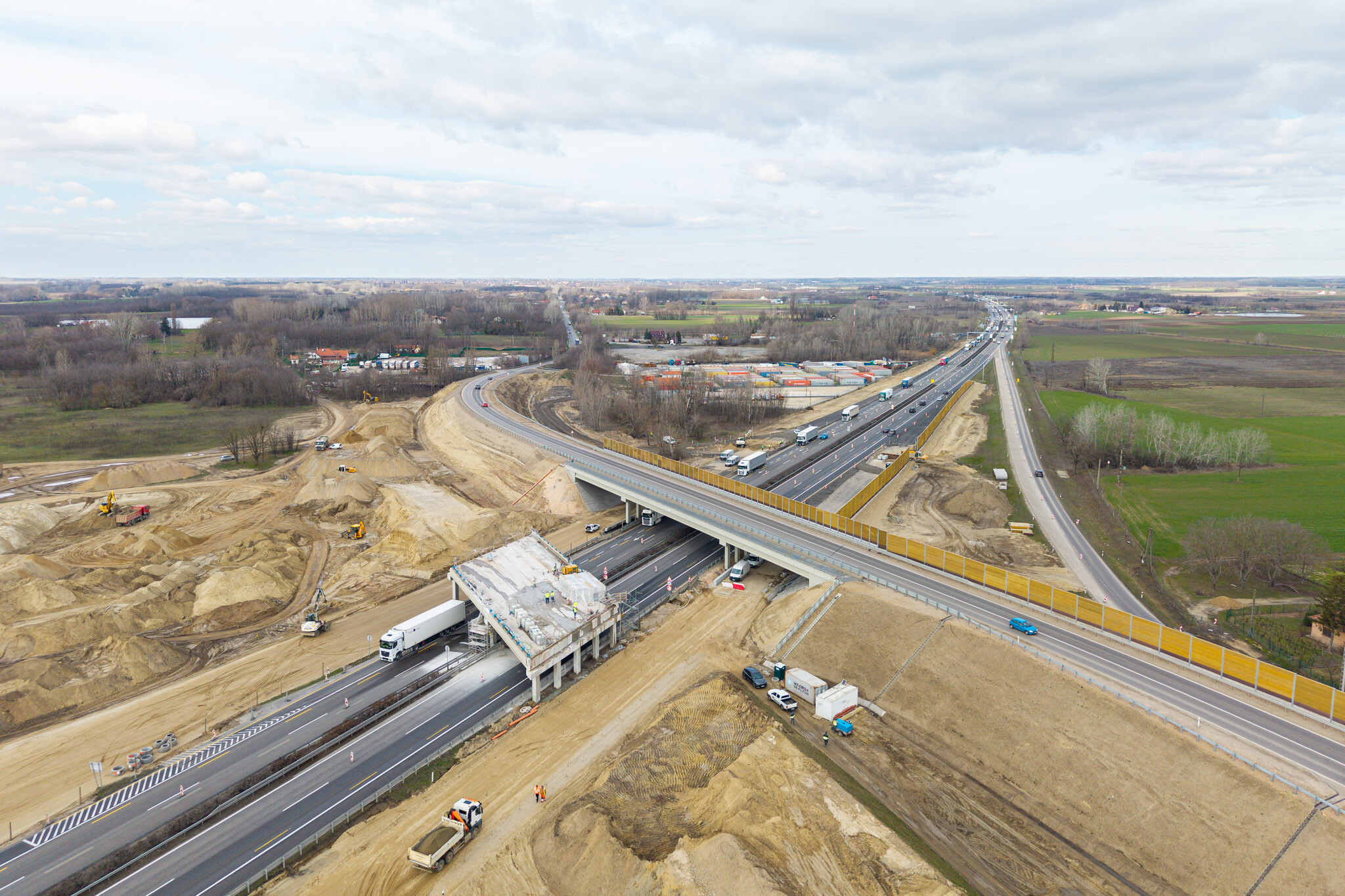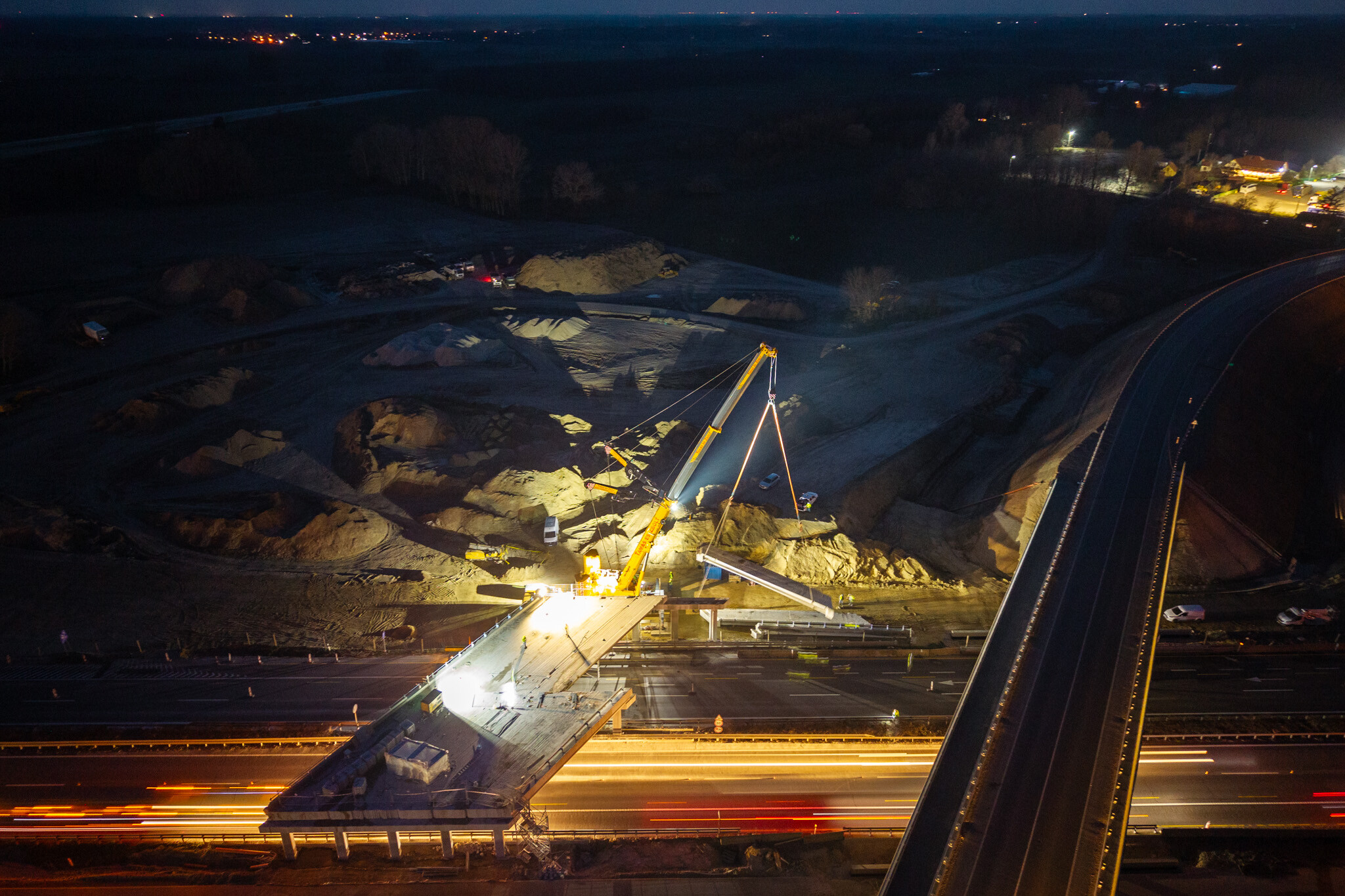 A most szóban forgó projektelem során az autópálya fölött az 5-ös főutat korábban átvezető régi hídnak a jobb sáv feletti gerendáit bontották le. Ennek megfelelően a műveletek idejére le kellett zárni az autópálya Szeged felé vezető sávjait, a forgalmat a másik ágra átterelve - ahogy azt az előzetes hírünkben is jeleztük.