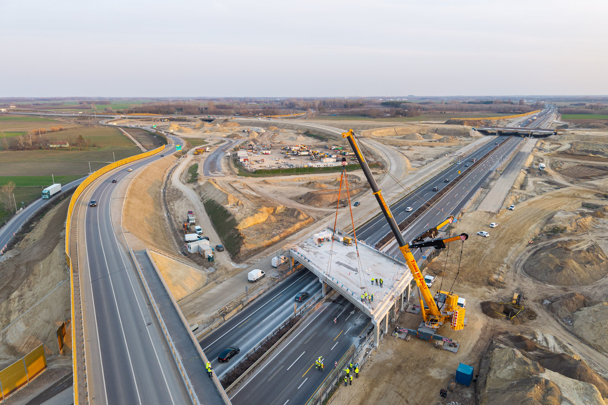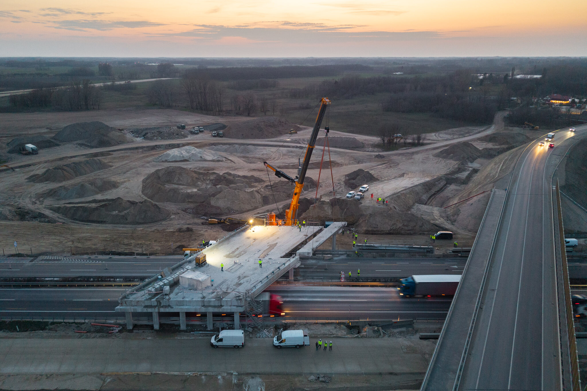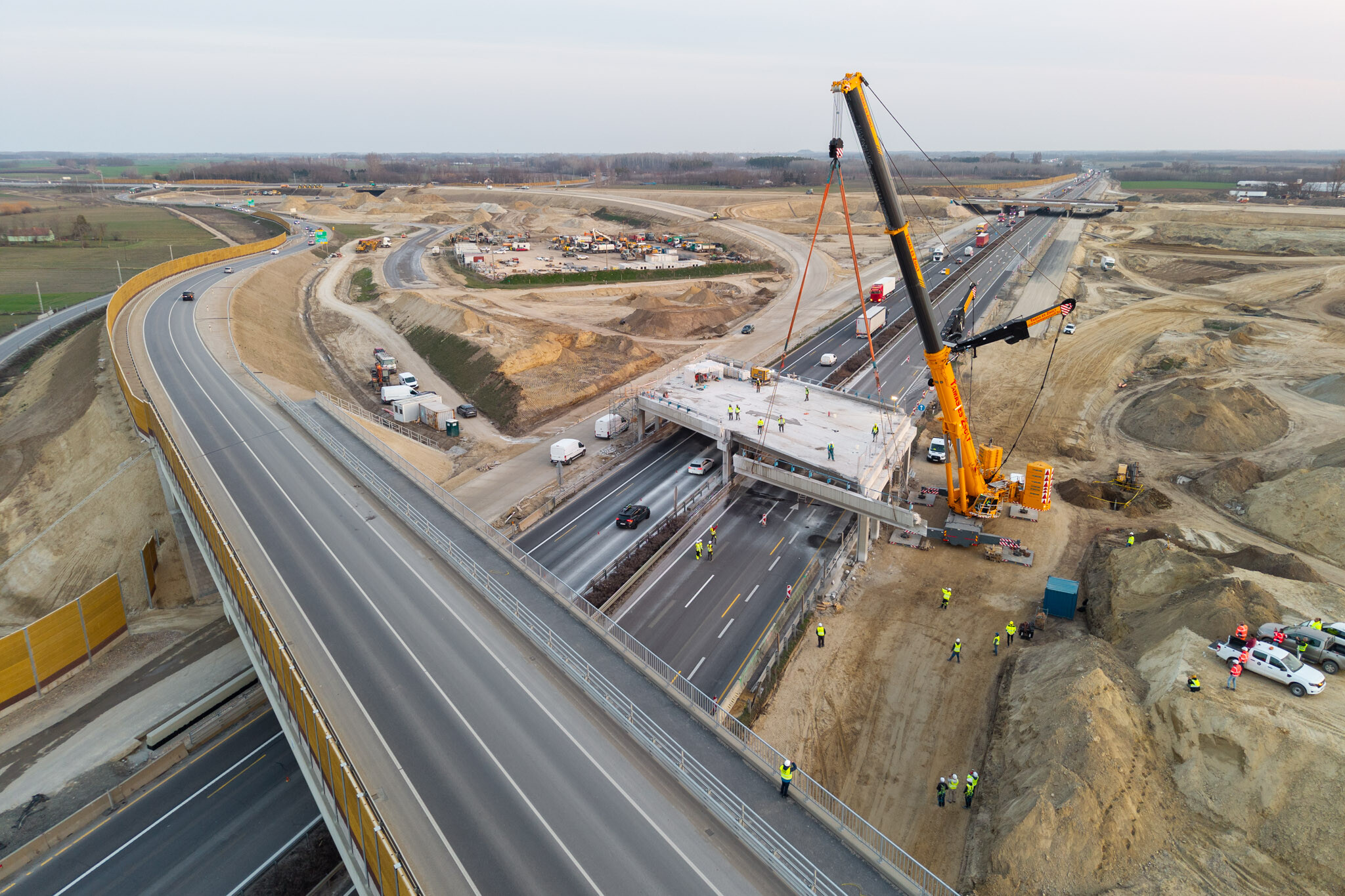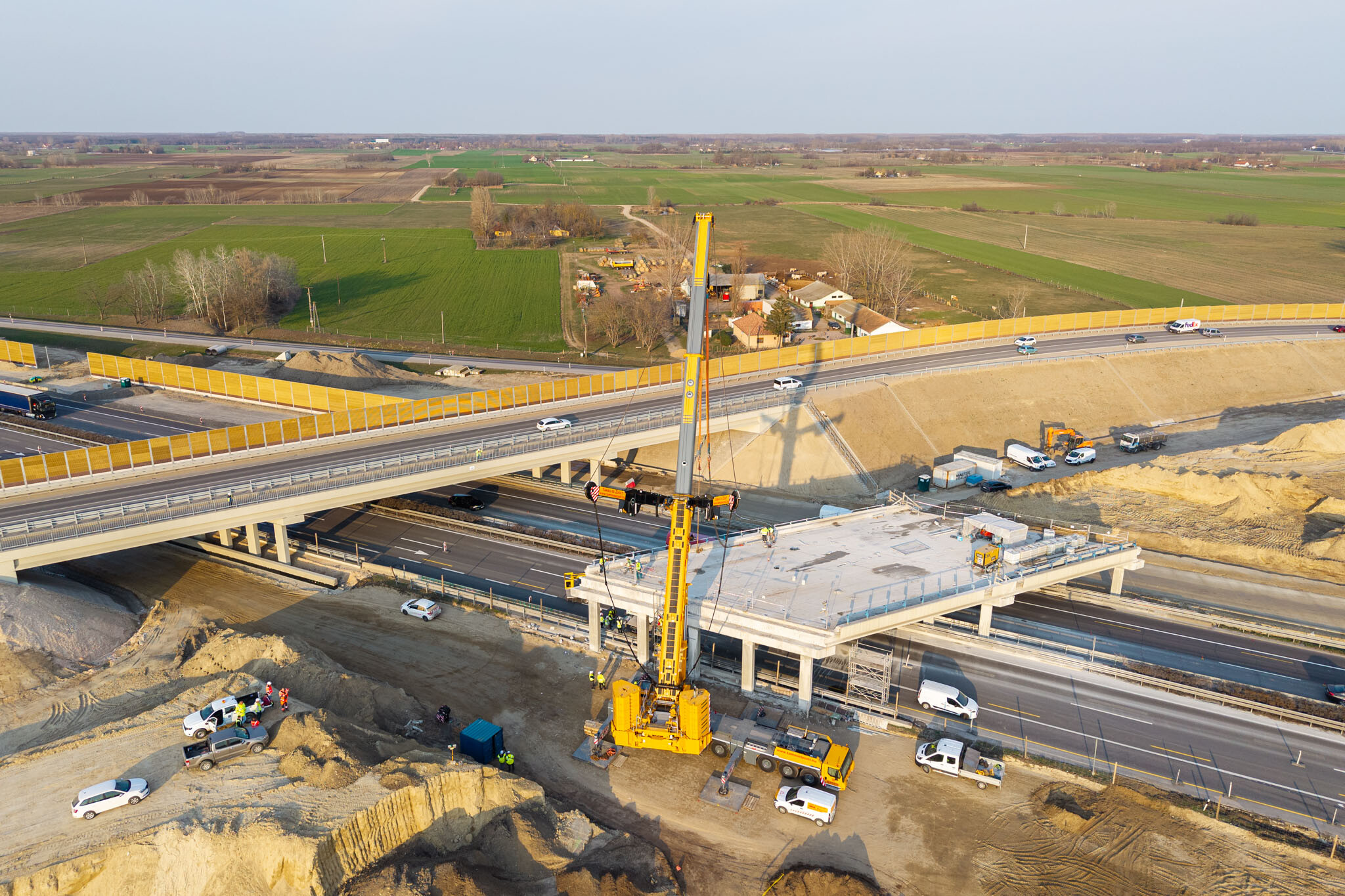 A gyors kivitelezésnek köszönhetően március 10-én még aznap elkészültek a hídgerendák leemelésével az M44-es gyorsforgalmi út fejlesztésének egyik kulcsmozzanatában. Lapunk rendszeresen beszámol az Építési és Közlekedési Minisztérium beruházásában és a Hódút Építő Kft. kivitelezésében épülő csomópontról, amely az M44-es, az M5-ös autópálya és az 5-ös főút találkozásánál jön létre Kecskemét térségében.