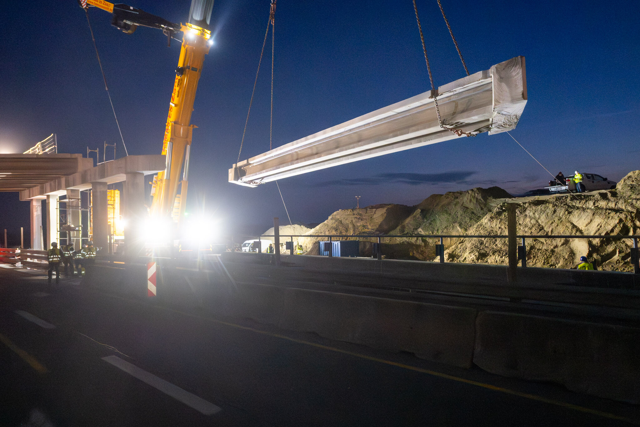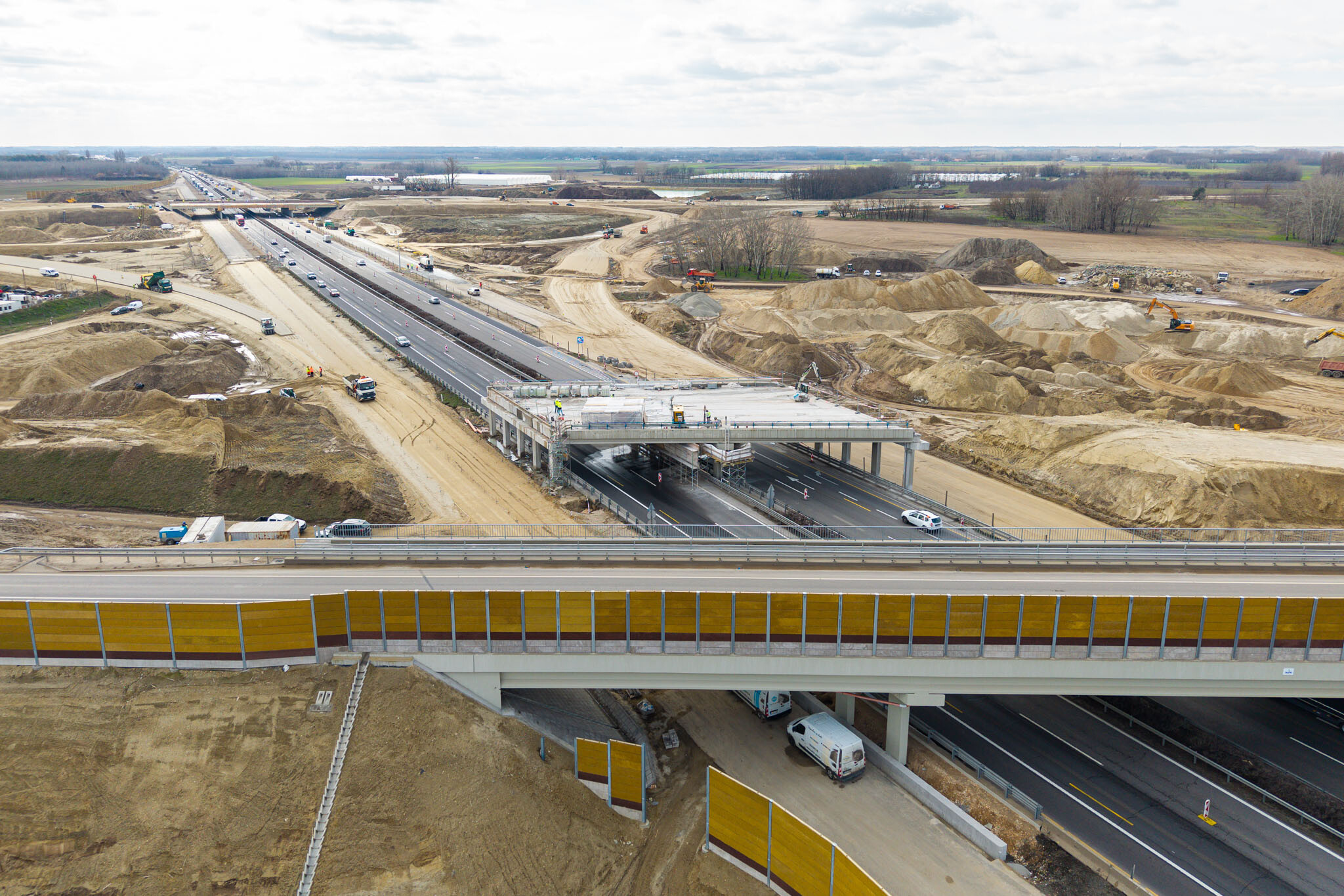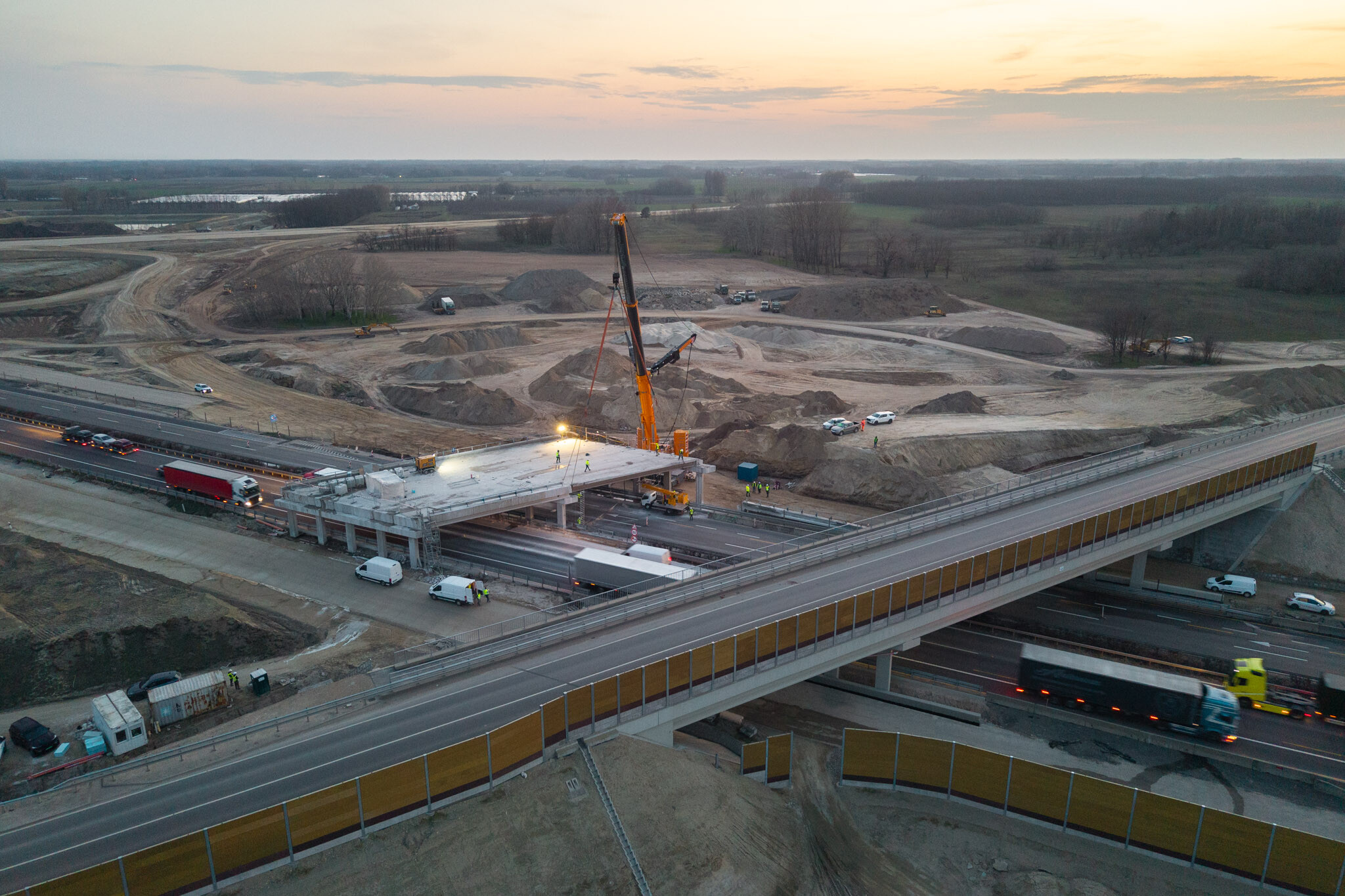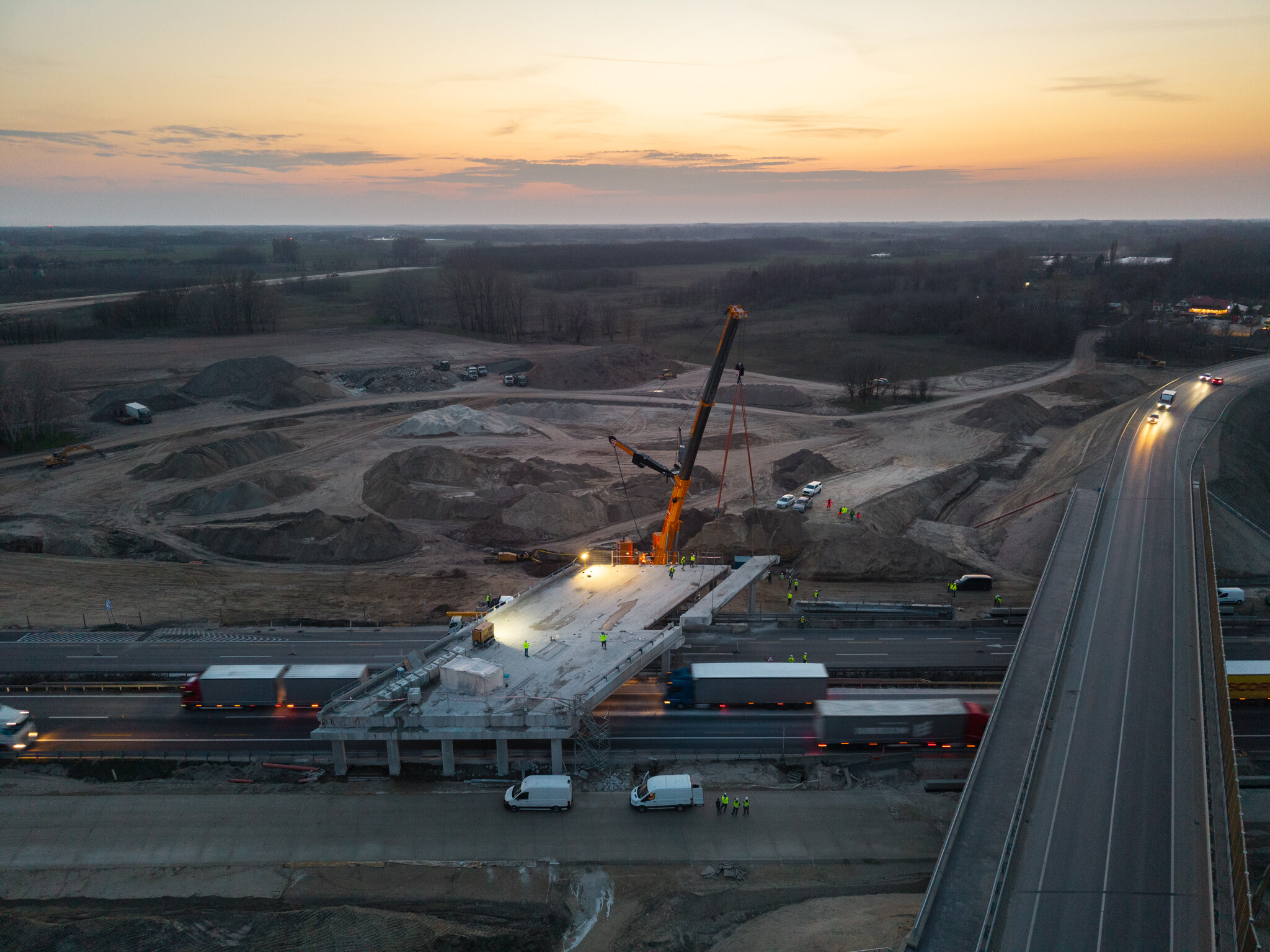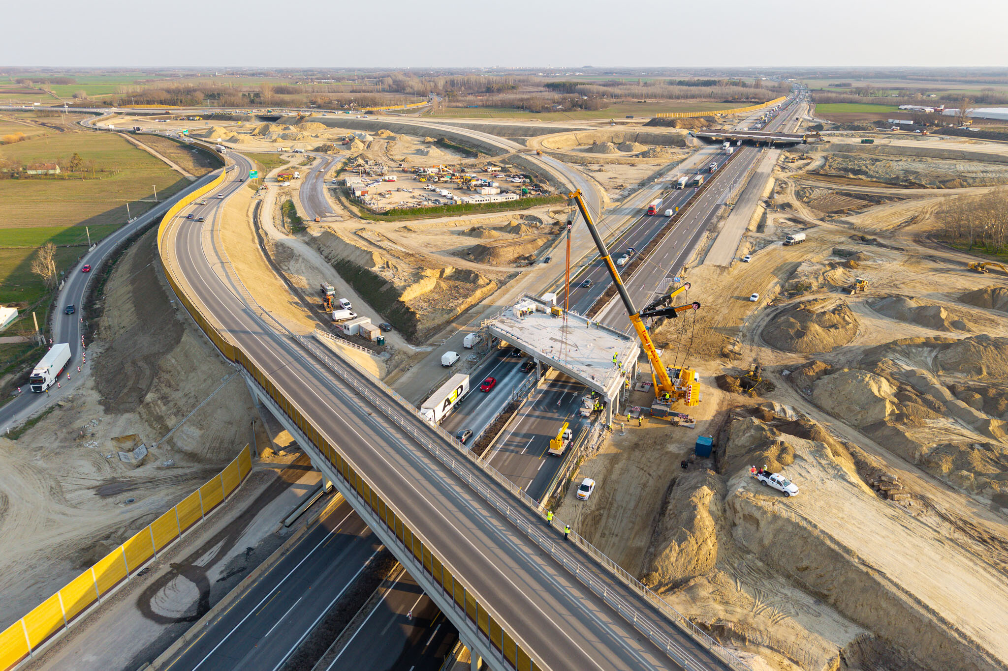A gyors kivitelezésnek köszönhetően március 10-én még aznap elkészültek a hídgerendák leemelésével az M44-es gyorsforgalmi út fejlesztésének egyik kulcsmozzanatában. Lapunk rendszeresen beszámol az Építési és Közlekedési Minisztérium beruházásában és a Hódút Építő Kft. kivitelezésében épülő csomópontról, amely az M44-es, az M5-ös autópálya és az 5-ös főút találkozásánál jön létre Kecskemét térségében.