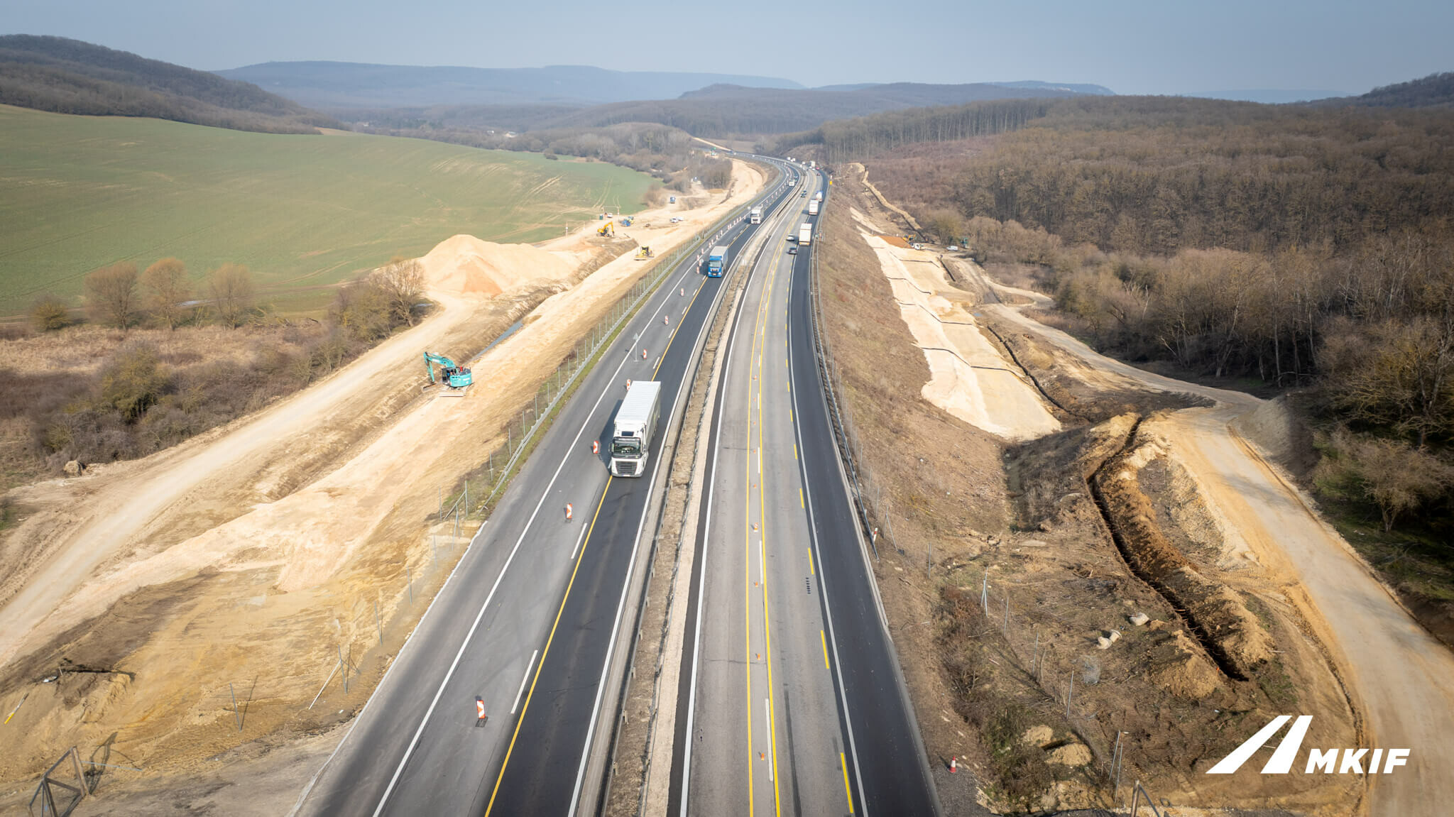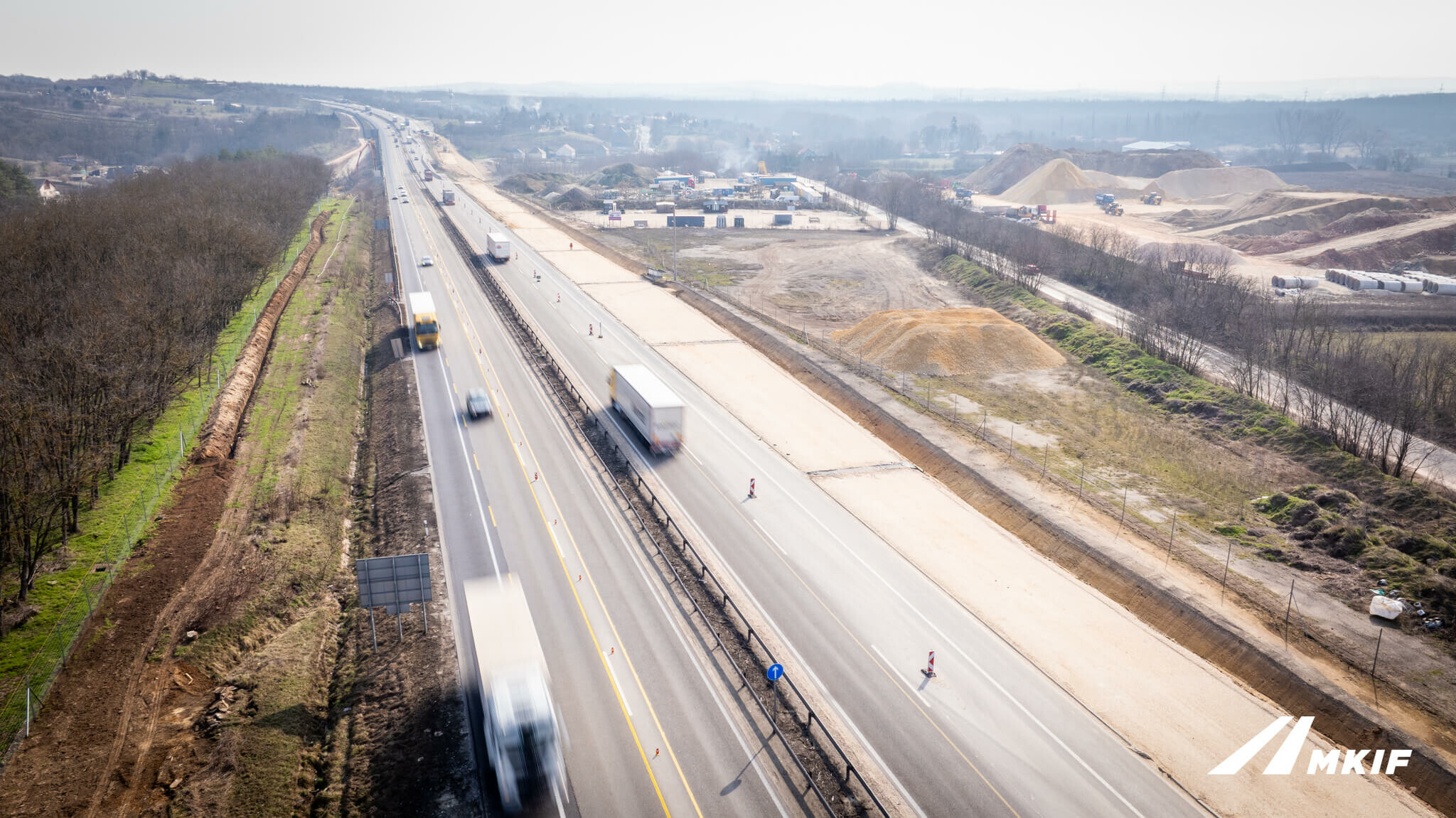 Látványos földmunkák zajlanak az M1-en, épül az új pálya alapja.