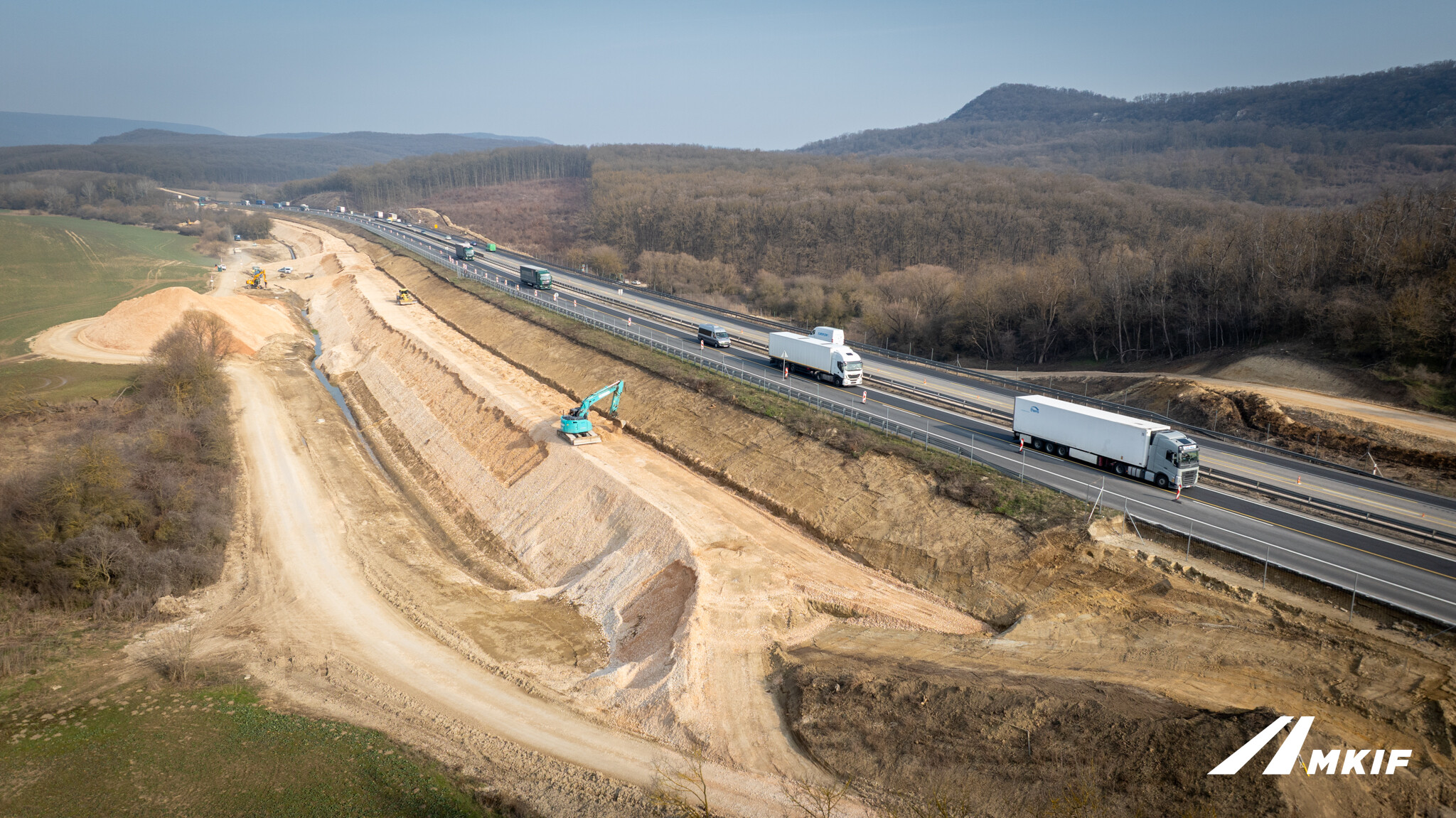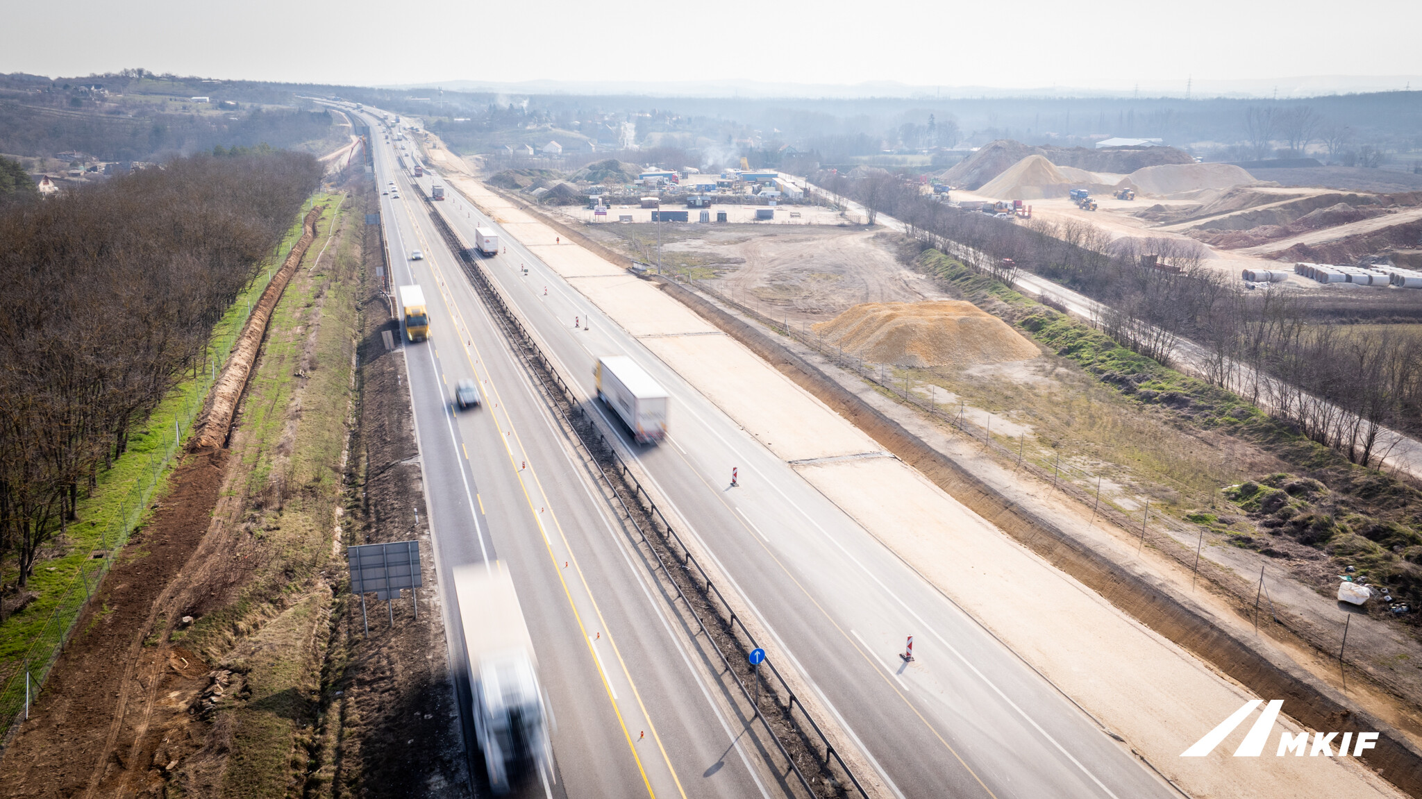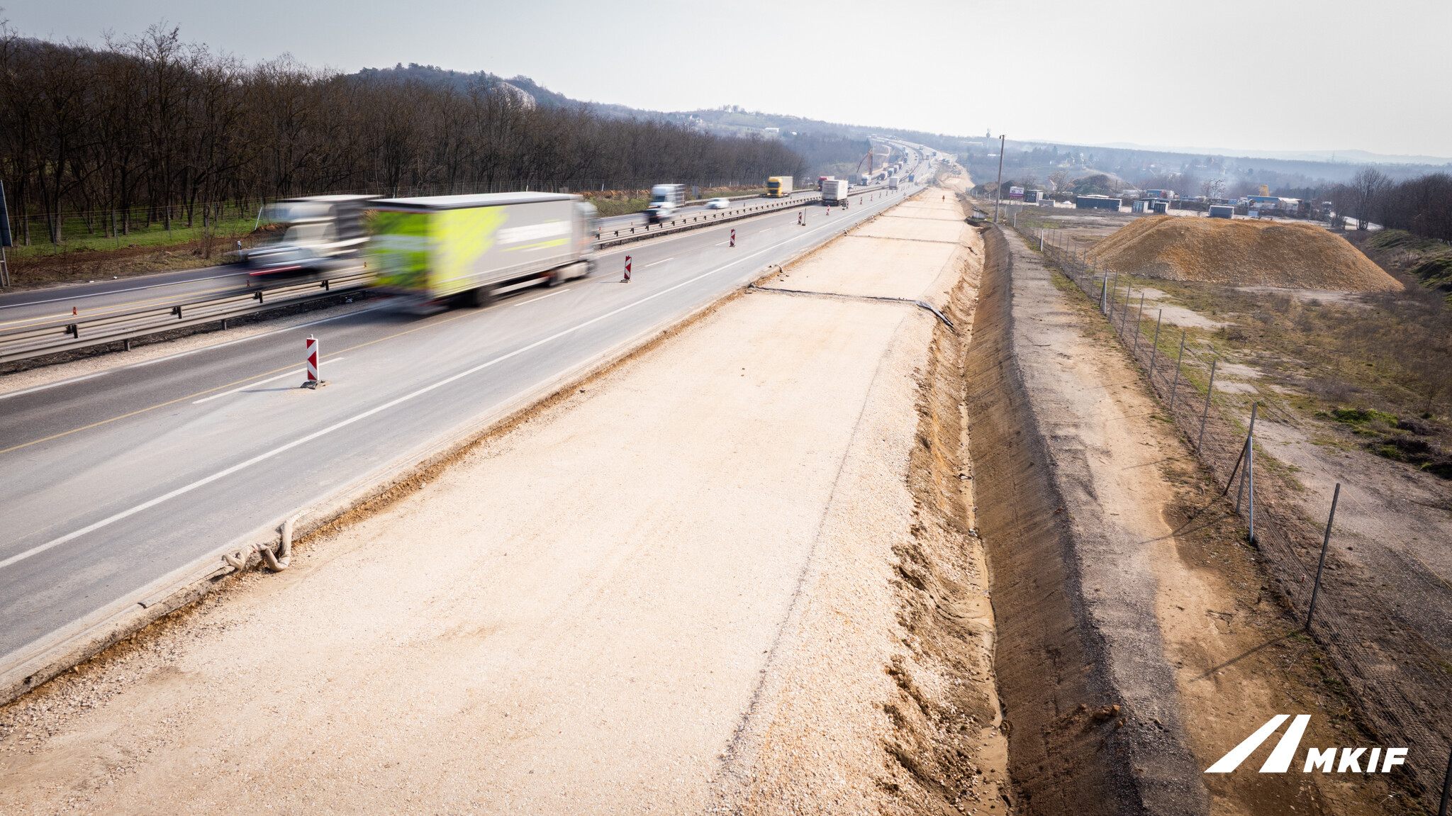 Az MKIF Magyar Koncessziós Infrastruktúra Fejlesztő Zrt. friss posztjában számolt be az M1-es autópálya bővítéséről: egyre több szakaszon jelennek meg a pálya mellett a már kiszélesített töltéstestek.