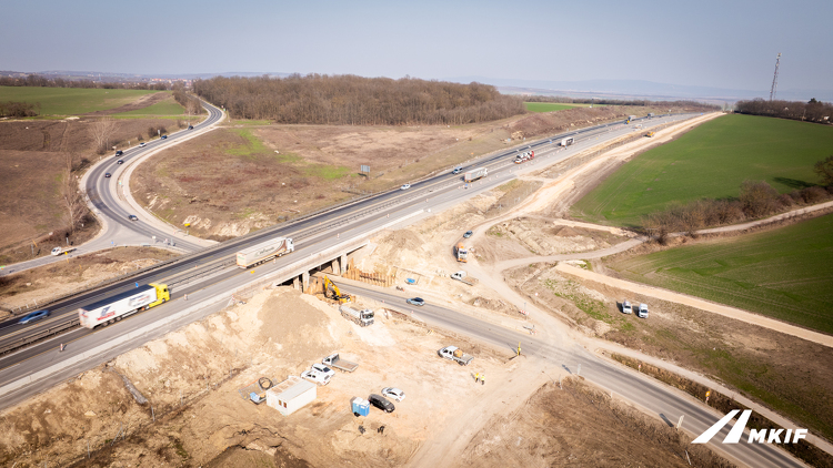 A kivitelezés következő fontos lépéseként a frissen kialakított töltések ideiglenes burkolatot kapnak. A tervek szerint 2026 őszén ide terelik át a forgalmat: a Budapest felé tartó pályaoldalon ideiglenesen kialakított 2×2 sávon halad majd a közlekedés.