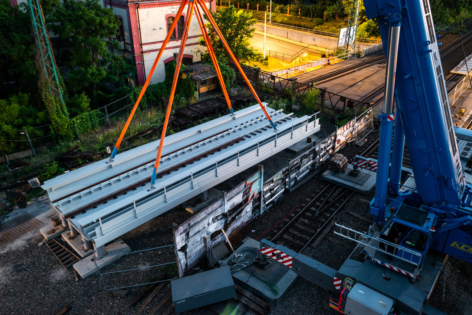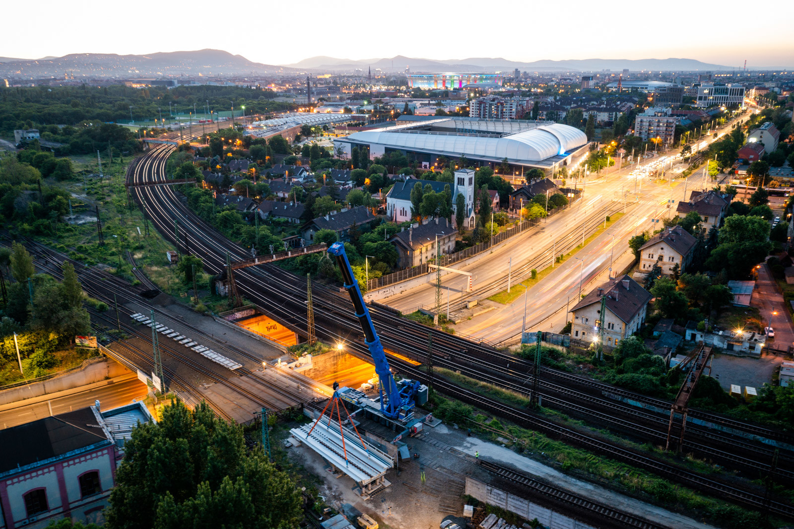 Június végén helyére emelték az új vasúti hidat a Könyves Kálmán körút és az 1-es villamos fölött – olvasható Vitézy Dávid, a Budapest Fejlesztési Központ (BFK) vezérigazgatójának Facebook bejegyzésében.