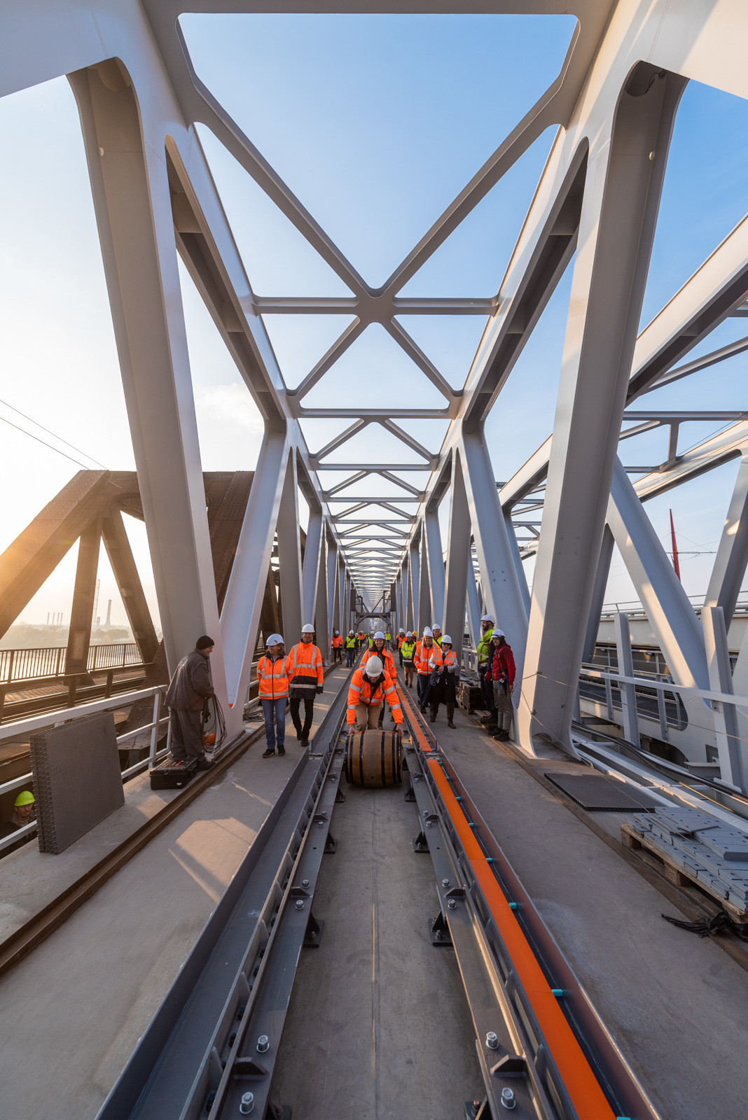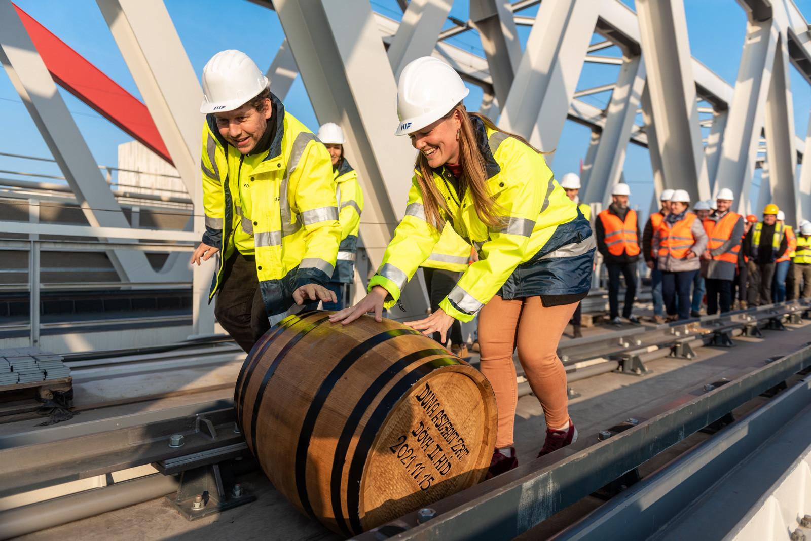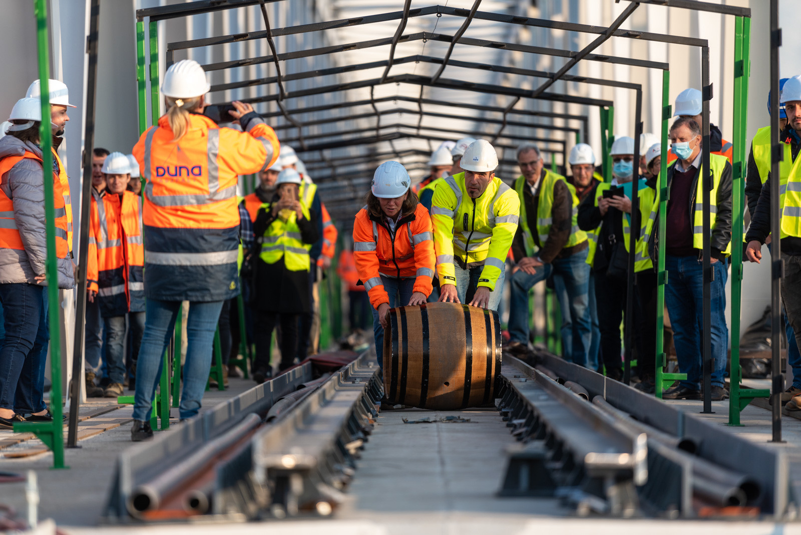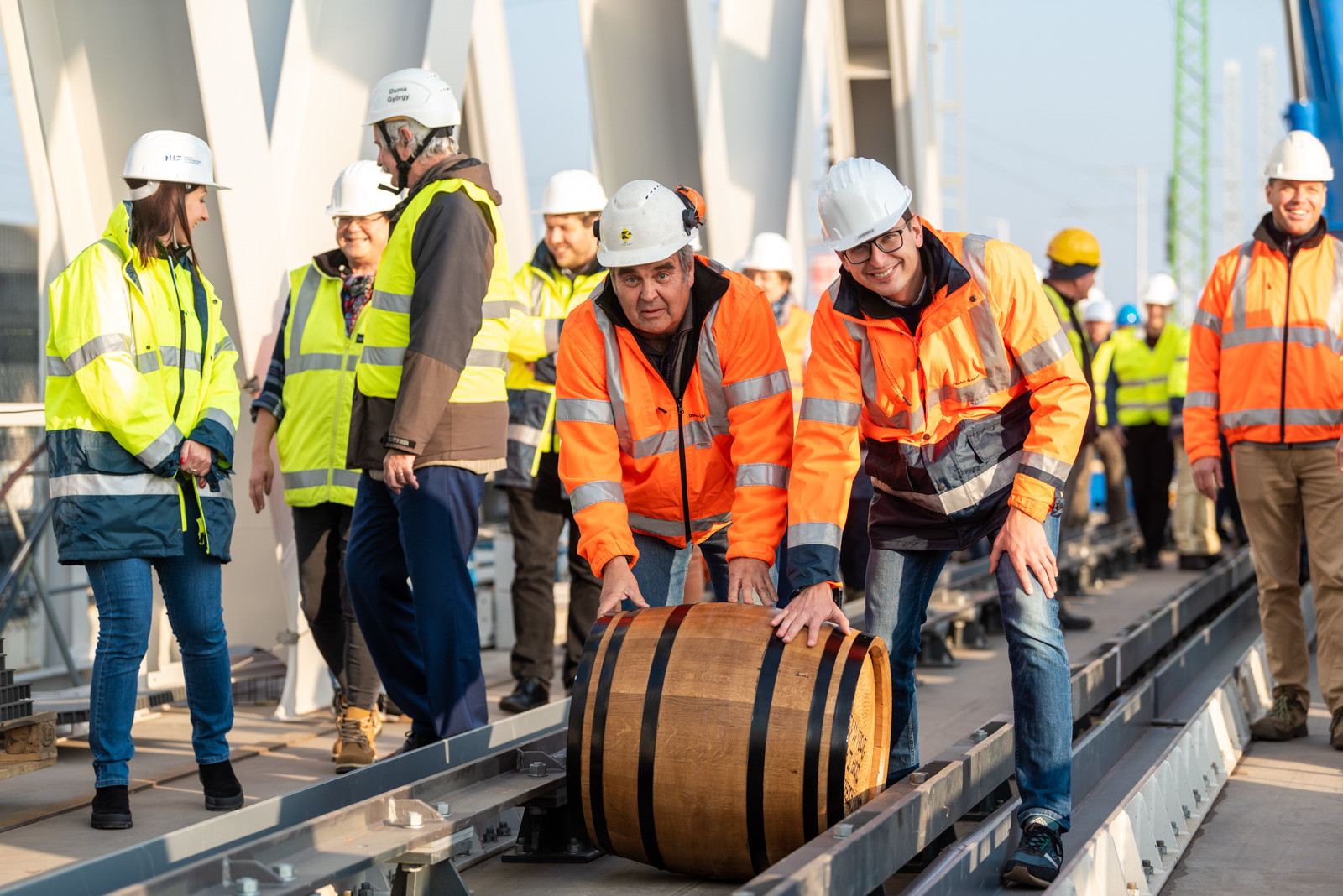 Nemrég számoltunk be arról, hogy látványosan halad a Rákóczi híd közvetlen szomszédságában lévő Déli összekötő vasúti híd projektje. Most újabb eseményről tudósíthatunk; hétfőn sor került a hídépítéseknél hagyományos hordógurításra is a DÖVH második elkészült hídján.