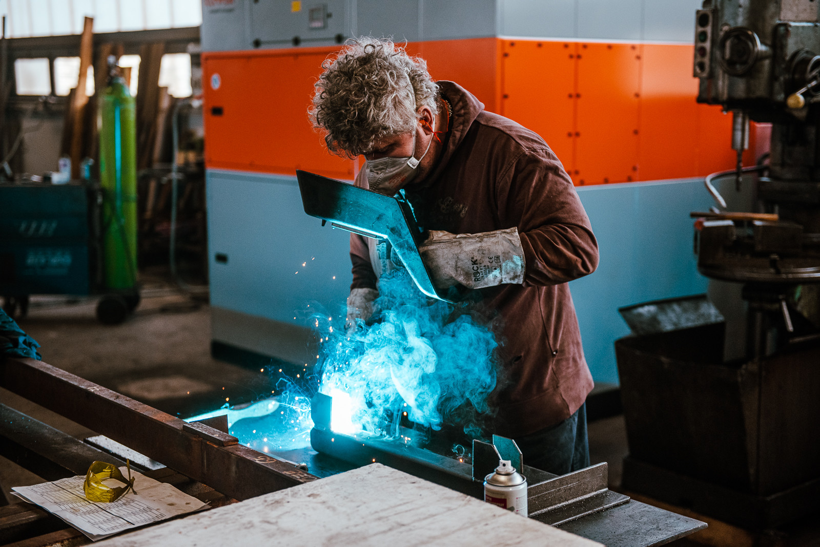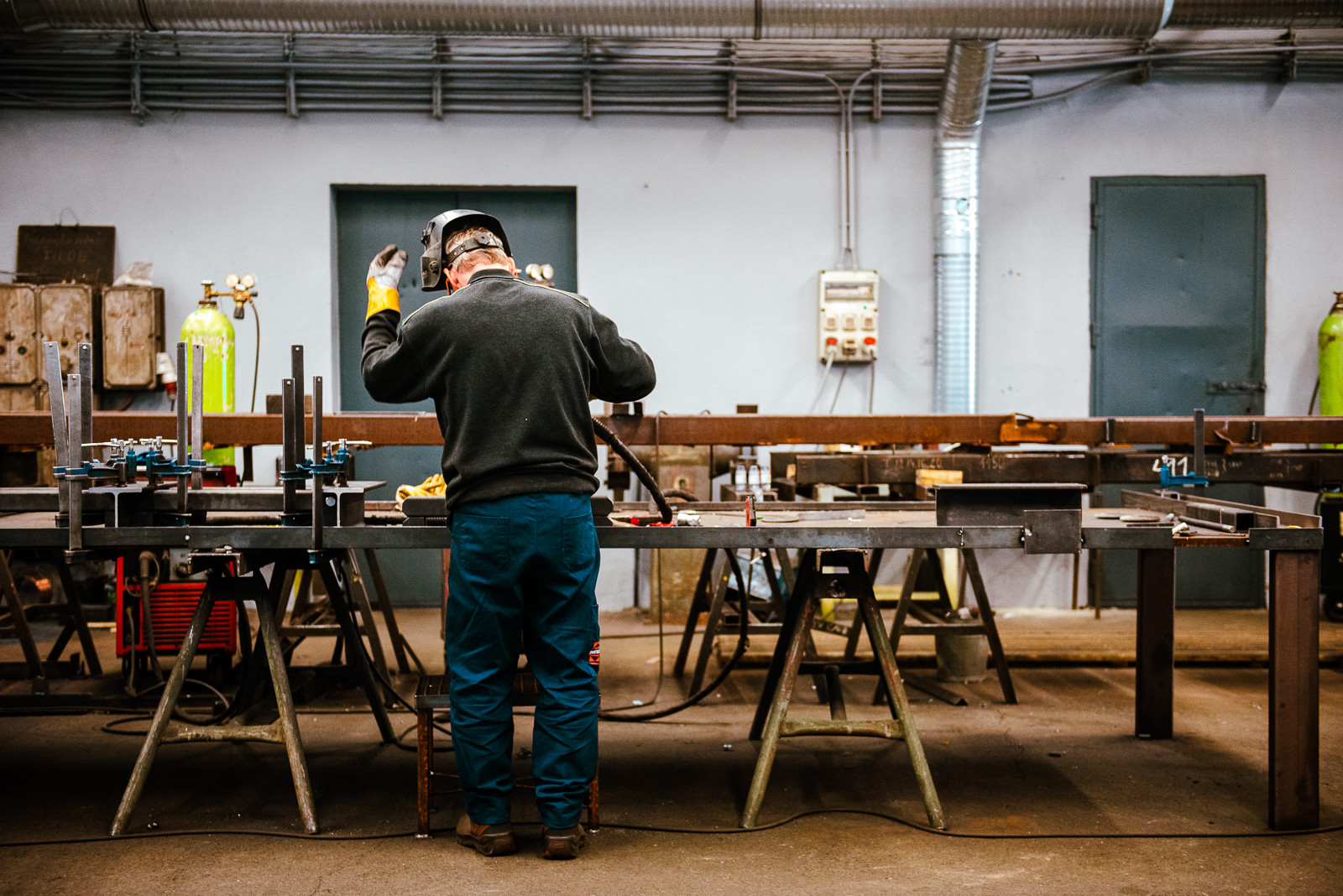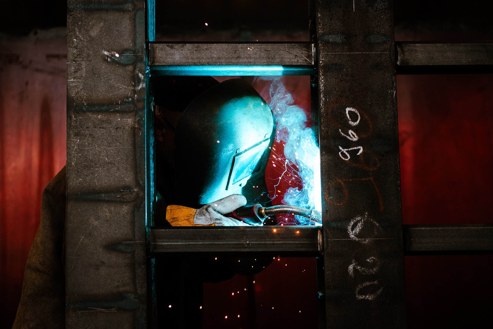 Majd az egyengetés és méretellenőrzés után belekerült az egyedi sablonba, ahol a függőleges és vízszintes elemeket, a zártszelvényeket, kereszttartókat rögzítették, beletették a terv szerinti méretben a merevítő bordákat. Következett az utolsó és egyben talán legfontosabb fázis: a hegesztés.