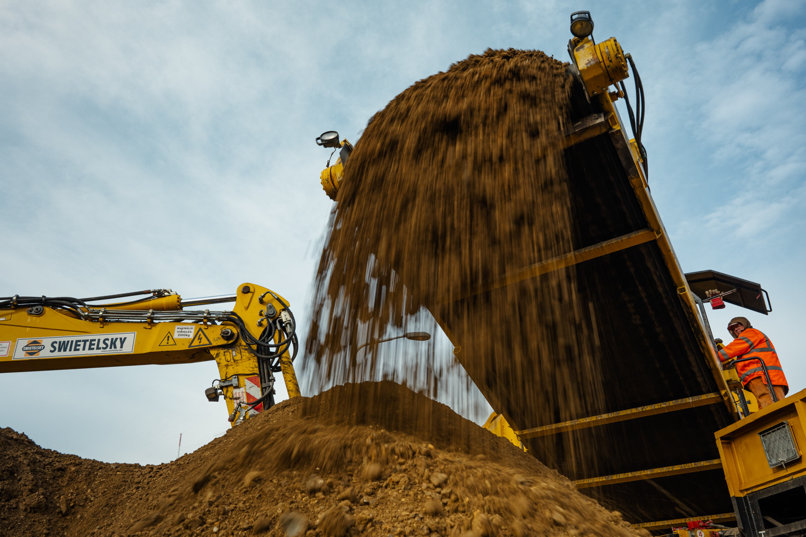 Ezután kotrók segítségével kialakították a terv szerinti földmű tükröt, és azt tömörítették.