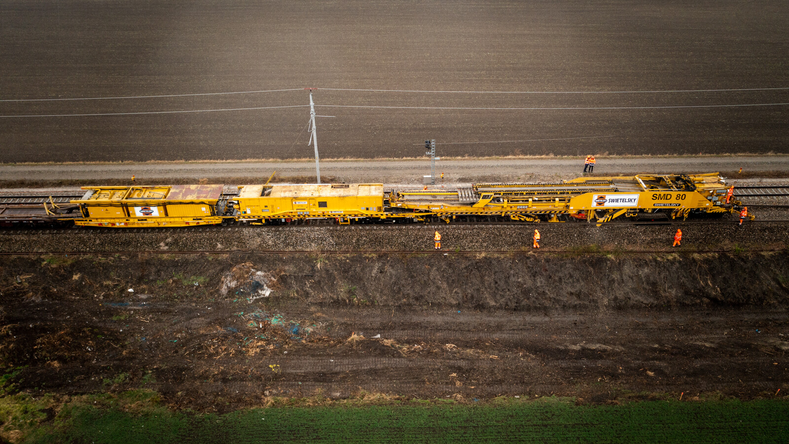 A munkát egy SMD 80 vágányátépítő nagygép segítségével végezték el. A jármű 60 méter hosszú és három féle üzemmódra képes: tud vágányt bontani, pályát átépíteni és új vágányt fektetni. A vágánybontás után a betonaljakat is elszállították az óriásgéphez kapcsolt vagonok segítségével. A teljes szerelvény hossza elérte a 450 métert.