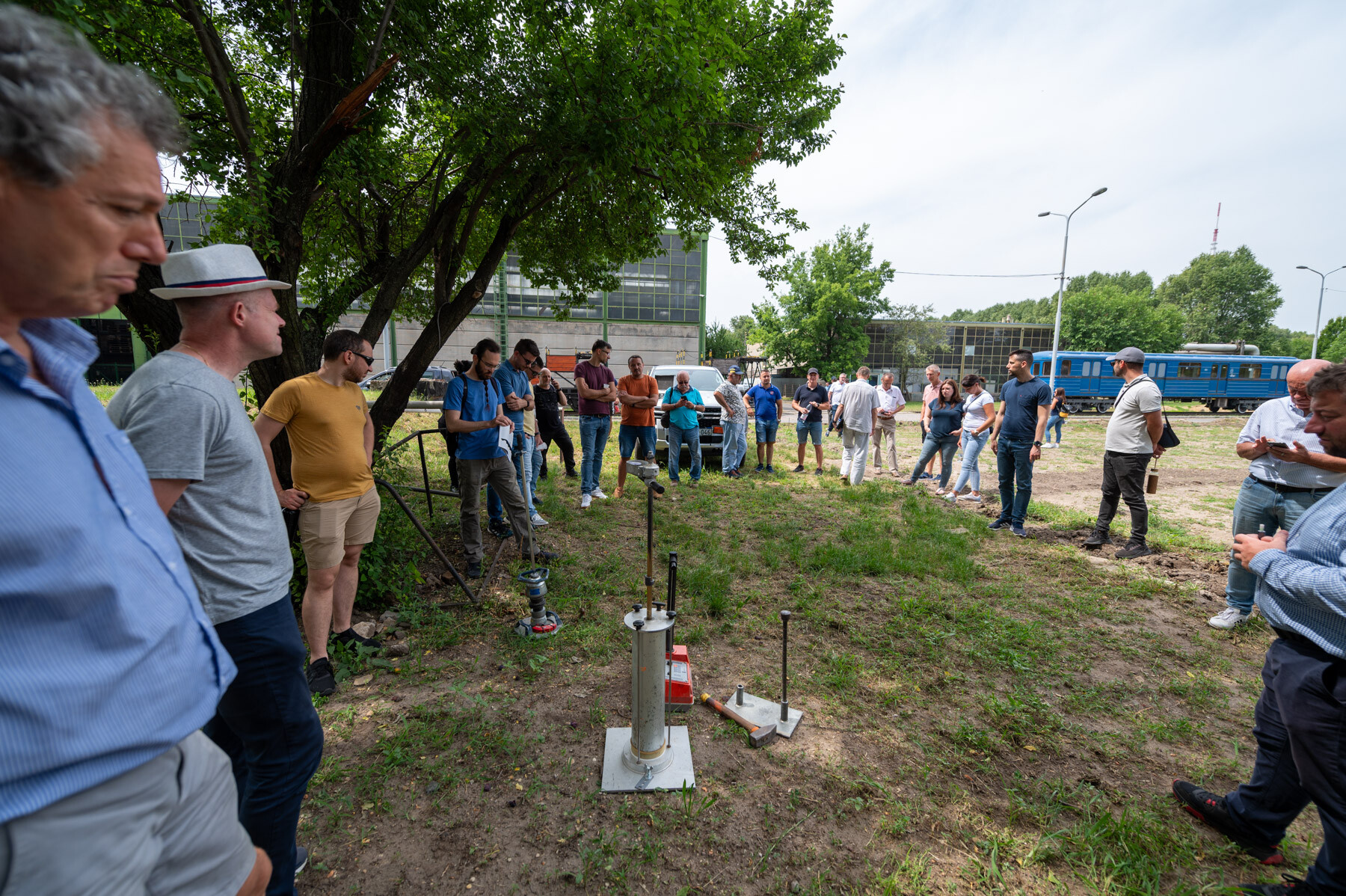 Ezt követően Nyári István (FUGRO Kft.) „Geotechnikai alépítményi mérések, vizsgálatok ismertetése” című előadásából ismerhette meg a hallgatóság az aktuális, gyakorlatcentrikus geotechnikai mérőműszereket és mérési módszereket, amelyeket ezt követően a terepen is kipróbálhattak az érdeklődők.