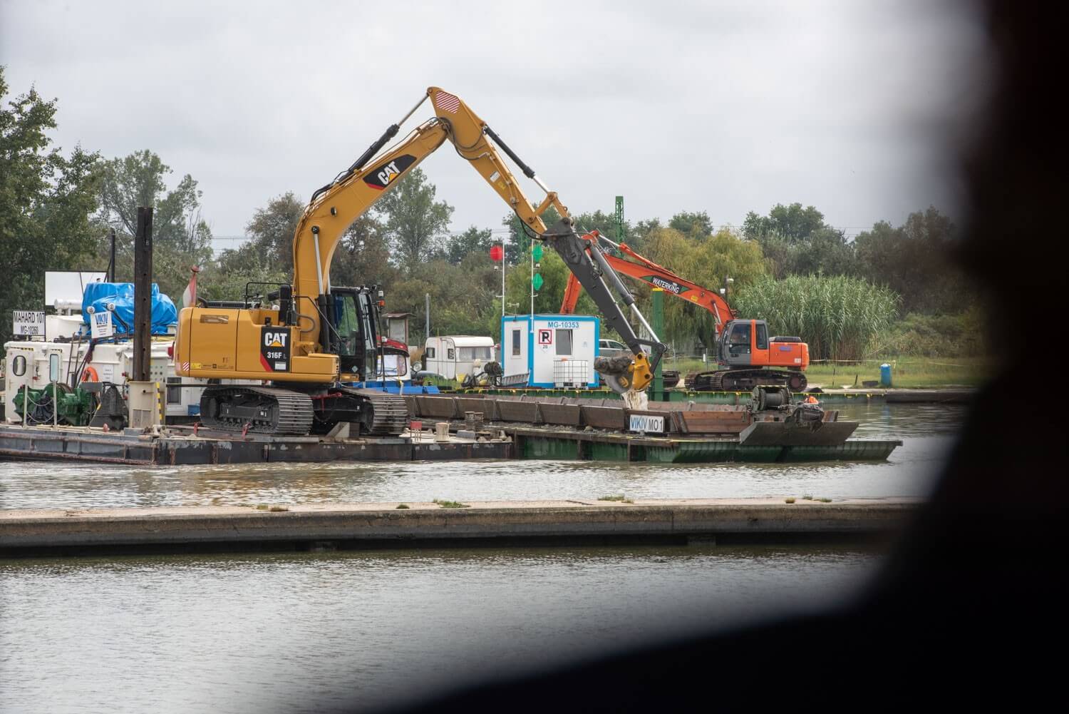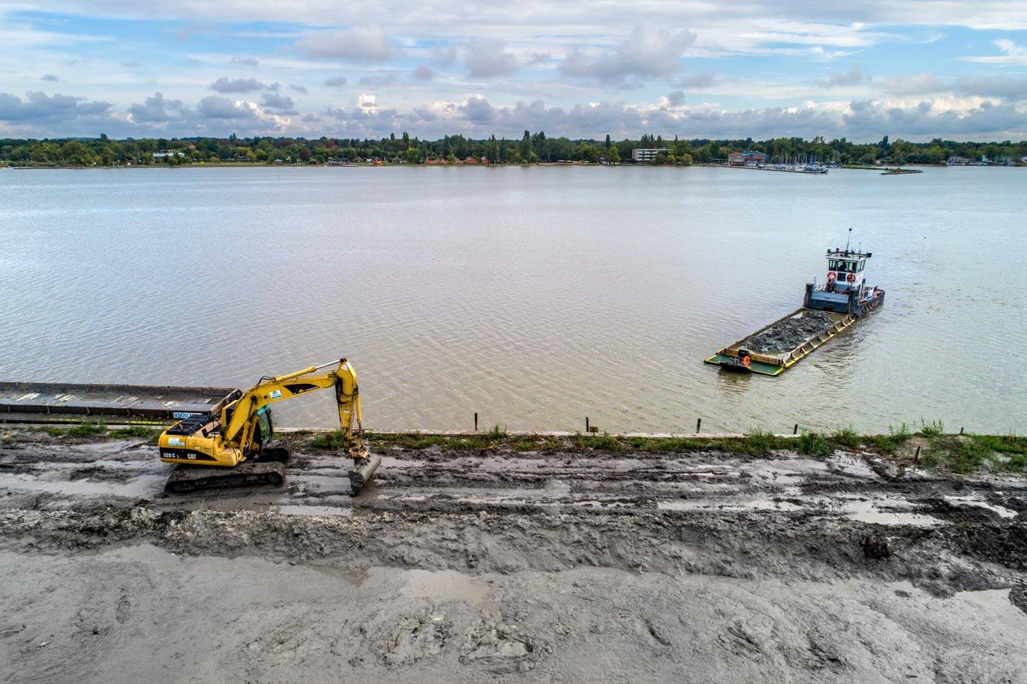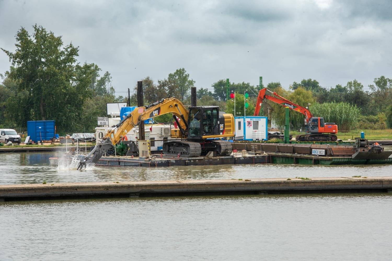 Megkezdődött a dinnyési MOHOSZ csónakkikötő kotrása is, mely során a kitermelt mederanyagot vízi úton szállítják lerakásra a Cserepes-szigeti zagytérre.