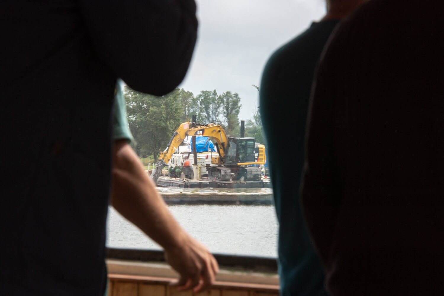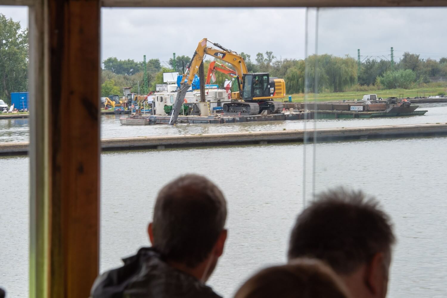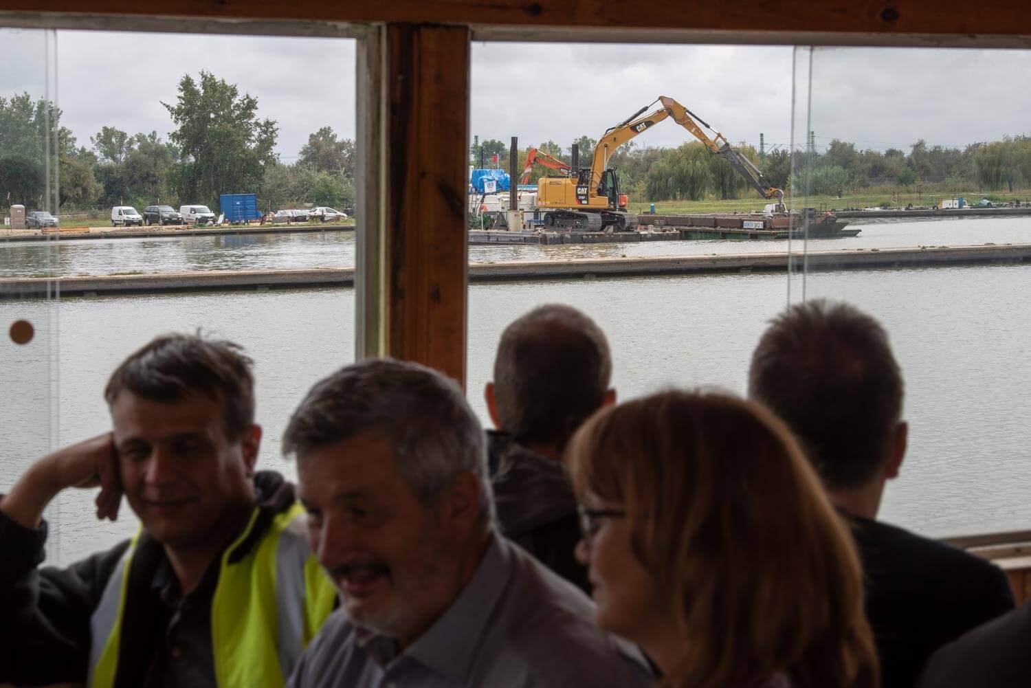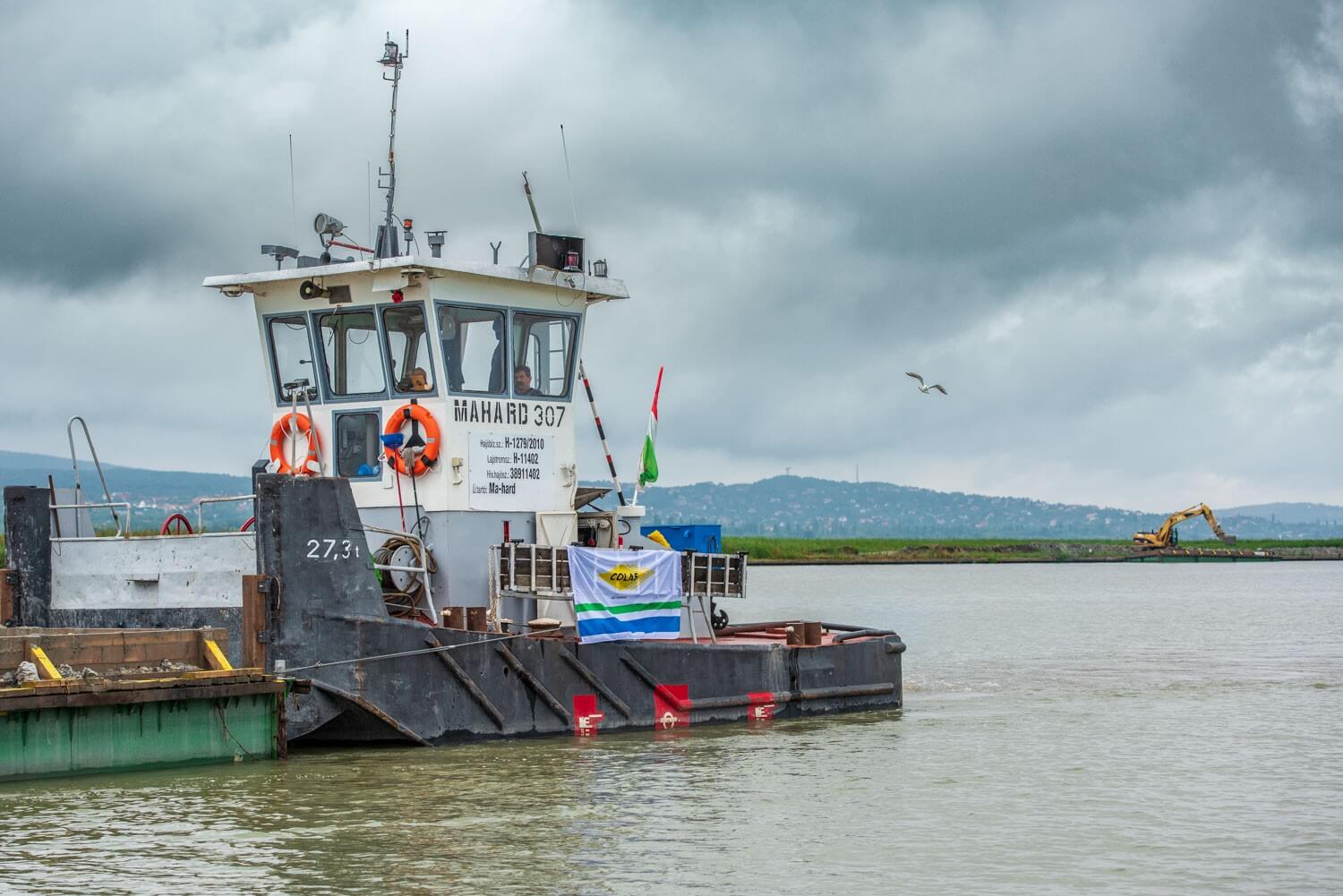 Megkezdődött a dinnyési MOHOSZ csónakkikötő kotrása is, mely során a kitermelt mederanyagot vízi úton szállítják lerakásra a Cserepes-szigeti zagytérre.