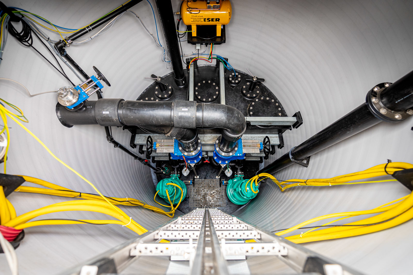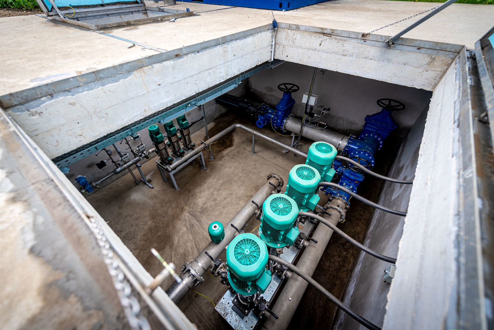 A beruházás másik különlegessége a szennyvízátemelő, vagyis az EMUport FS2700 típusú komplett szárazaknás kivitelű átemelő berendezés.