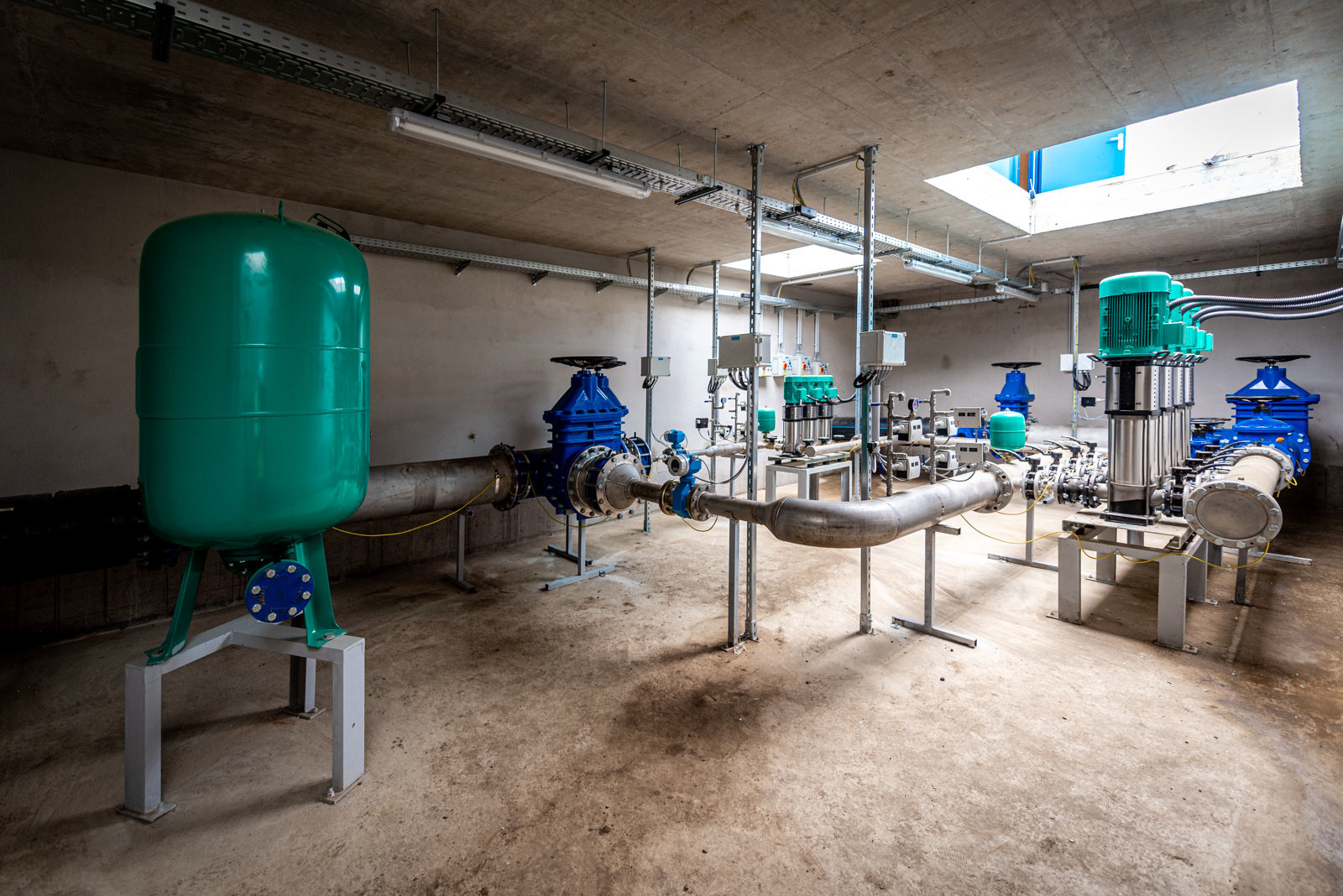 A nyomásfokozó berendezést egy 5×1,5×7,7 méter belméretű vasbeton aknában építették be. A beépítésre kerülő nyomásfokozó telepek