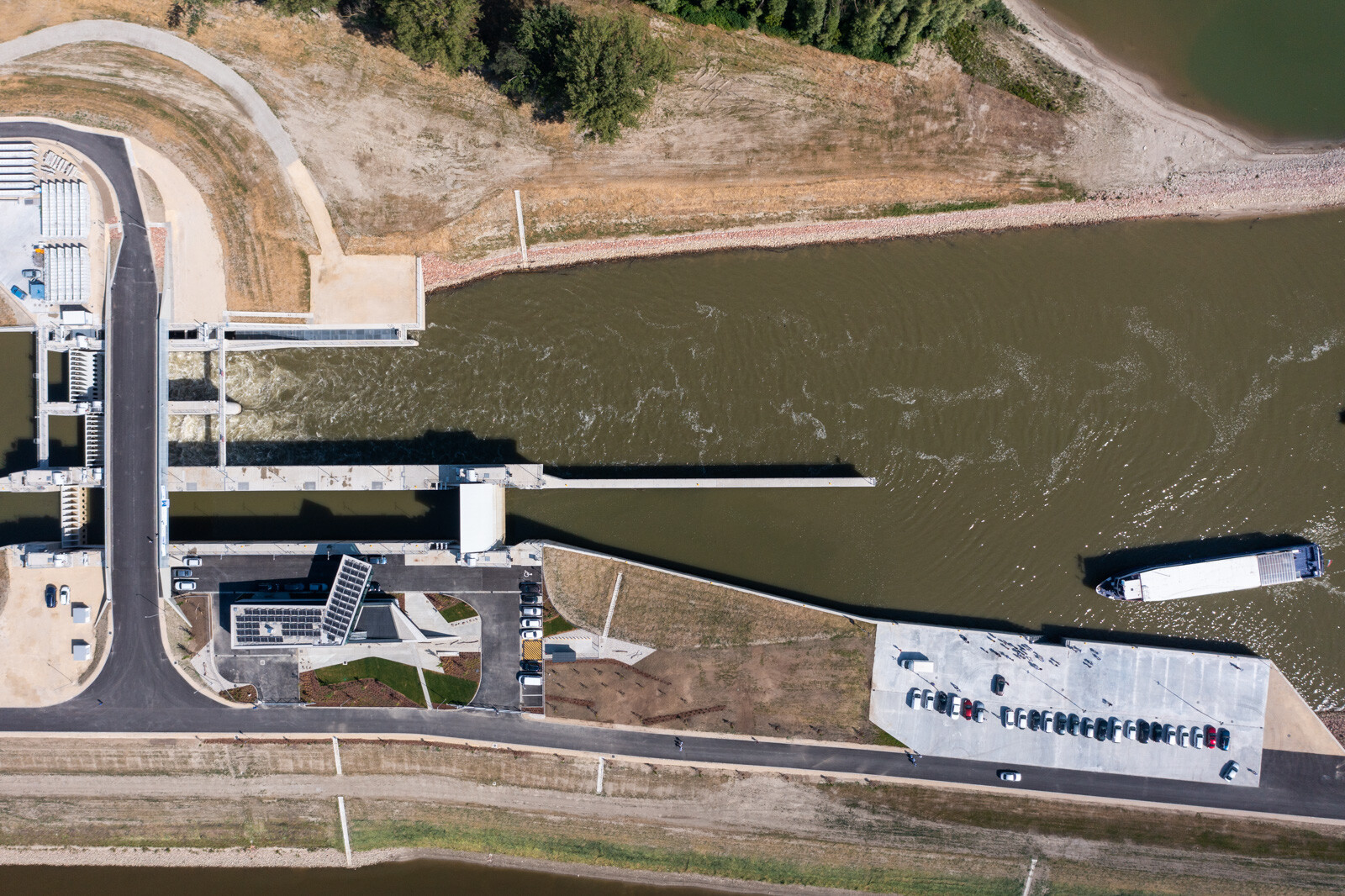 A projekt részeként az üzemelési, fenntartási munkák elvégzéséhez egy üzemi hidat is kialakítottak a műtárgy fölött, valamint egy kétszintes kezelőépület is létesült a hajózsilip mellett. A vízi turistákra való tekintettel a kajakok, kenuk kézi átemelési lehetőségének megteremtésére csónakátemelő rámpákat és sólyákat alakítottak ki.