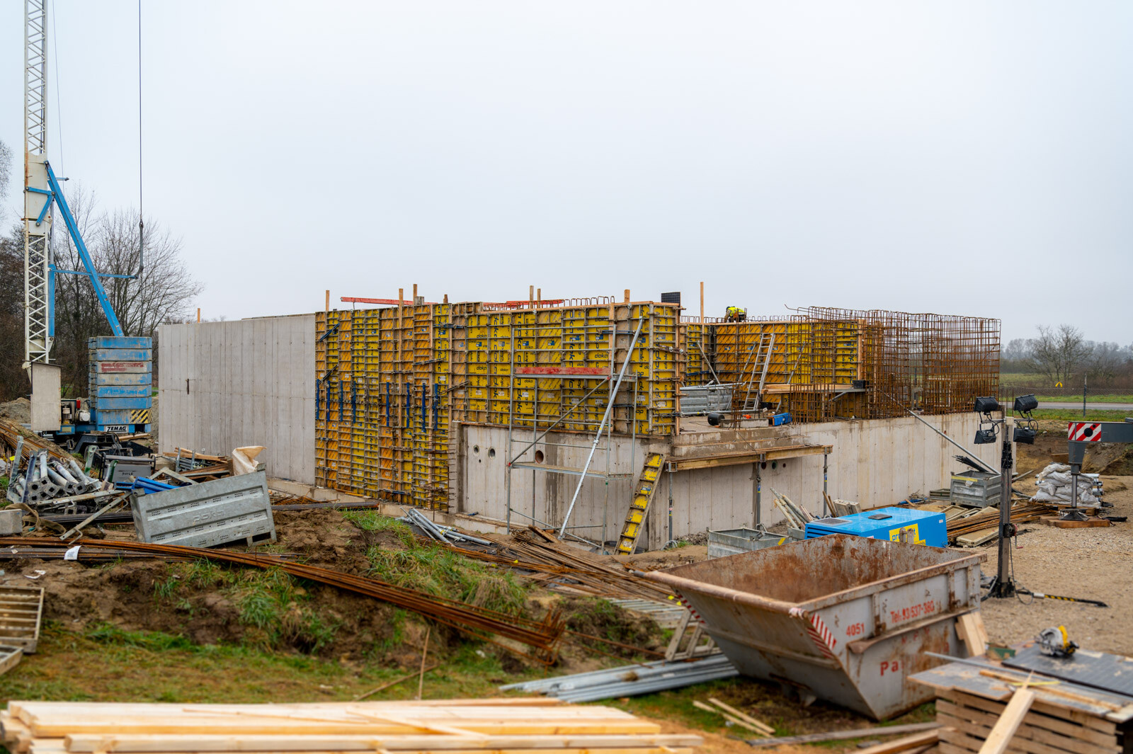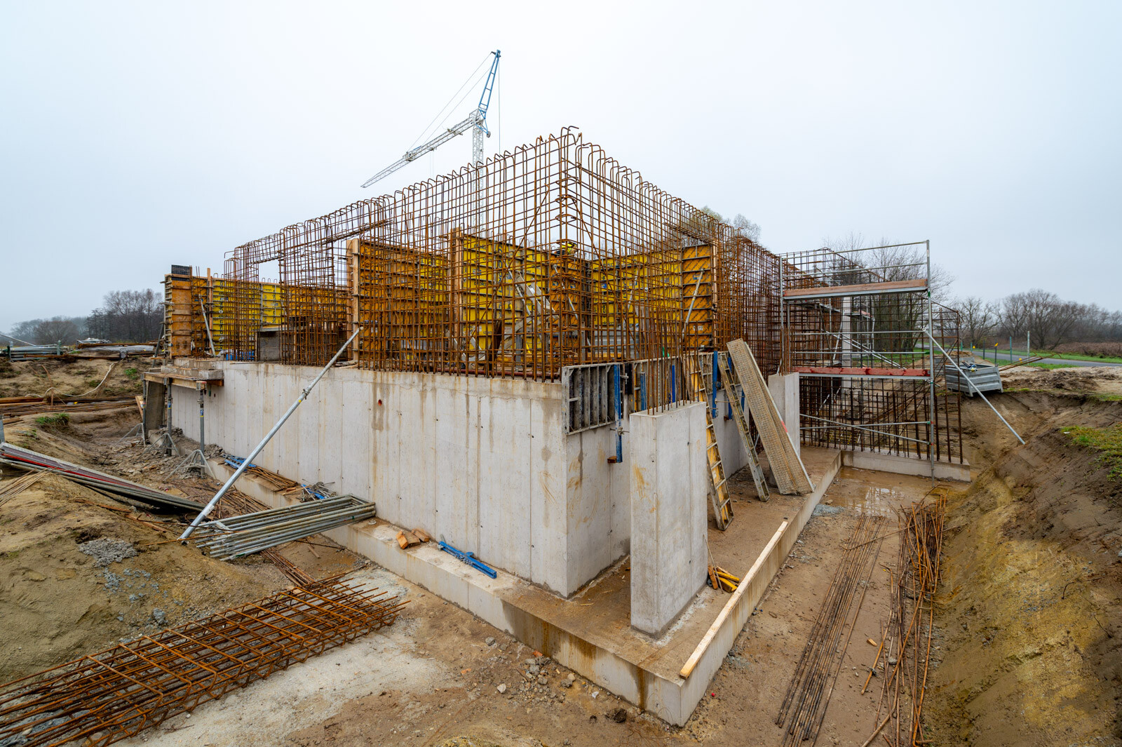 Gelsén - a műtárgy megépítését követően - a szociális épület szerkezeti munkái kezdődnek, párhuzamosan a technológiai gépészeti szerelésekkel. Majd a villamos- és irányítástechnika telepítésével foglalkoznak.