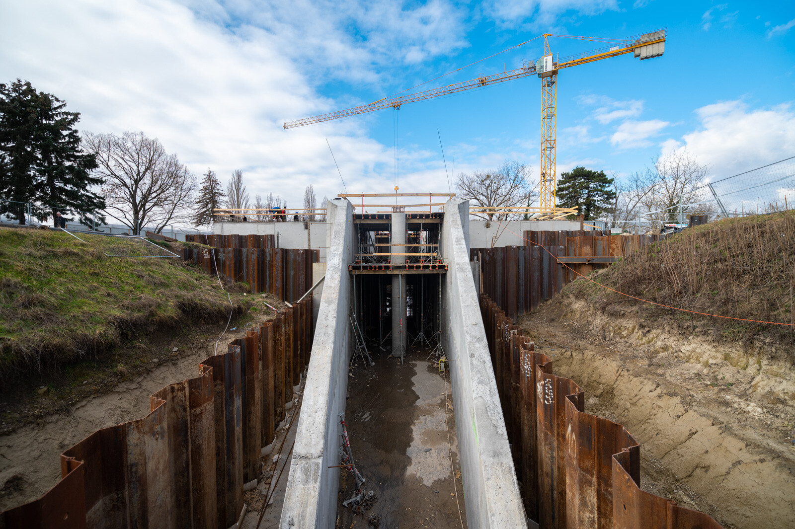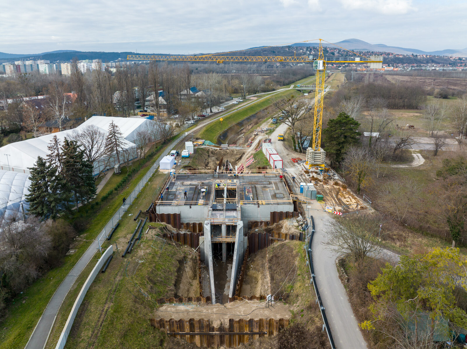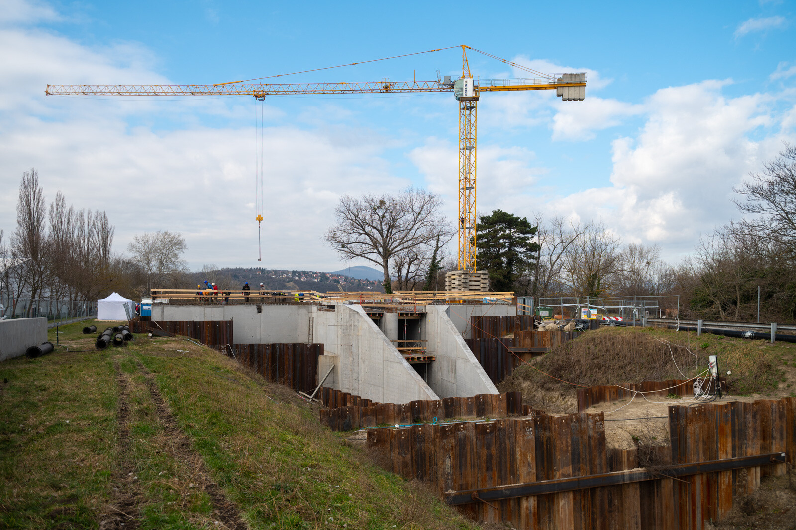 A szerdai sajtóeseményen nyilvánosságra hozott információk szerint a projektben már elkészült az árvízkapu alaplemeze, megkezdődött a felmenő szerkezetek építése. A közbenső födém betonozási munkái befejeződtek, jelenleg a zárófödém vasszerelési munkái folynak. Ezzel egy időben készül az üzemi híd is.