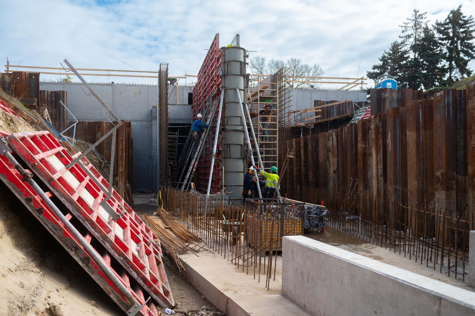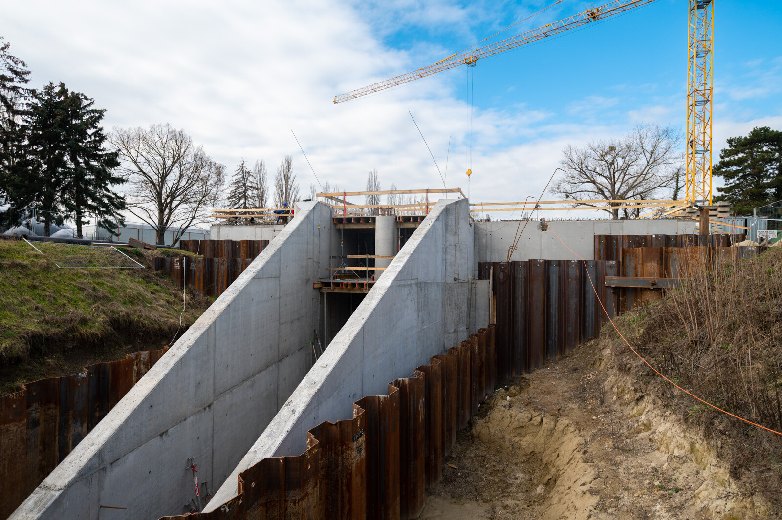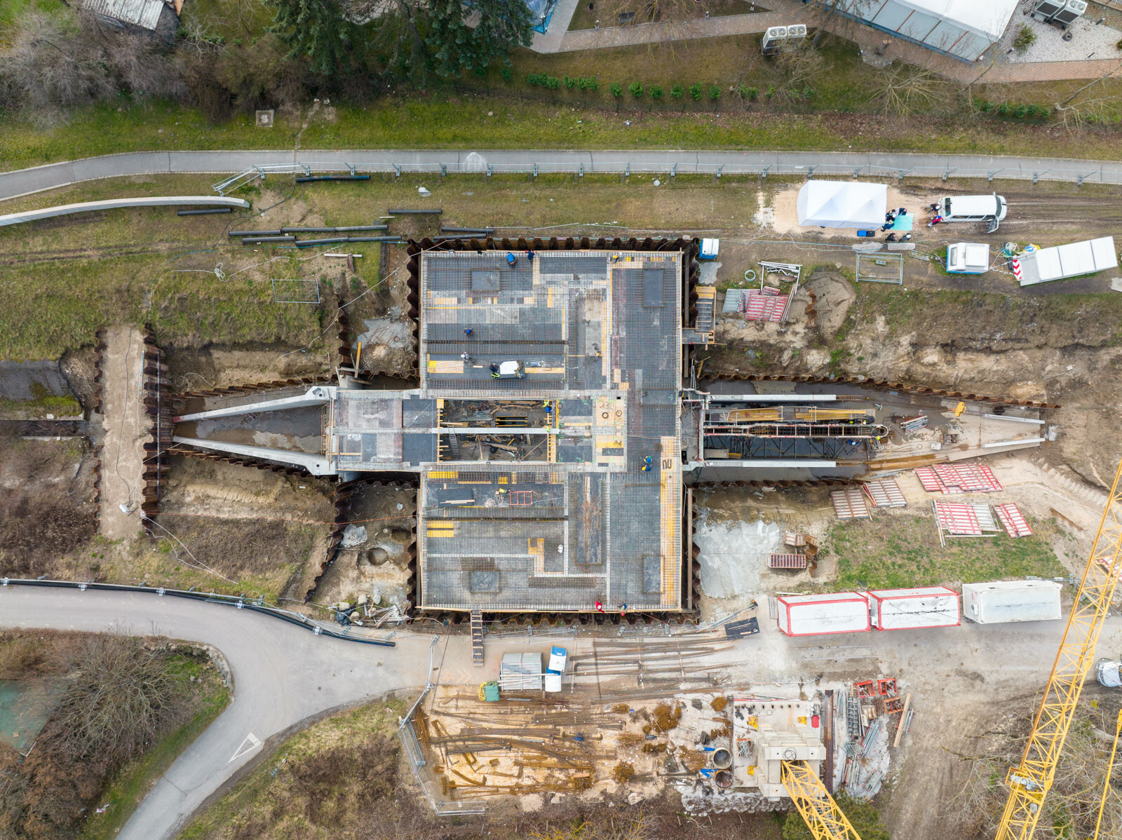 A szerdai sajtóeseményen nyilvánosságra hozott információk szerint a projektben már elkészült az árvízkapu alaplemeze, megkezdődött a felmenő szerkezetek építése. A közbenső födém betonozási munkái befejeződtek, jelenleg a zárófödém vasszerelési munkái folynak. Ezzel egy időben készül az üzemi híd is.