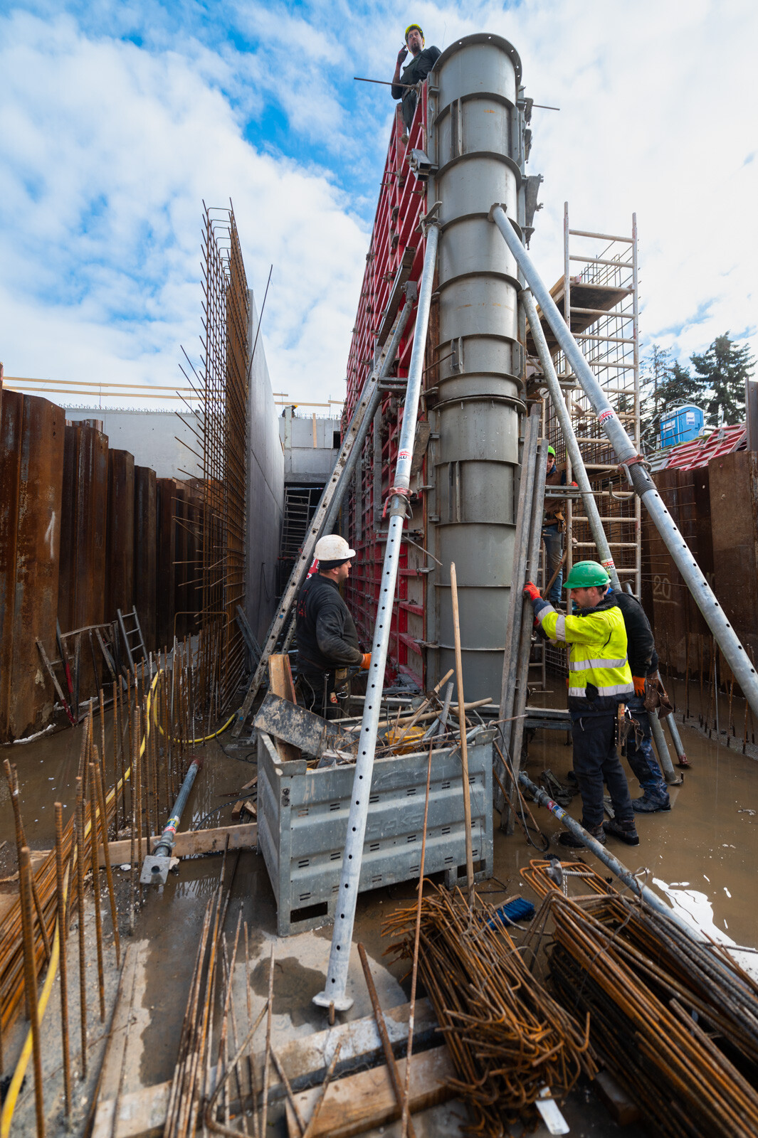 A beruházás az Aqua-General Kft. generálkivitelezésében a PM-art deco Kft. alvállalkozói részvételével zajlik, a szerkezetépítési feladatokat a CLC-Construct Kft. látja el. A vasbeton műtárgy valamennyi zsaluzási feladatának tervezését, a zsaluanyagok szállítását a MEVA Zsalurendszerek Zrt. végezte el.
