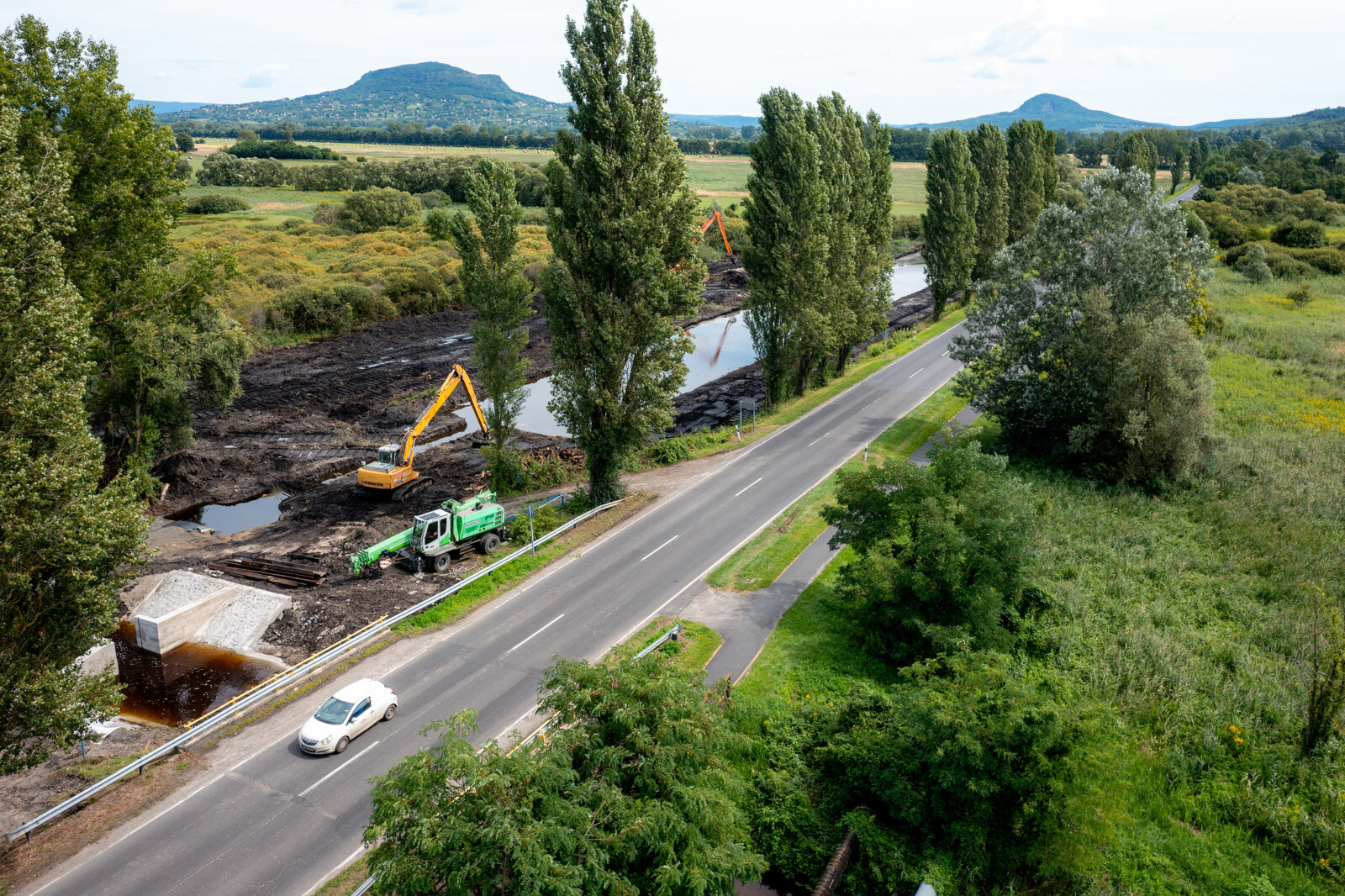 „A Lesence-szűrőmezőn történő munkavégzés igen nehéz feladat elé állított bennünket, mivel a terület anyaga szinte teljes egészében – a kevés agyagtól eltekintve – tőzeg. Ebben a „közegben” csak speciális, széles lánctalpú munkagépekkel tudunk dolgozni” – részletezte a kihívásokat Fischer László.