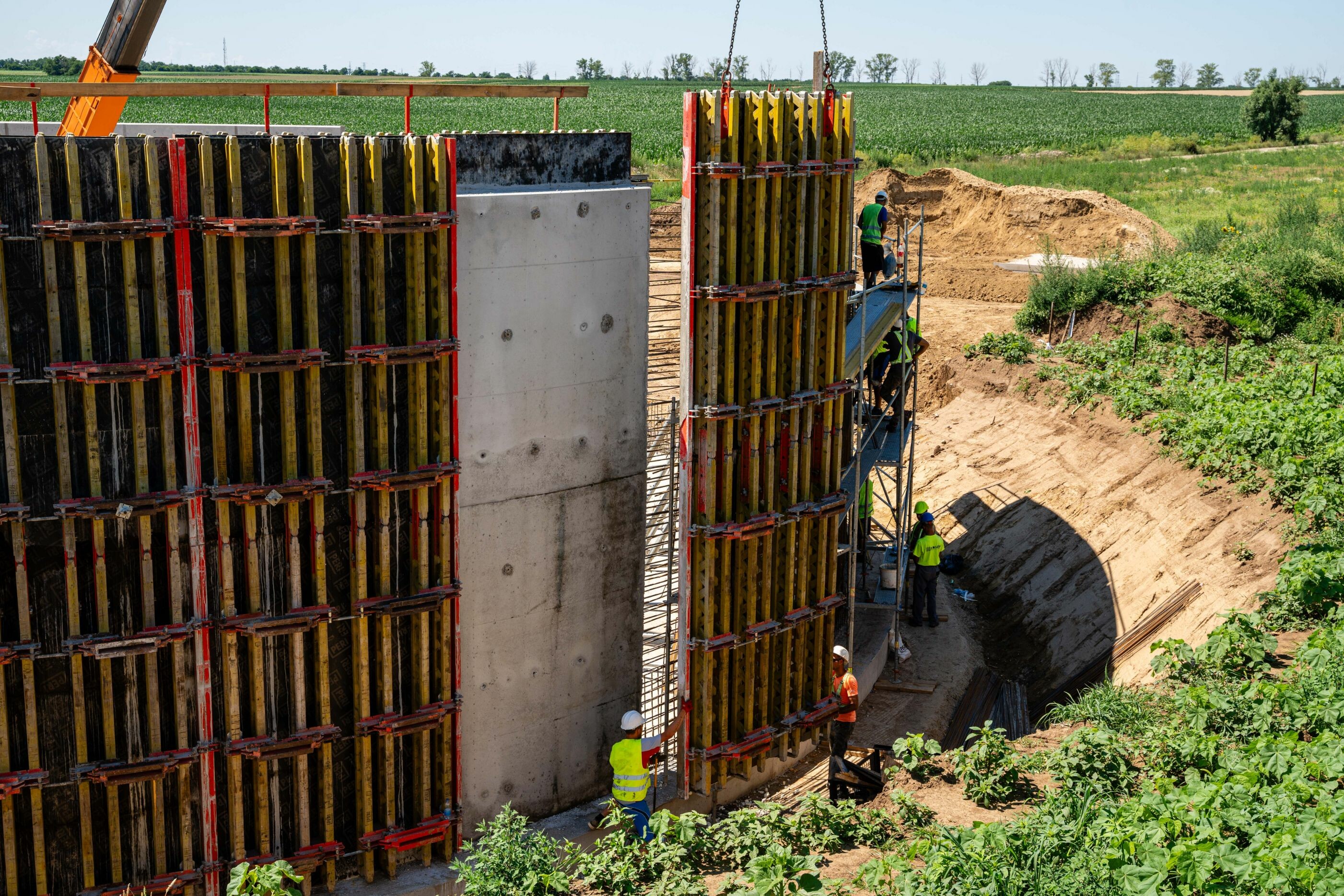 A kör alaprajzú vasbeton falak kialakításánál fontos szerepet játszott, hogy olyan falzsalurendszert alkalmazzanak, mely kevés átkötési hellyel operál, és amellyel a fal minimális munkahézag közbeiktatásával megépíthető, ezzel is biztosítva a megfelelő vízzárást, ami kiemelt elvárás.