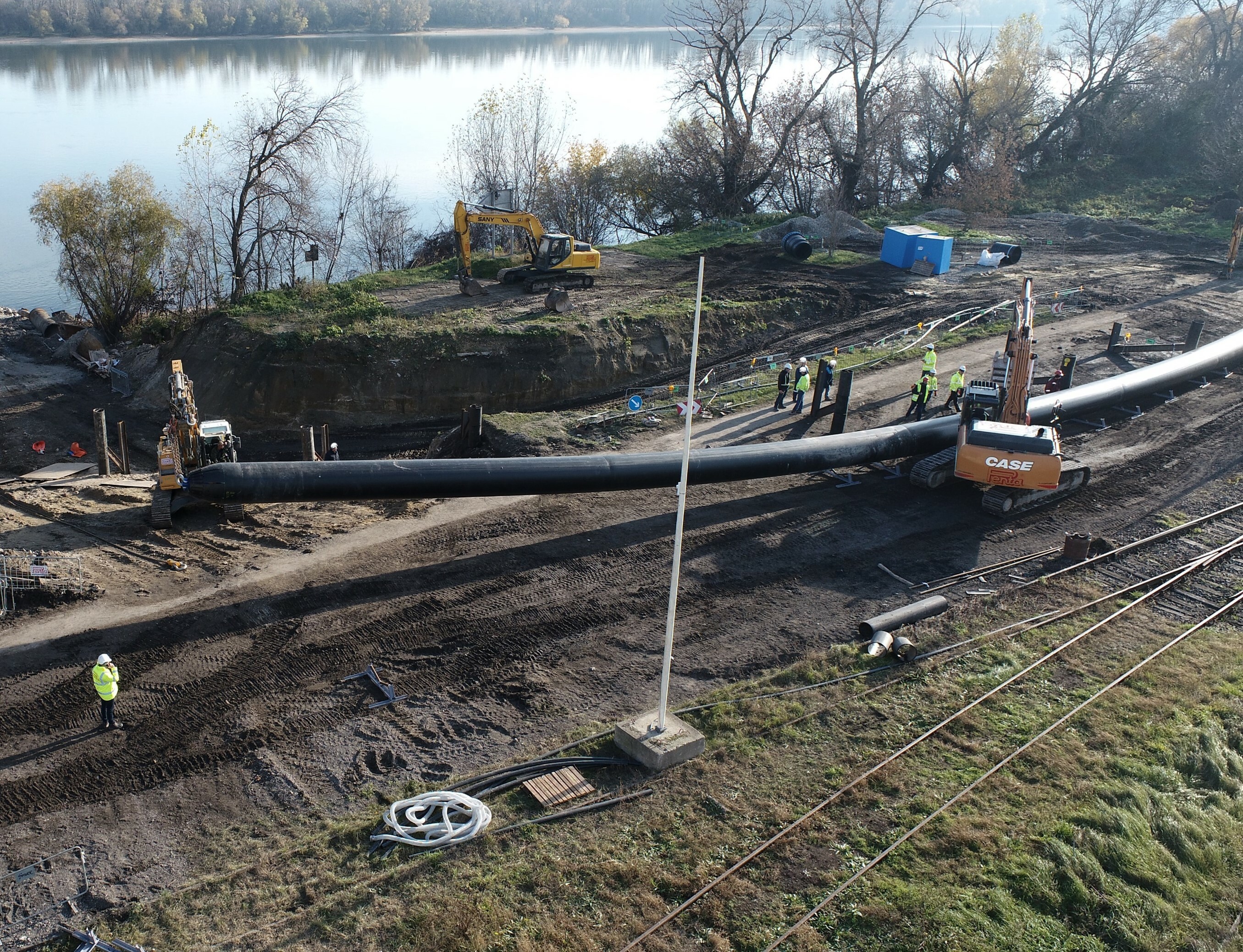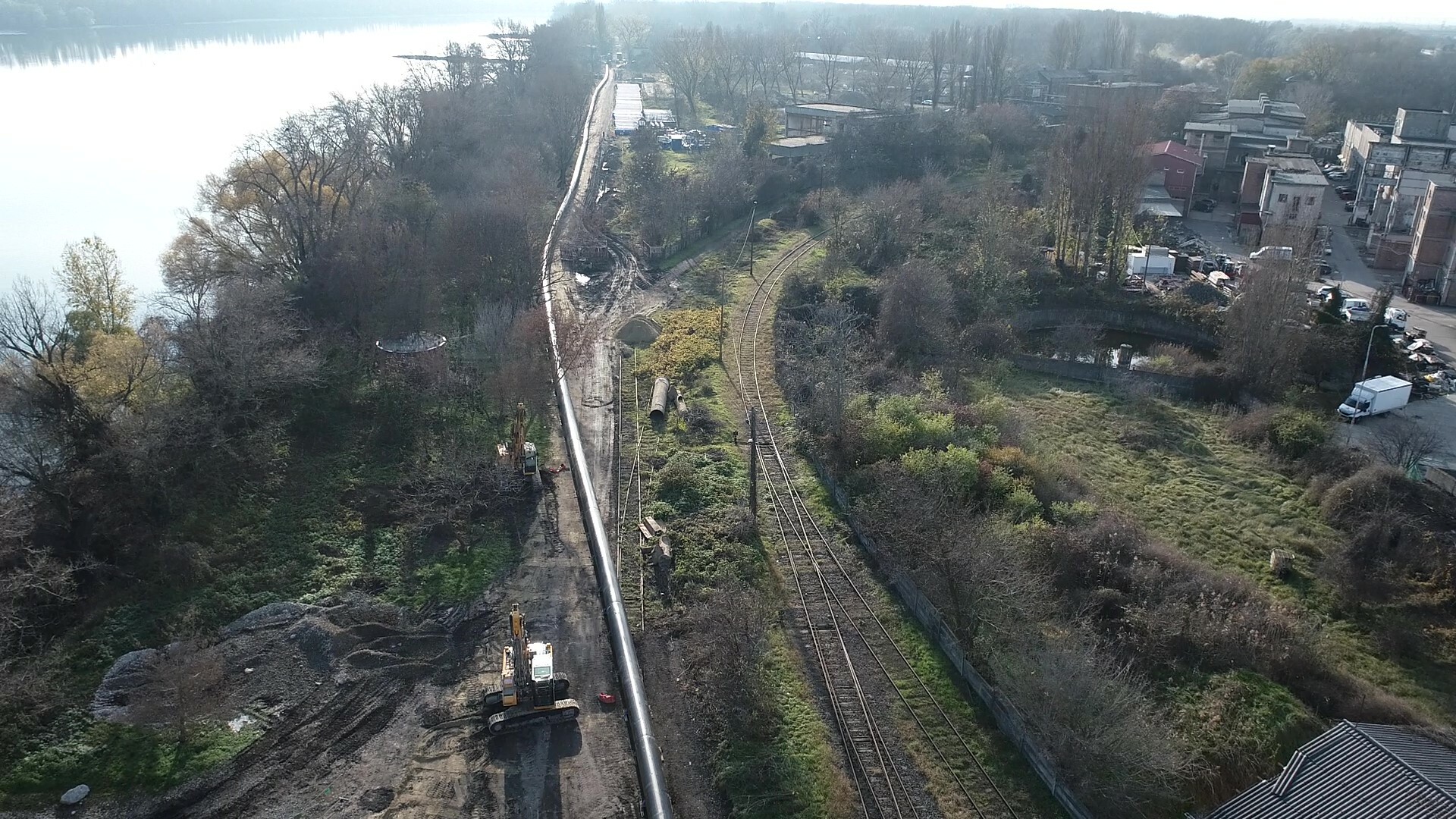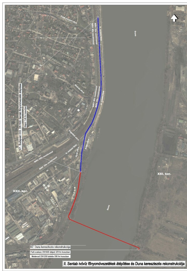A projekt részét képezte egy DN1100 PE cső Duna meder alatti behúzása is Budafokon, a Gyár utca közelében, a Duna-partról indítva. A feladat magyarországi és európai szinten mérve is jelentős kihívást jelentett: az 550 méter hosszú csővonatot 12 méteres elemek összehegesztésével hozták létre a helyszínen, ezt követően egyben húzták be a hatalmas csőszakaszt a Duna alatti medercsőbe a Csepel-szigeten található fogadóaknáig.